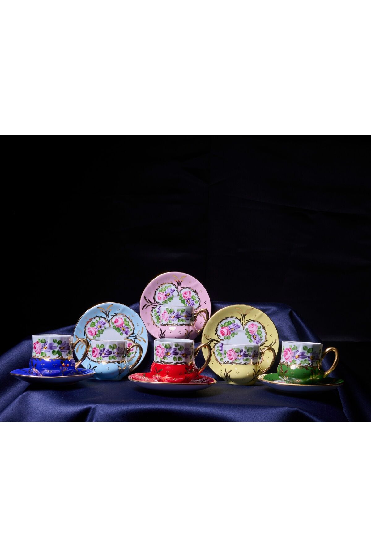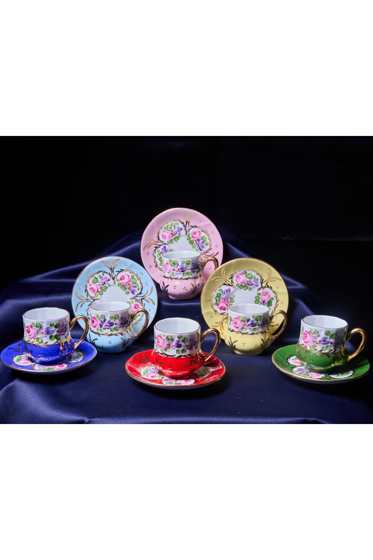 Porselen El Boyama Saray 6li Kahve Fincan Takimi