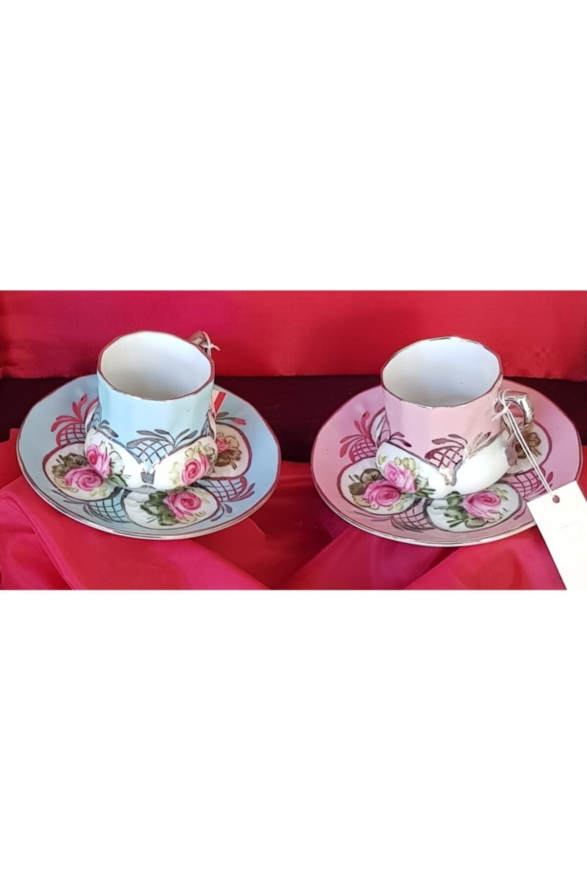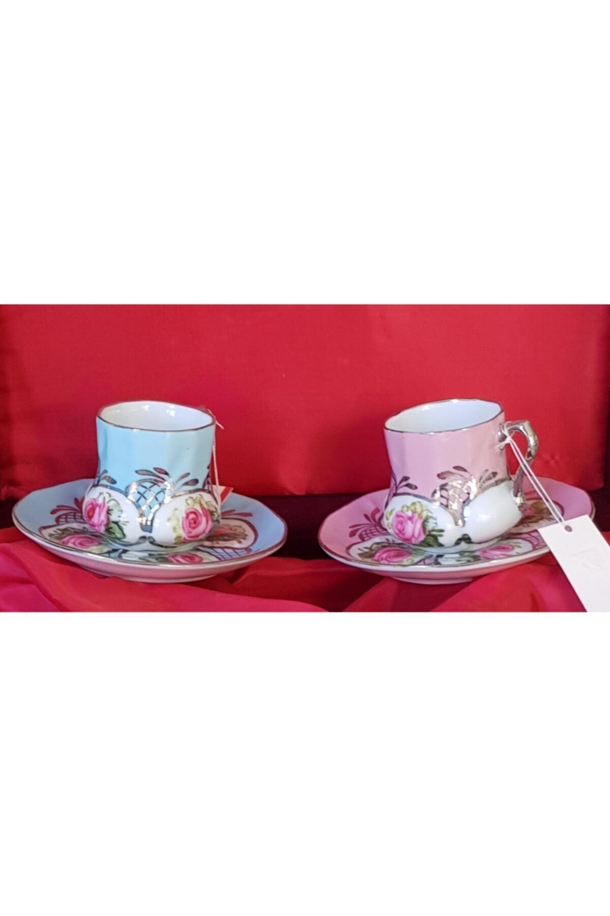 Porselen El Boyama Saray Beyaz Altin Ikili Kahve Takimi