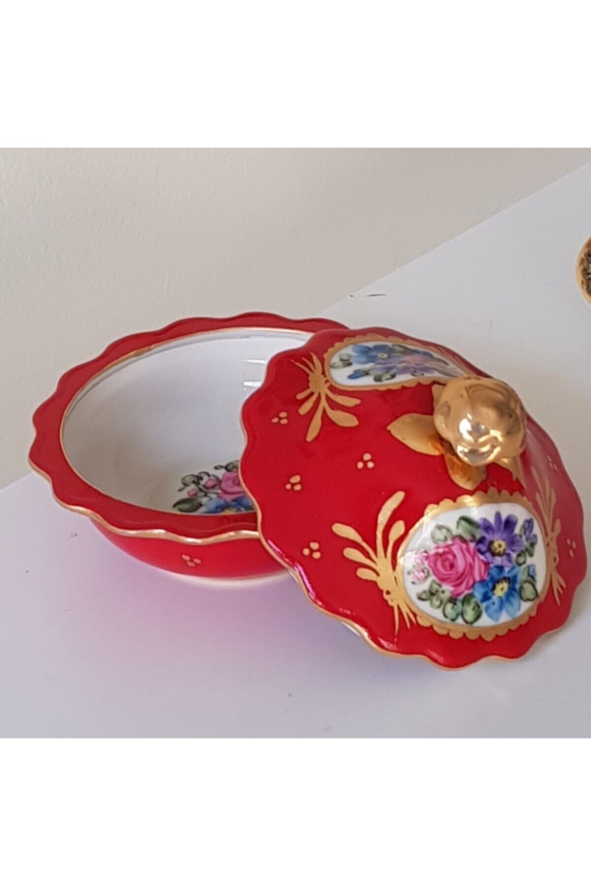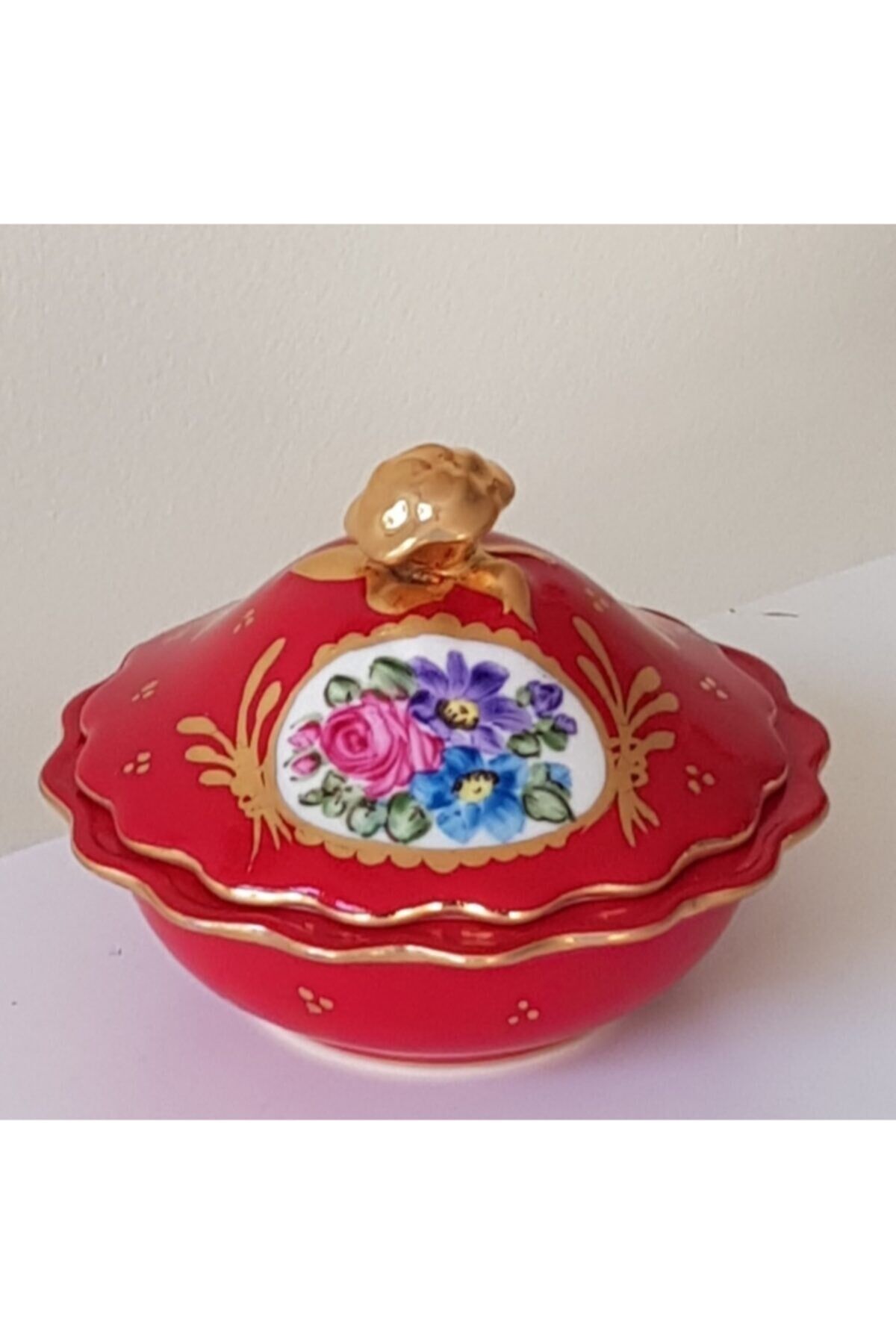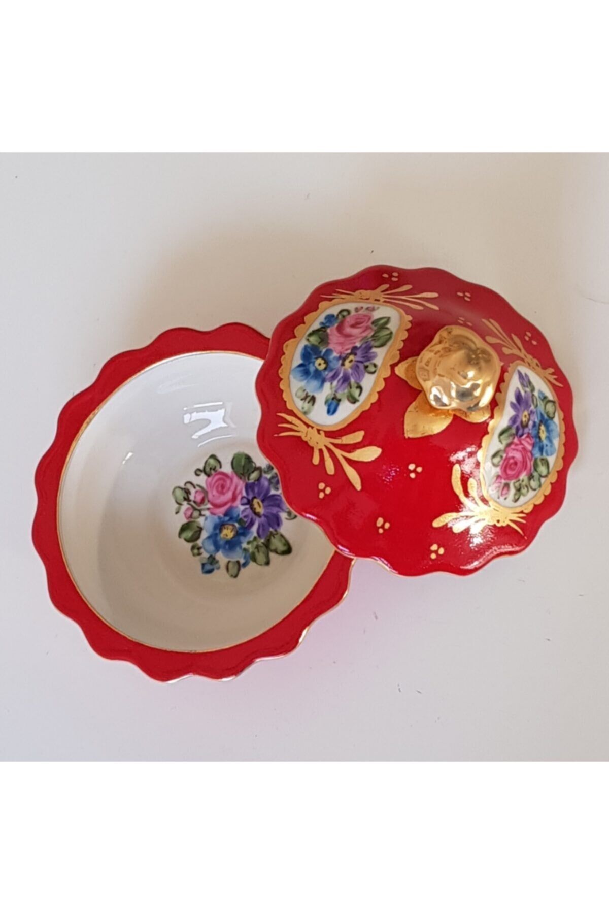 Porselen el boyama sekerlik 13cm.Urunlerimiz gunumuzun sanatcilari tarafindan tamamen elde yapilmistir.Yaldiz kisimlari 24ayar altindir.Yarinin antikasi
