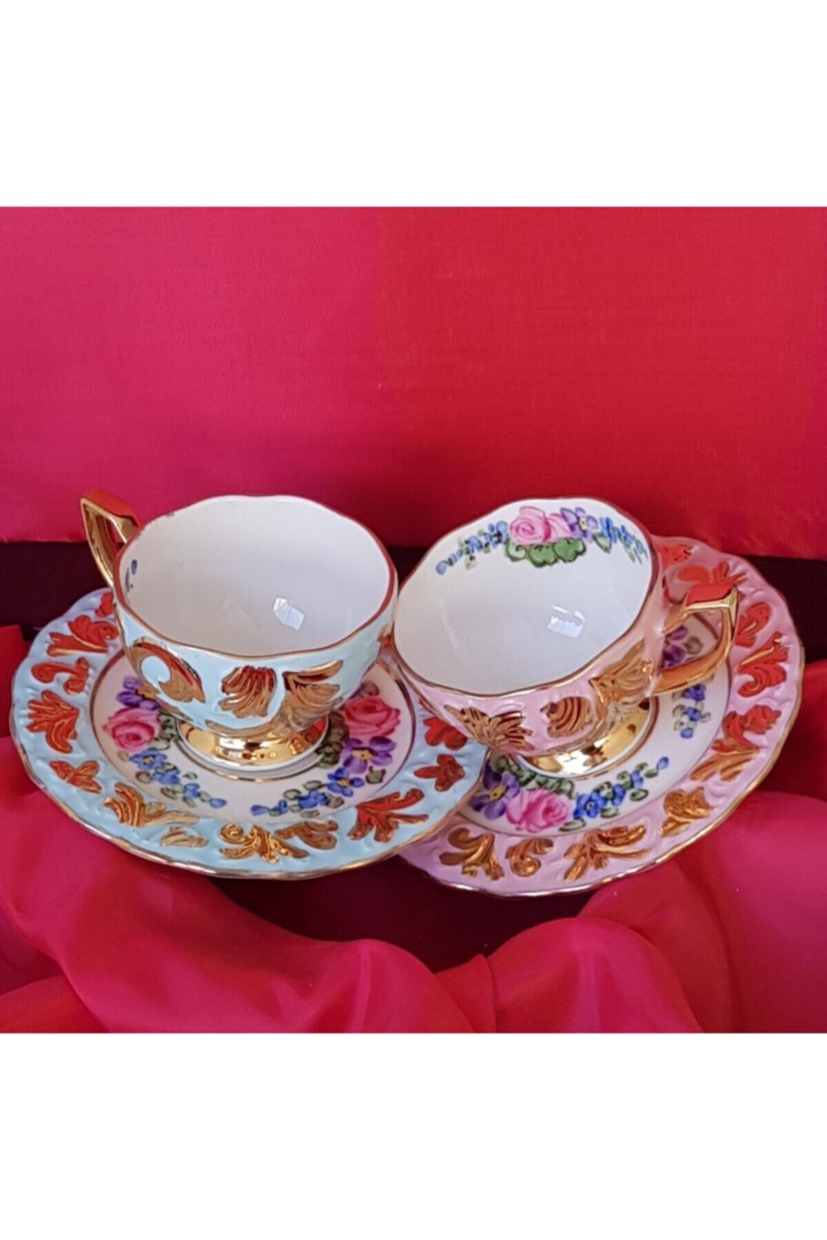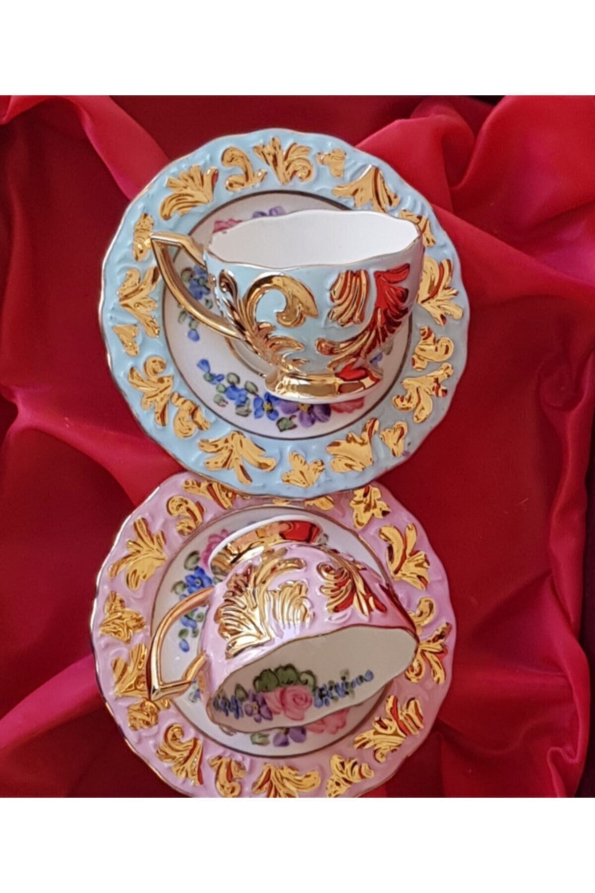 Yüksek kaliteli porselen malzemesi, uzun ömürlü ve dayanıklı kullanım sunar; El boyama tekniği ile üretilmiş, her fincan benzersiz ve özgün bir tasarıma sahiptir; İki adet fincan seti, kahve keyfinizi paylaşmak için idealdir; Zarif ve şık görünümüyle mutfak dekorasyonunuza estetik bir dokunuş katar;