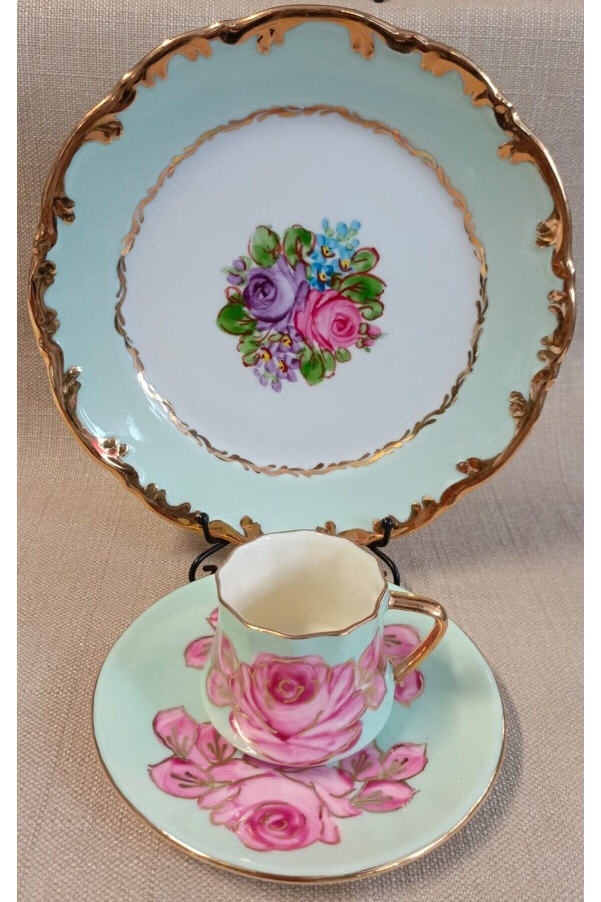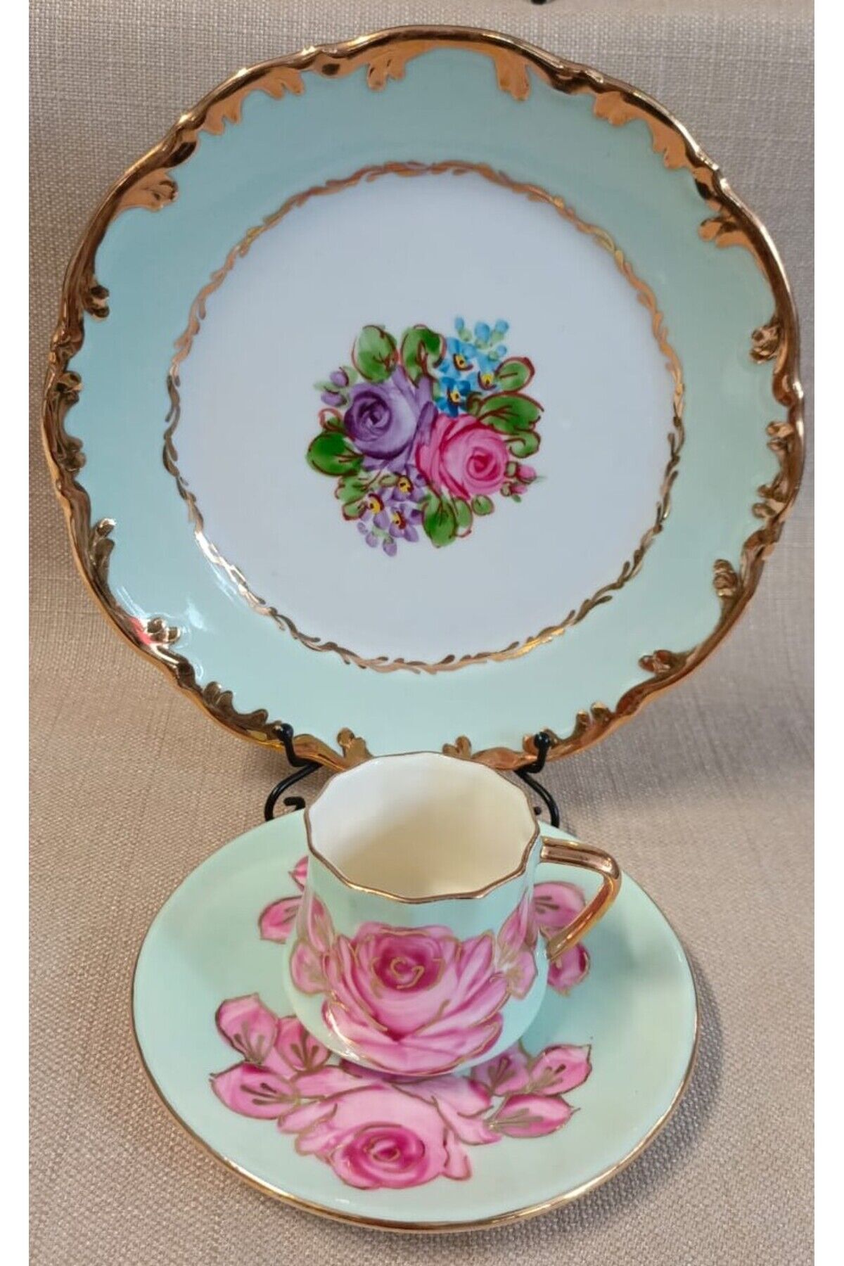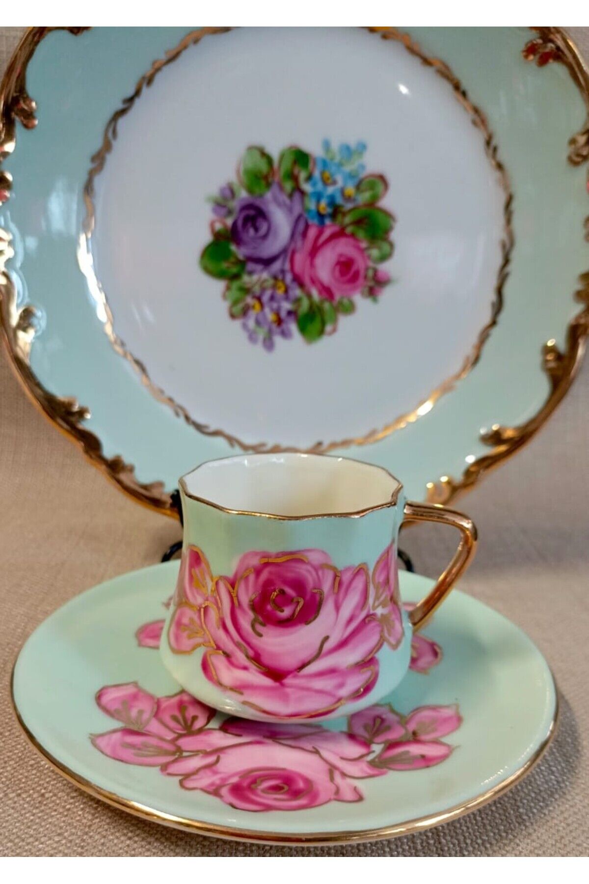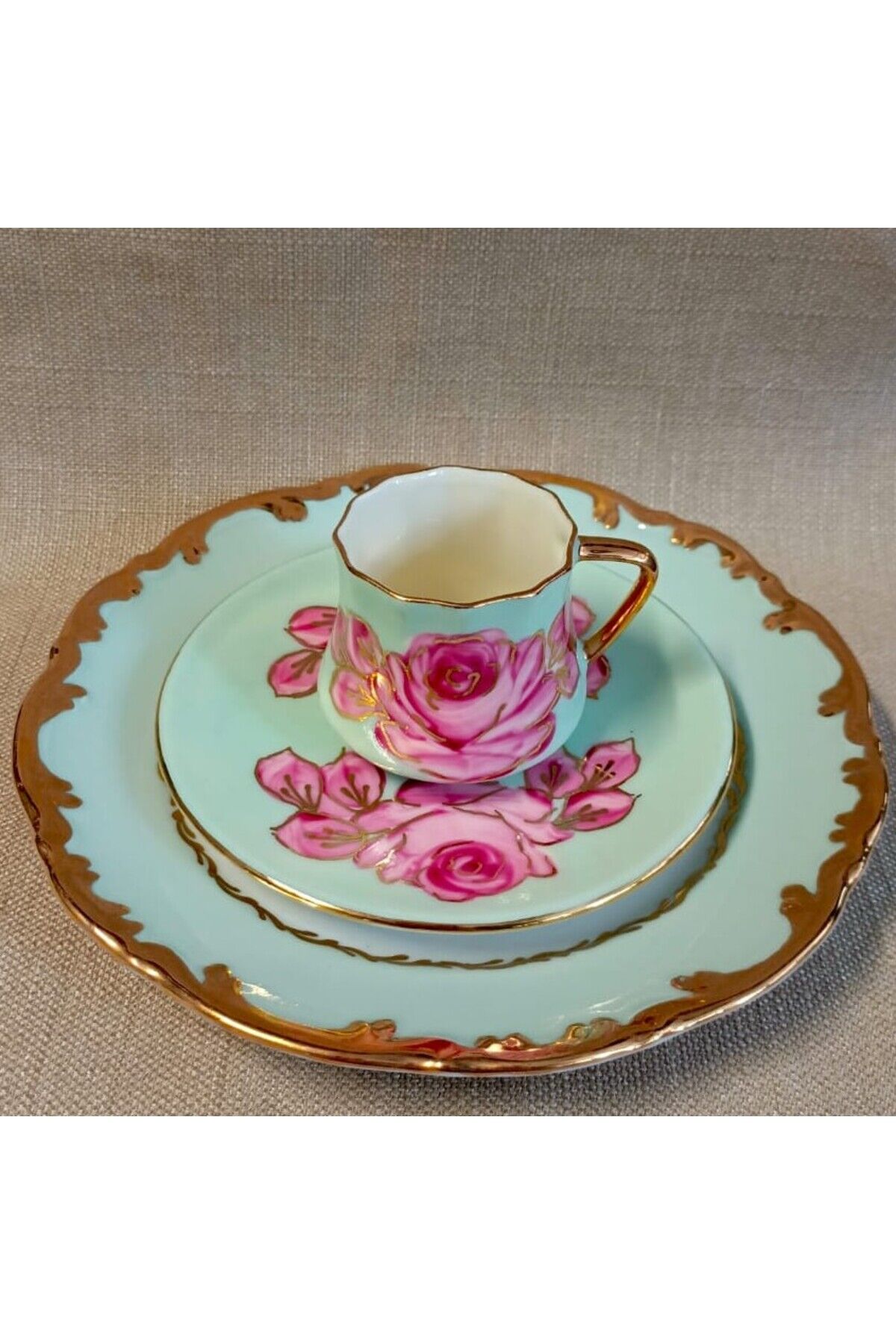 PORSELEN EL BOYAMA TEK KİŞİLİK PASTA VE KAHVE FİNCANI (İADESİ YOKTUR)