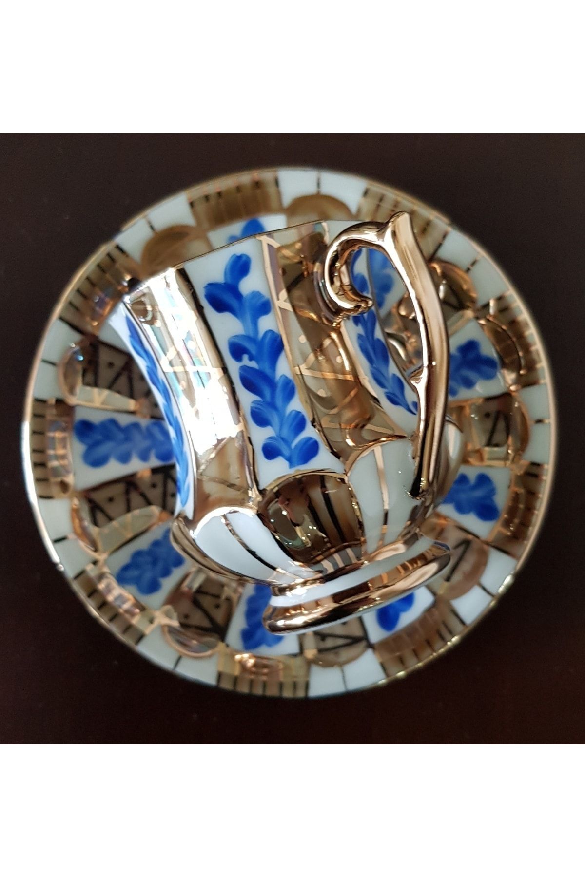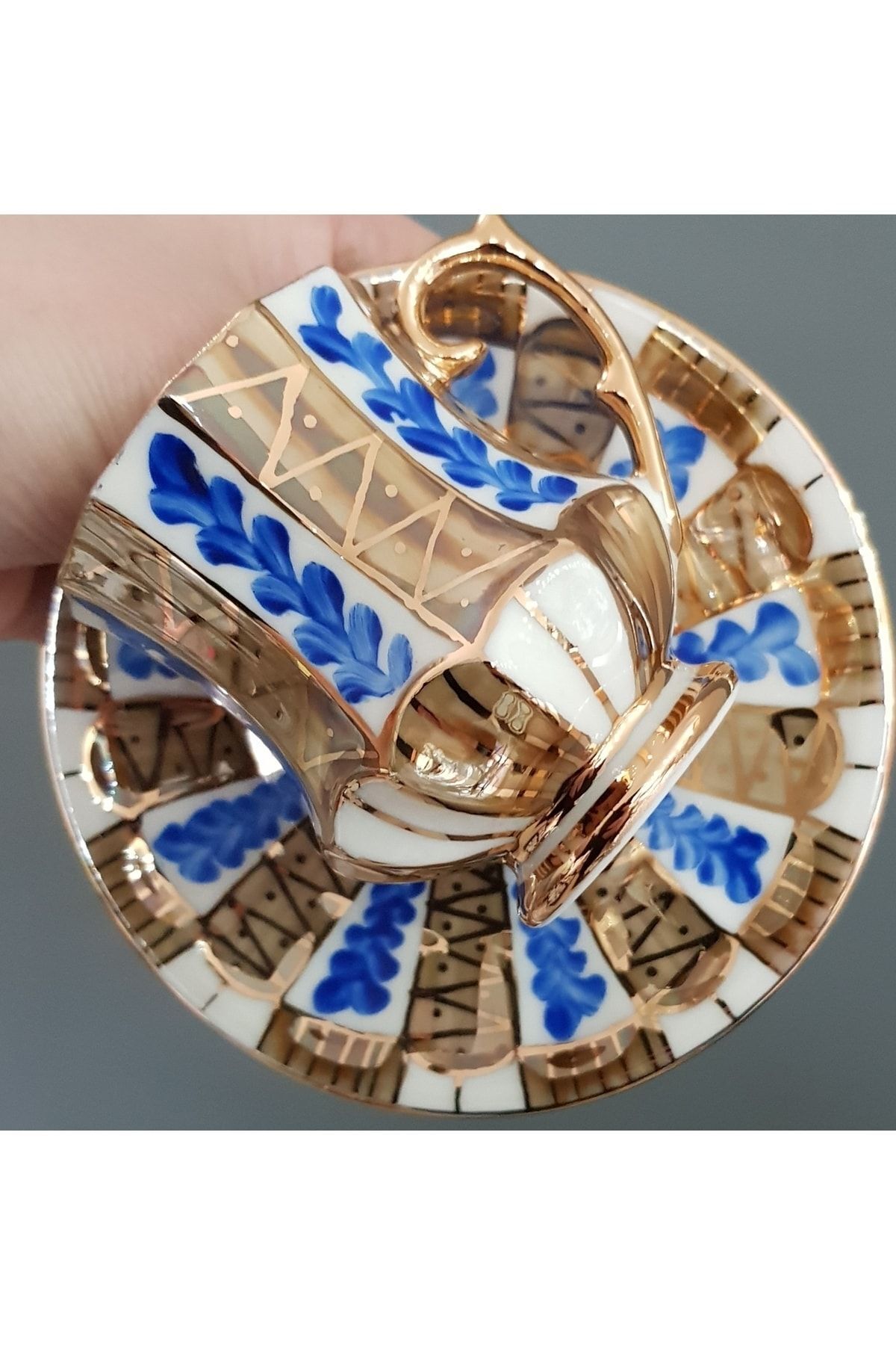 Porselen El Boyaması Başak Ikili Kahve Fincan Seti