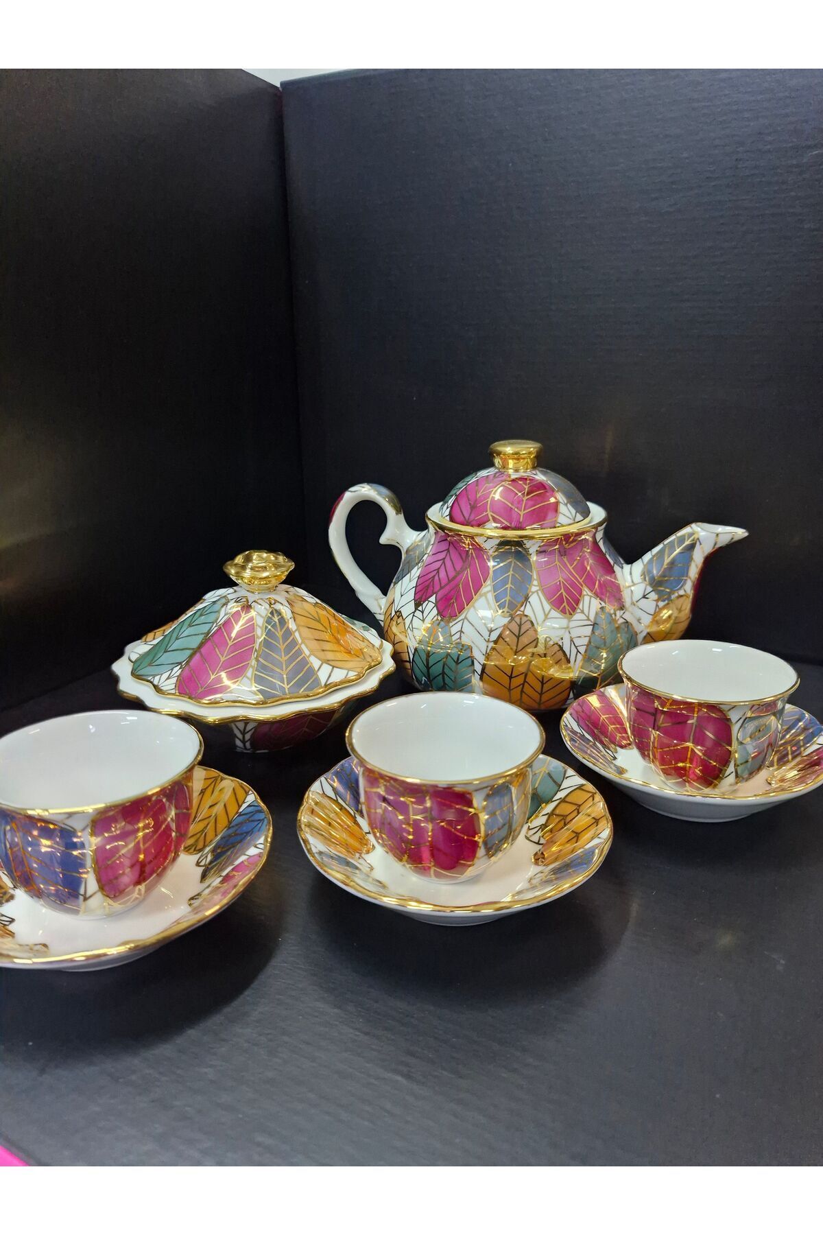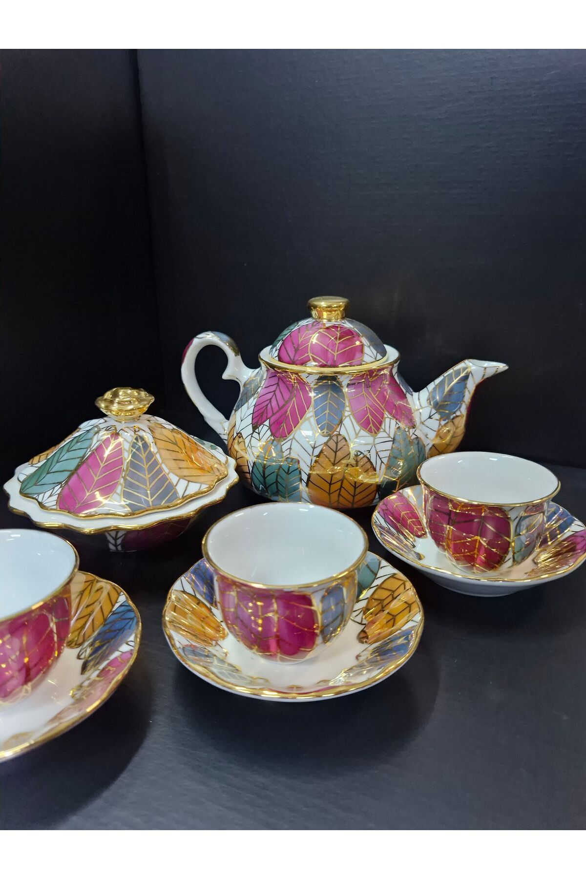 Yüksek kaliteli porselen malzemesi ile üretilmiş, uzun ömürlü ve dayanıklı kullanım sunar; El boyaması teknikleriyle zenginleştirilmiş detaylar, her bir çay seti parçasına özgün bir karakter kazandırır; Porselenin doğal dokusu ve şeffaf yapısı sayesinde çayınızın rengini ve aromasını mükemmel bir şekilde yansıtır; Zarif tasarımıyla sofra düzeninize estetik bir dokunuş ekler ve misafirlerinize şık bir sunum imkanı sağlar;