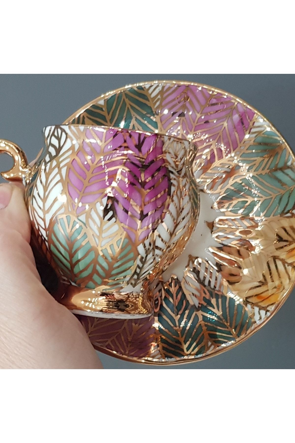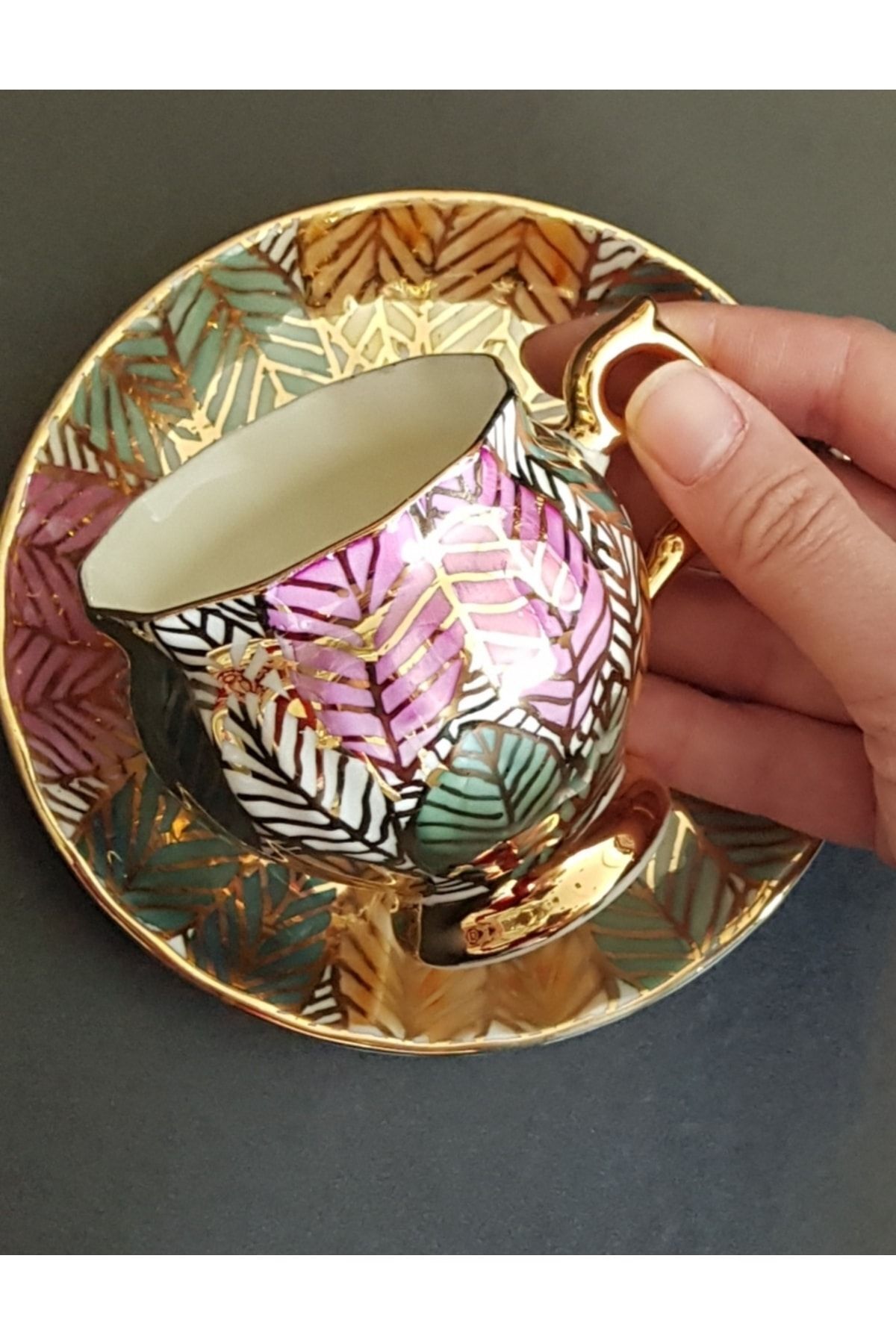 Porselen El Boyaması Ikinci Bahar Ikili Kahve Fincan Seti