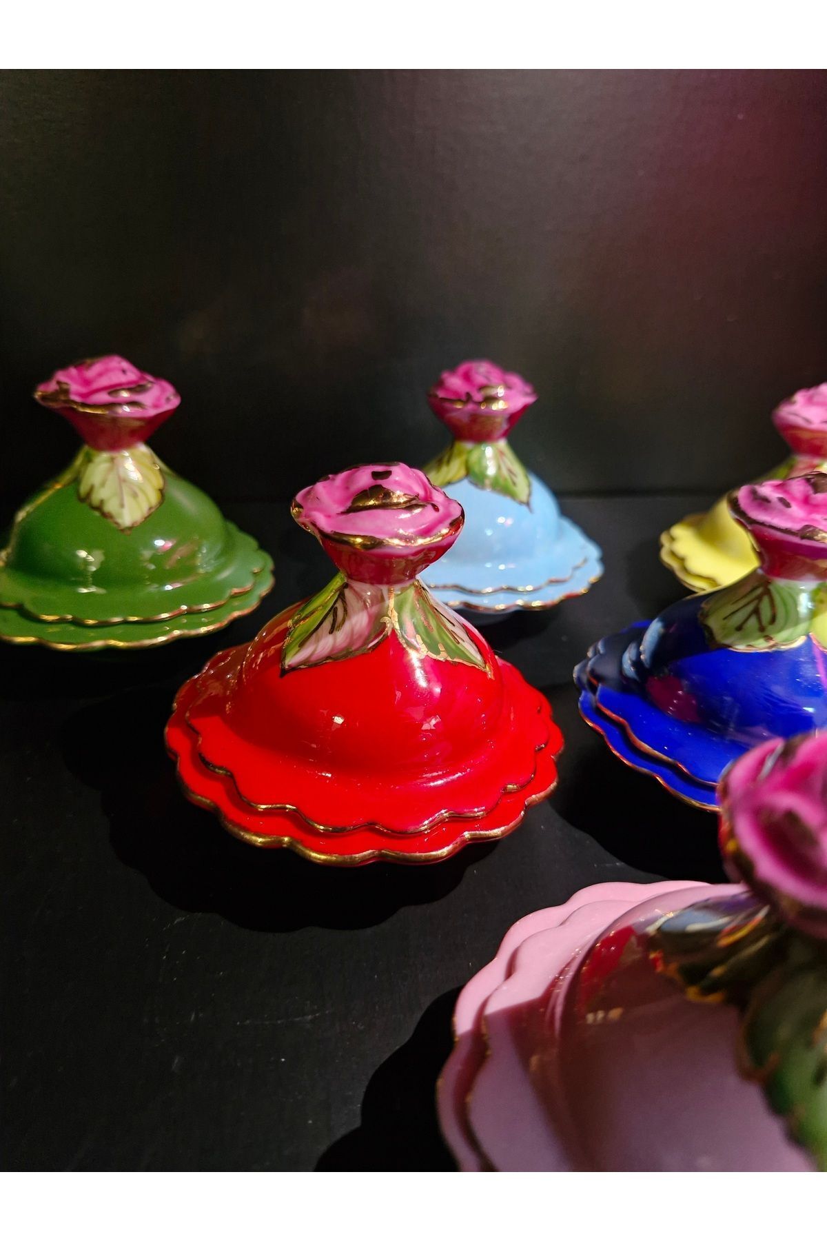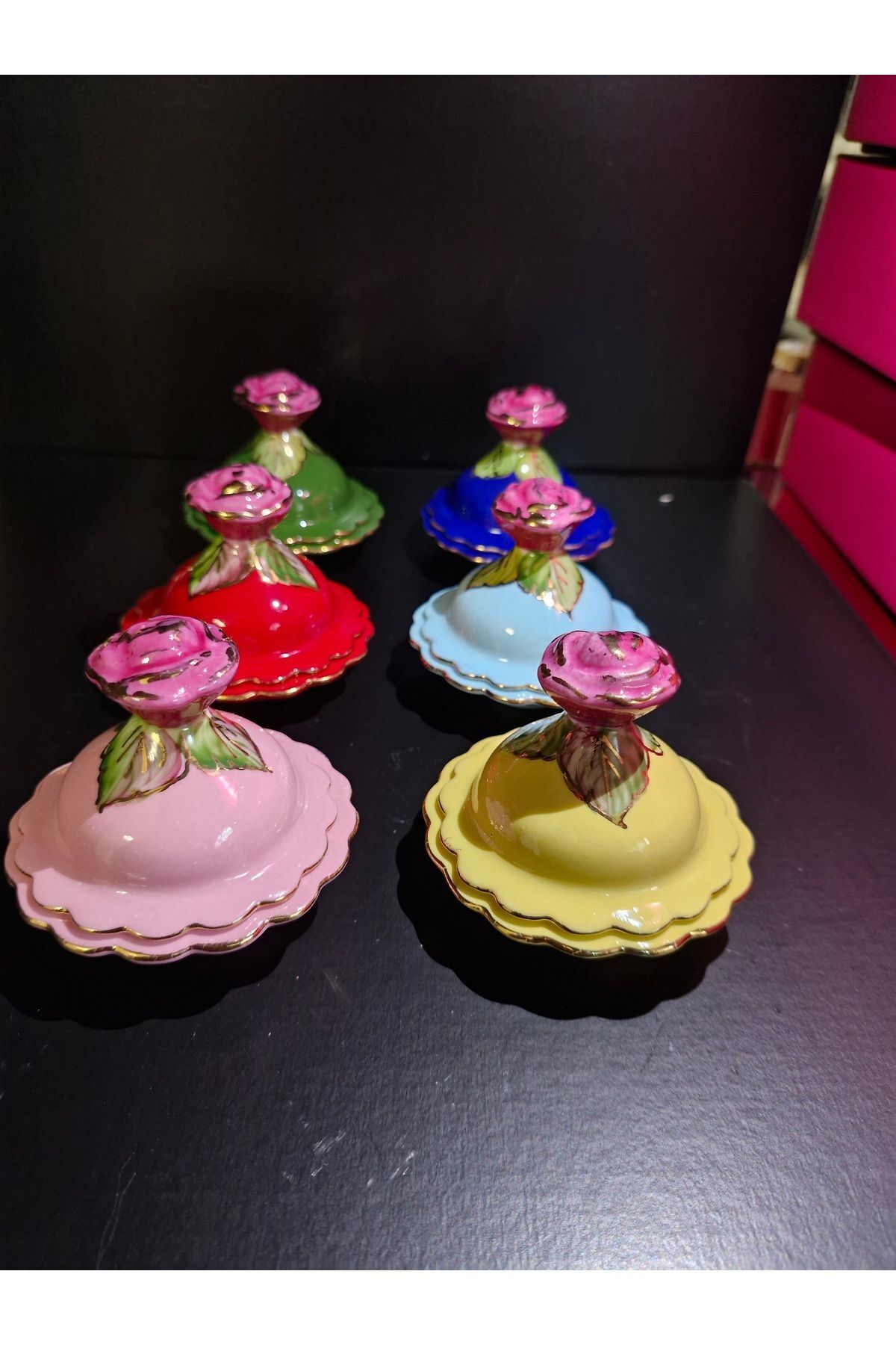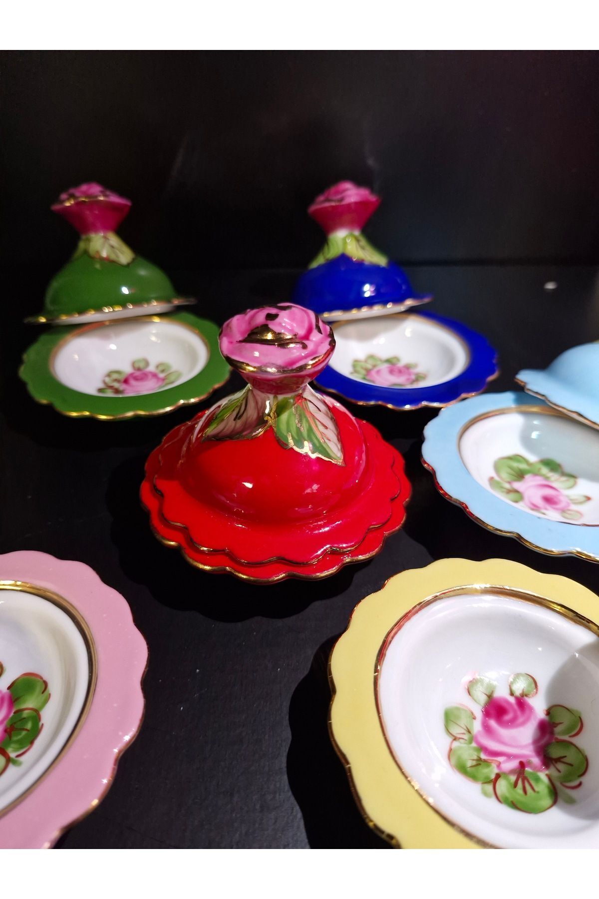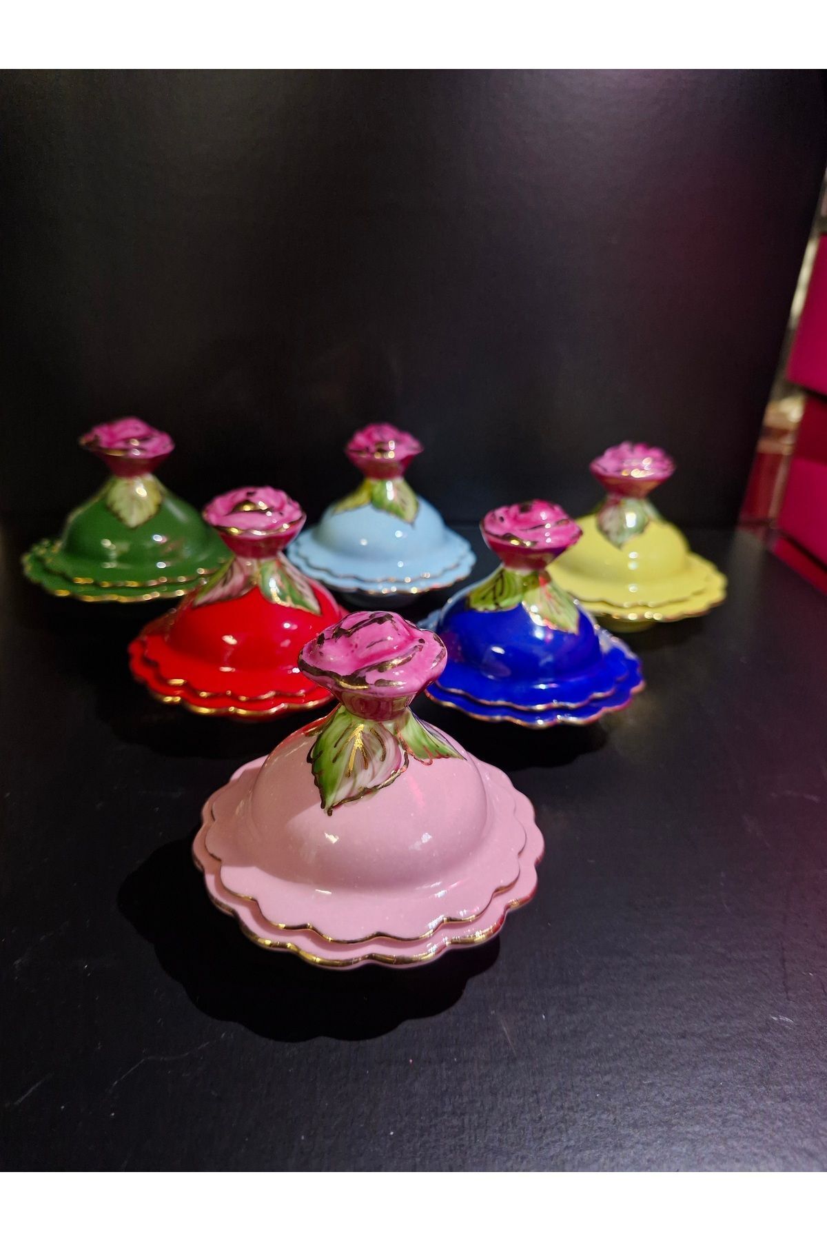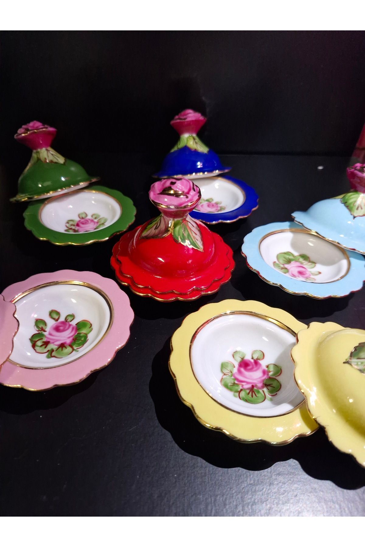 Porselen El Boyaması Kahve Yanı Lokumluk Seti
