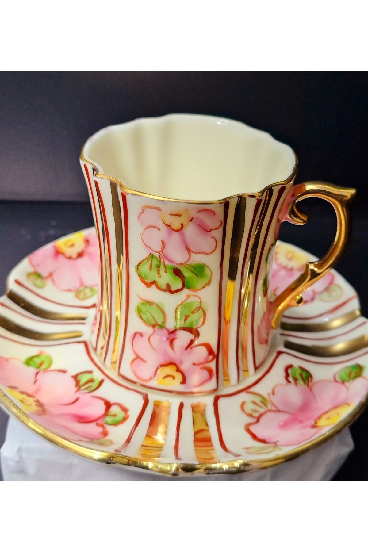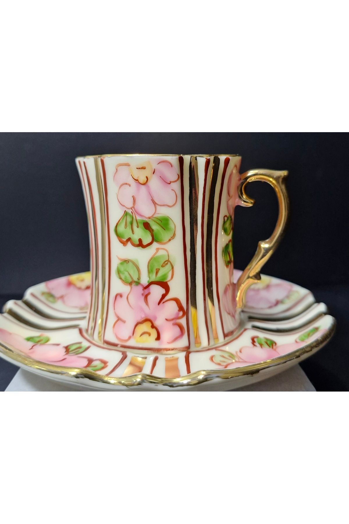 Urun icerigi:iki adet kahve fincani ve iki adet fincan tabagi Urunlerimiz sanatcilarimiz tarafindan tamamen elde boyanmis olup 24ayar altinla bezenmistir; Bulasik makinesine girer fakat daha uzun omurlu olmasi acisindan tavsihe etmiyoruz; Camasir suyu ve diger kimyasallal kullanmayiniz; Dogru kullanildiginda torunlara miras birakabilirsiniz; Yarinin antikasi;