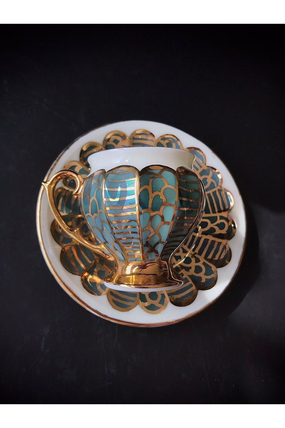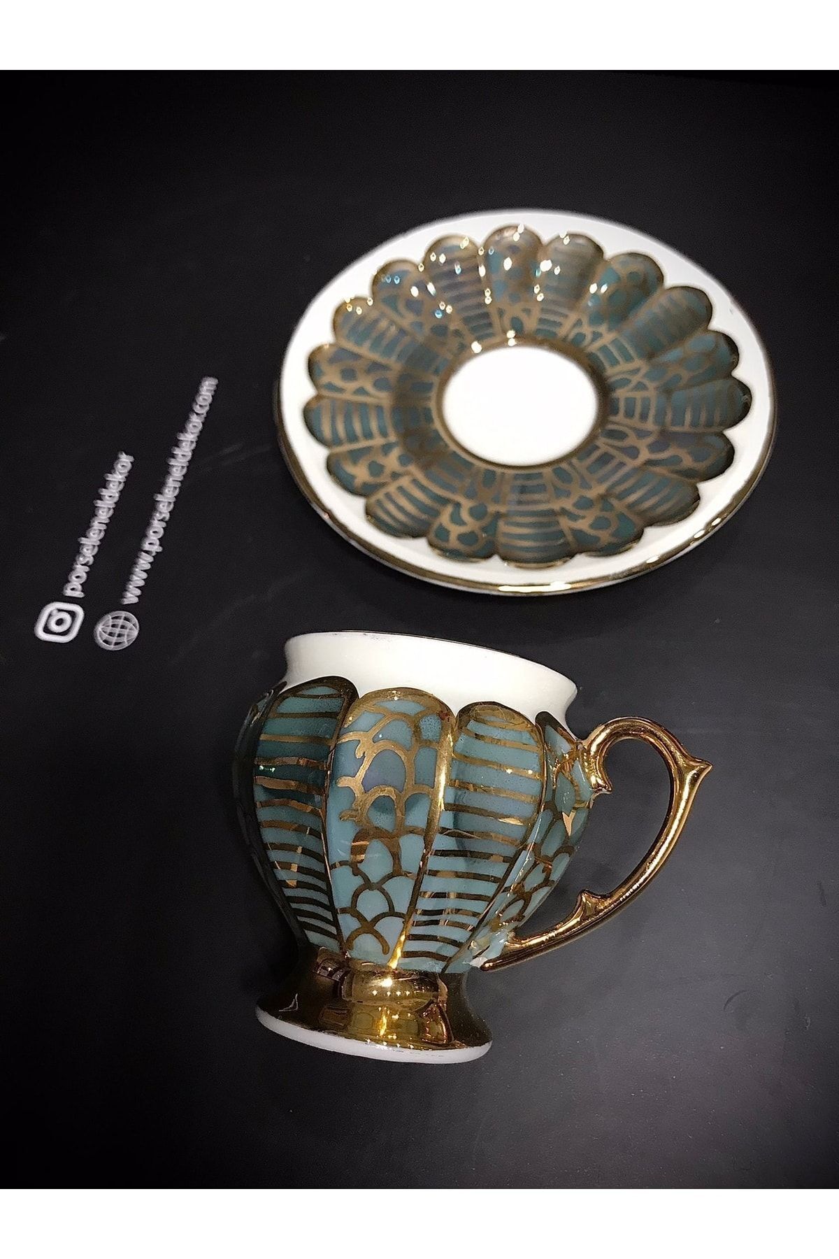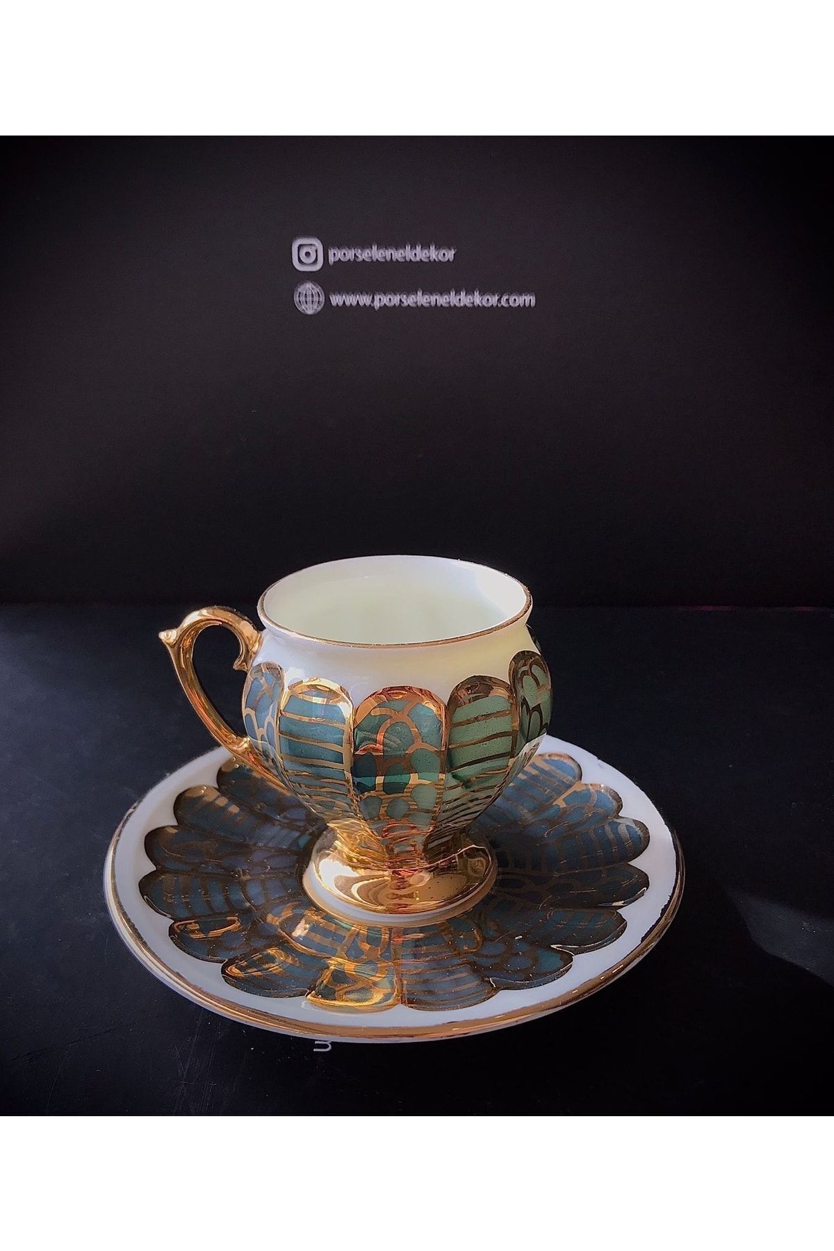 Porselen El Boyaması Kösem Ikili Kahve Fincan Takımı