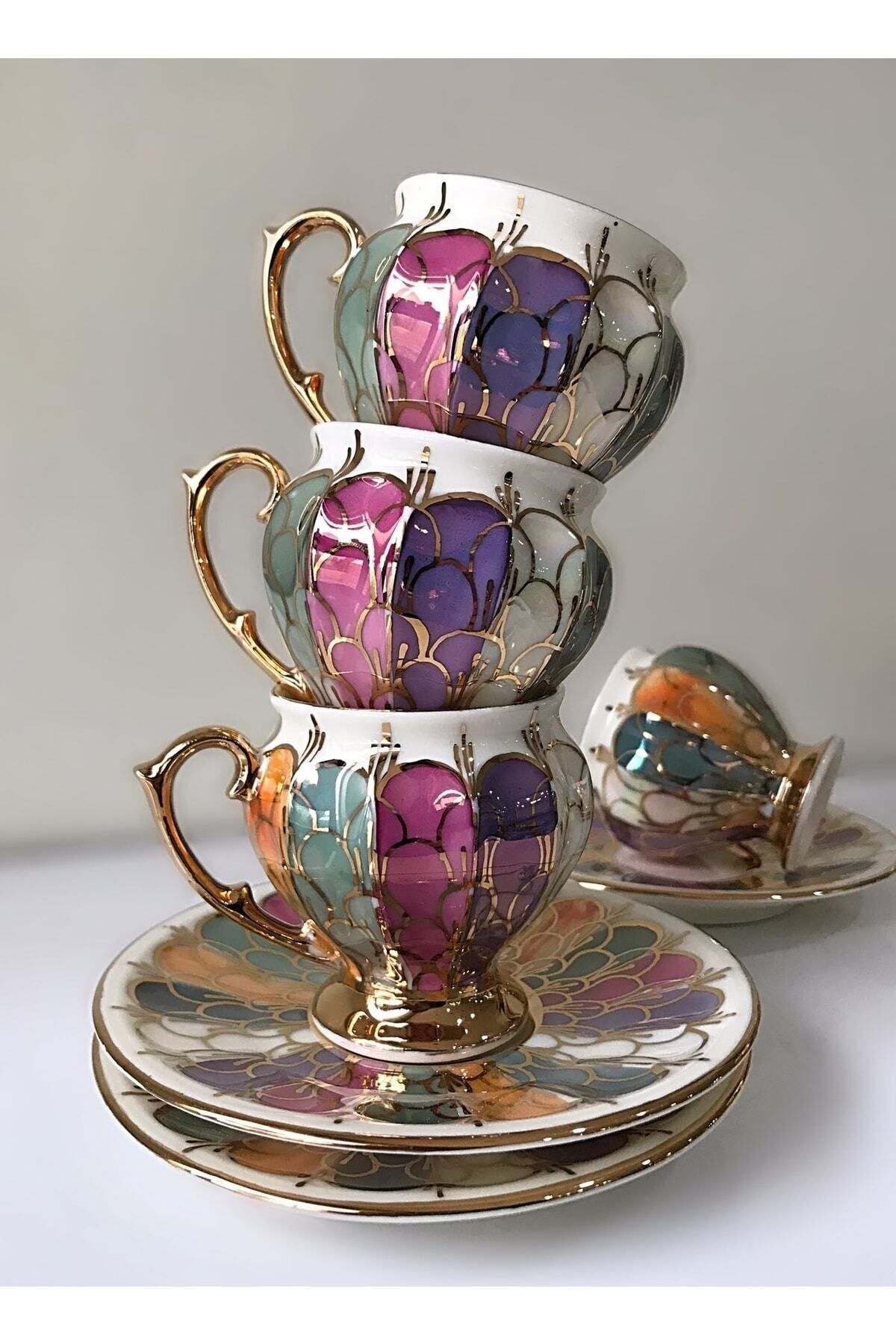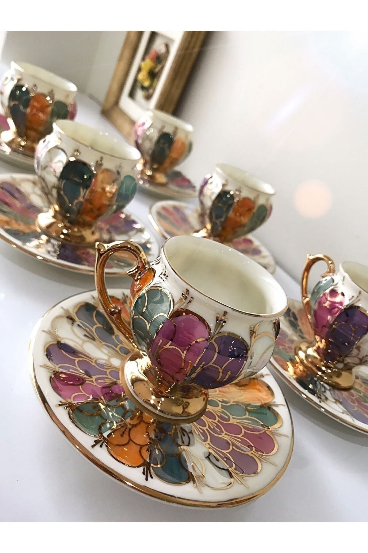 Malina Porselen El Boyama Kahve Fincan Takımı