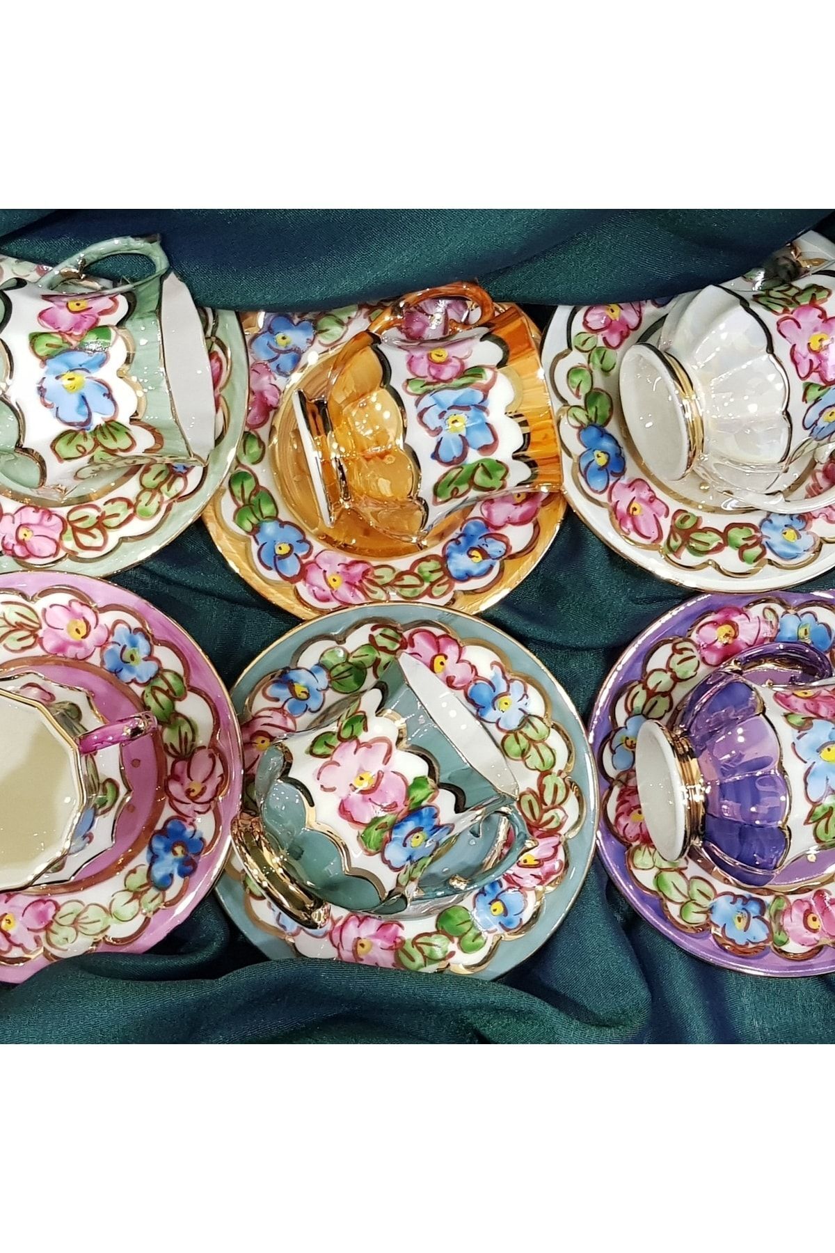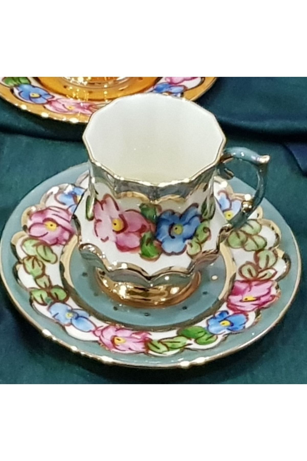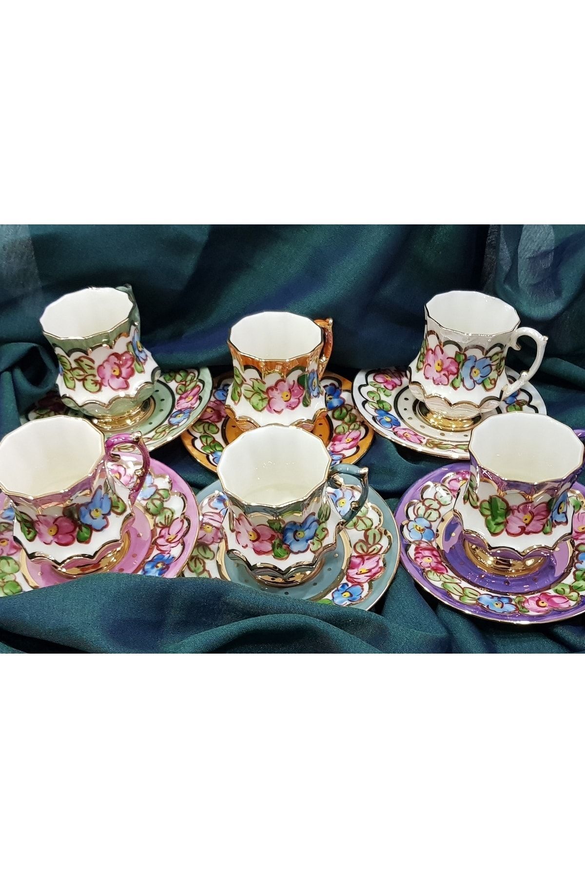 Porselen El Boyaması Mavis Altılı Kahve Takımı