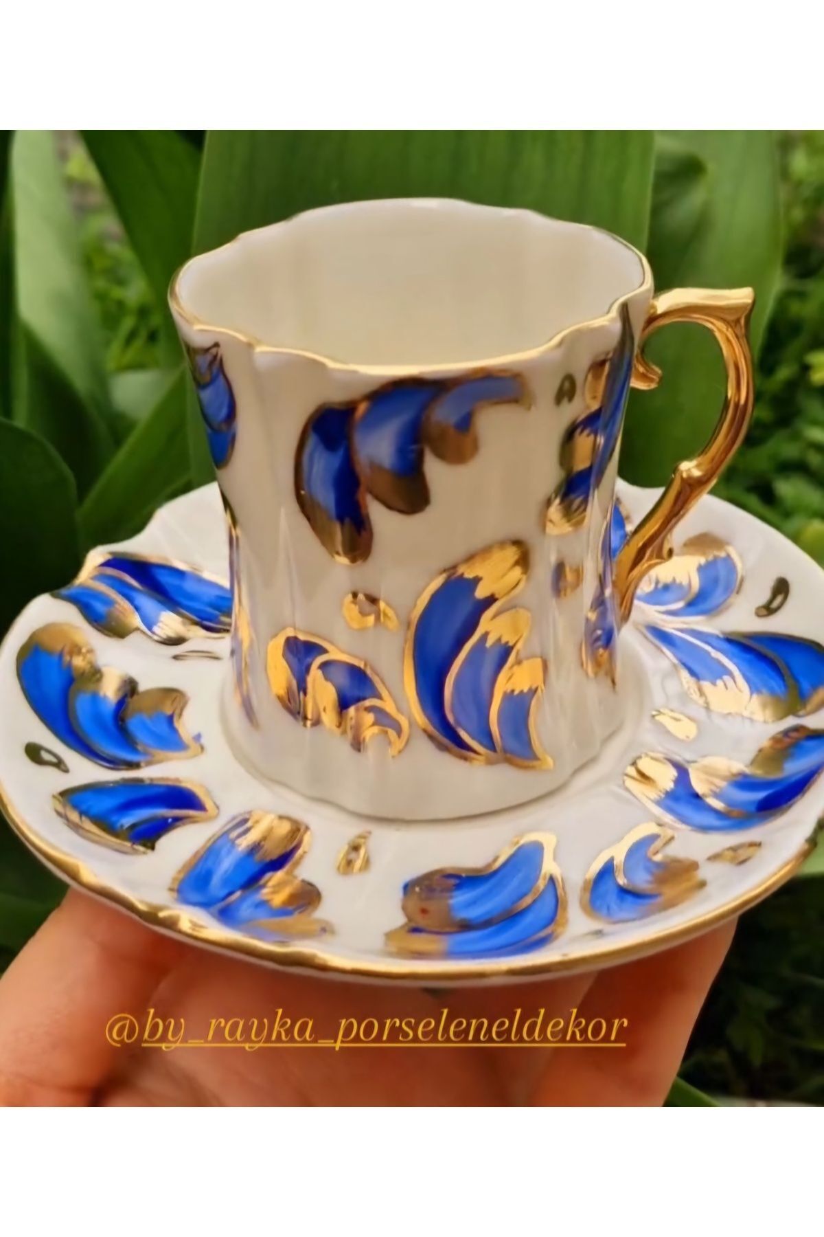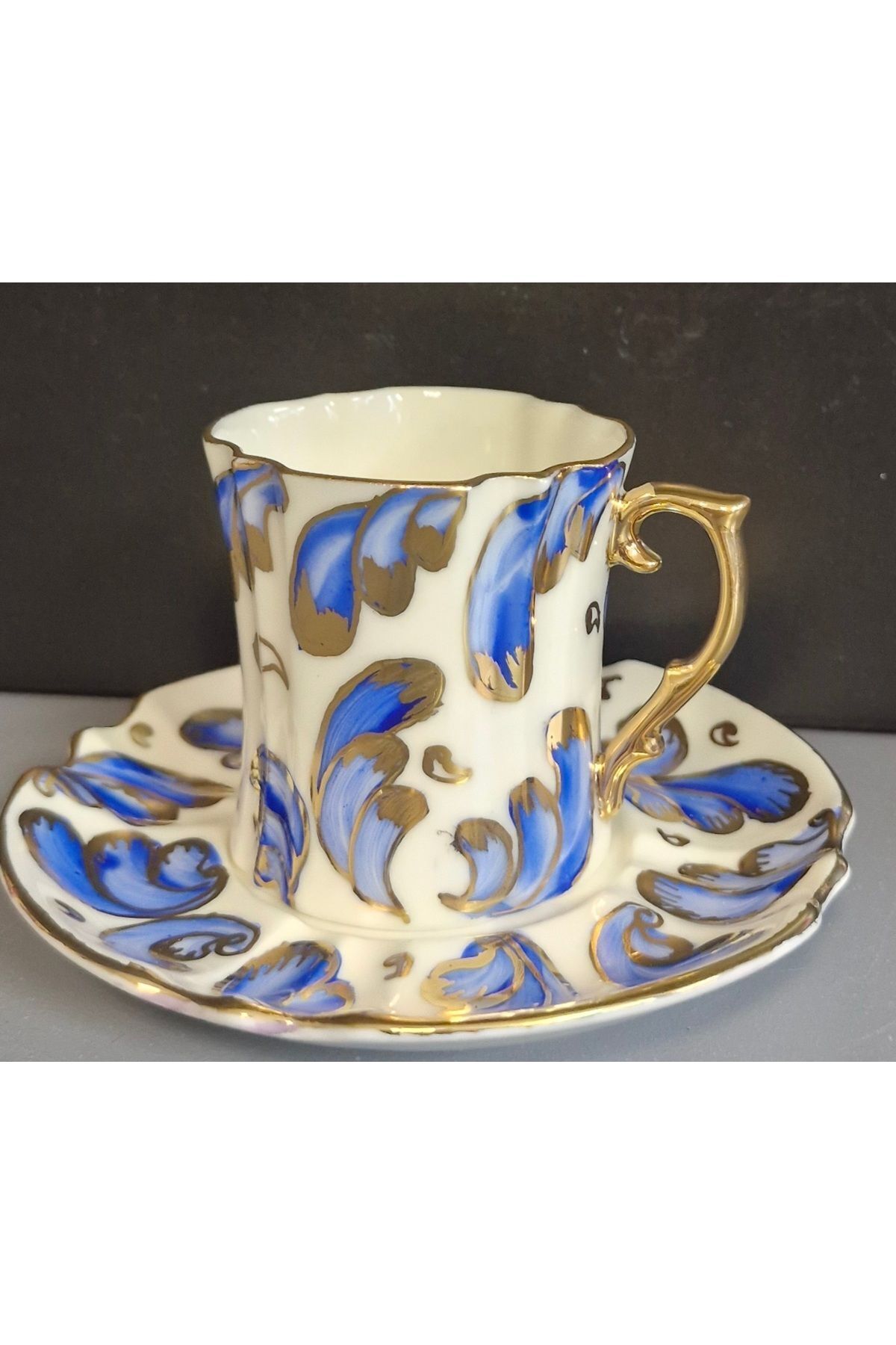 Porselen El Boyaması Pat Ikili Fincan Seti