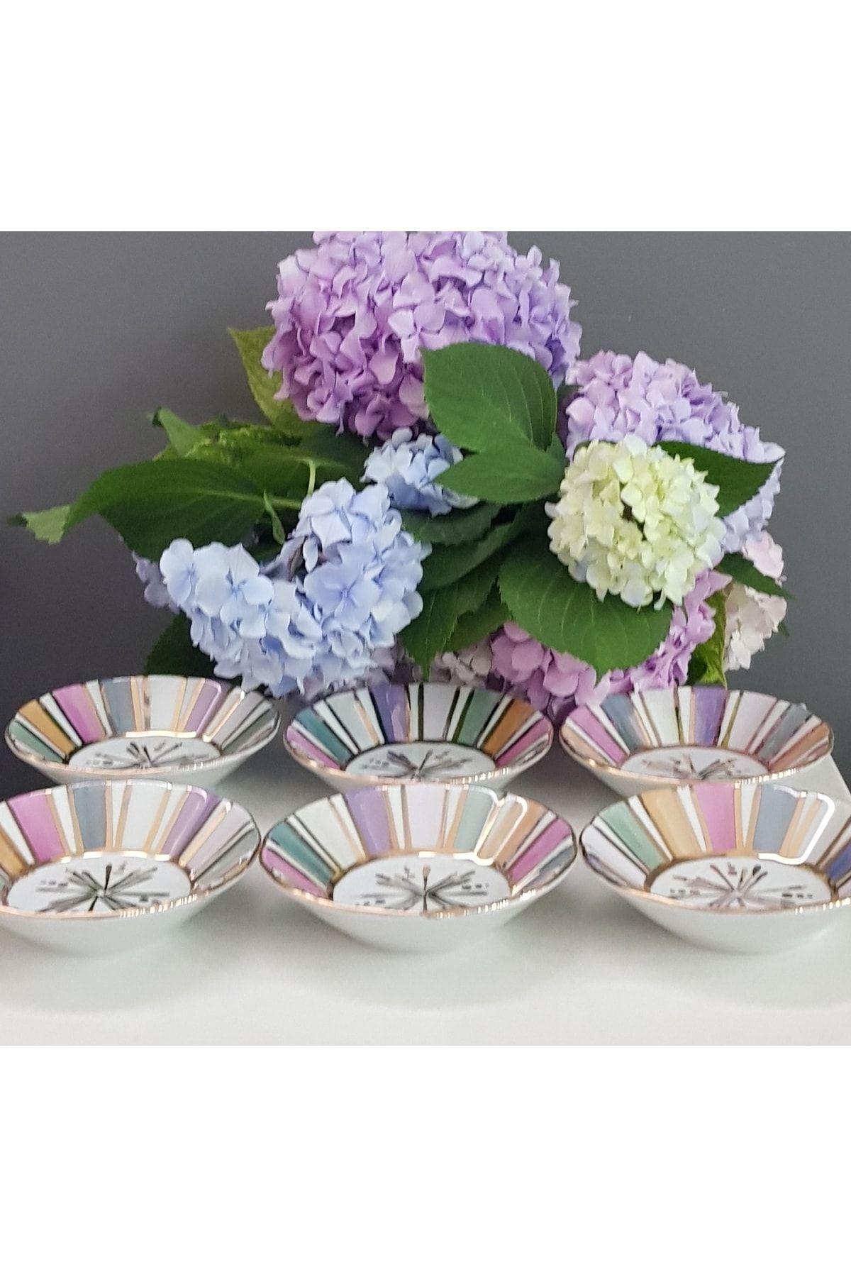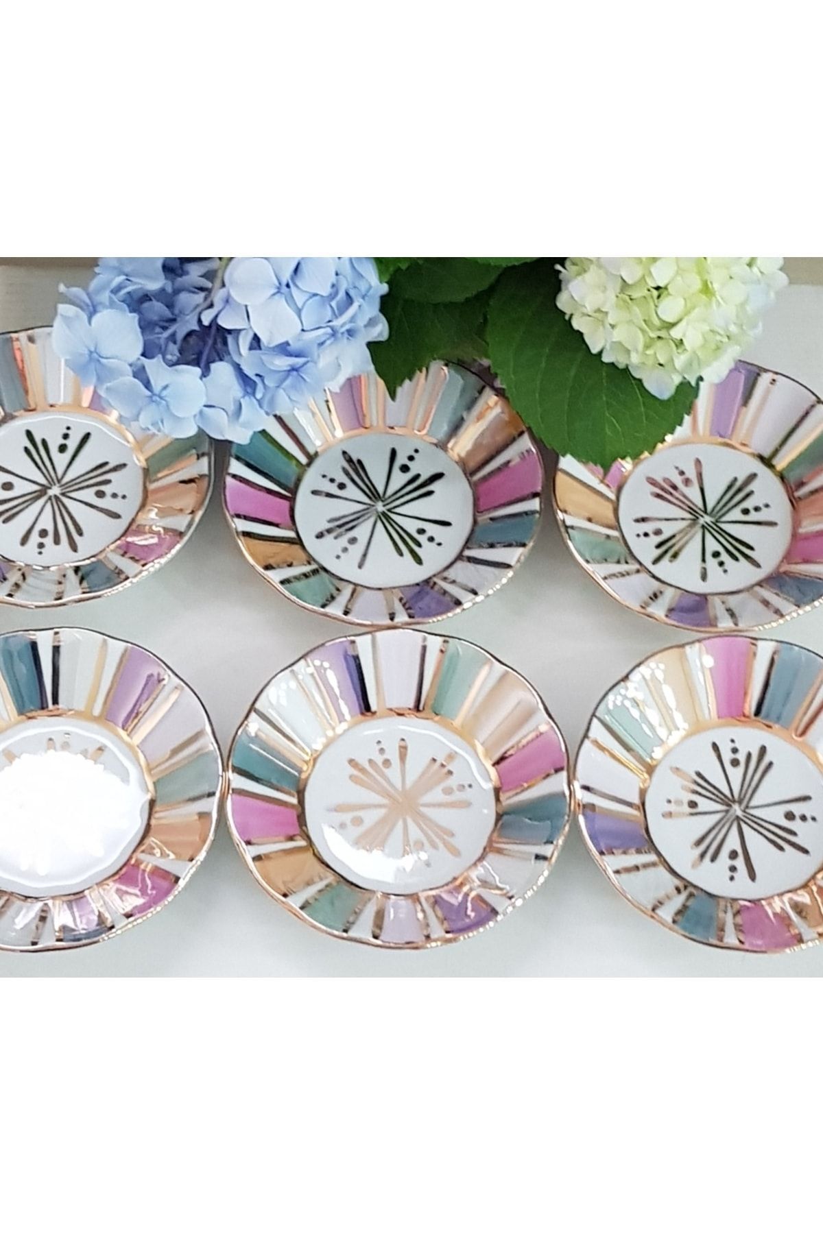Porselen El Boyaması Readuga 6 Lı Çay Tabağı Seti