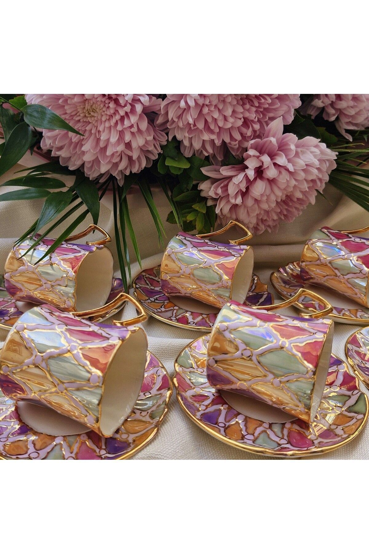 Porselen El Boyaması Roda Altı Kişilik Kahve Takımı