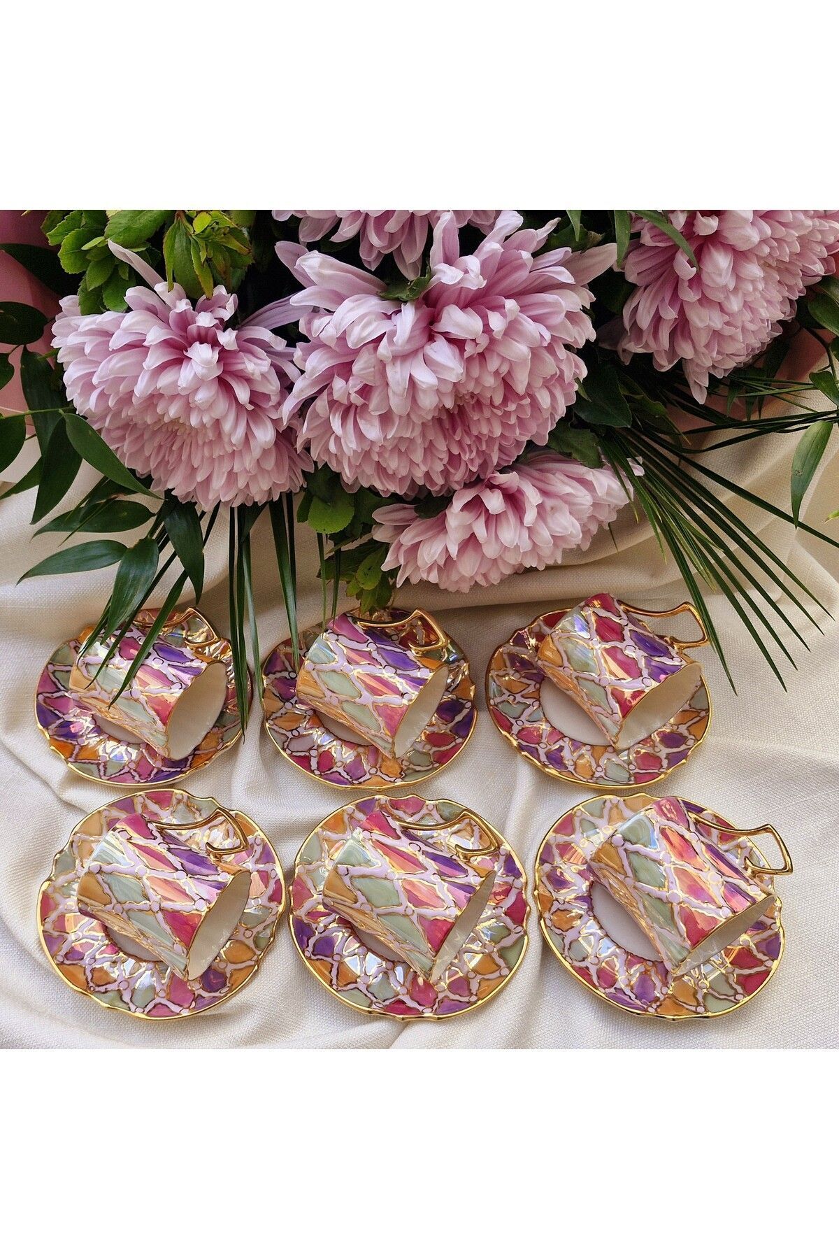 Altı kişilik geniş kapasitesiyle, aile ve arkadaşlarınızla keyifli kahve sohbetleri için ideal bir seçim; Yüksek kaliteli porselen malzemesi sayesinde uzun ömürlü kullanım ve şık bir görünüm sunar; Modern tasarımıyla ev dekorasyonunuza çağdaş bir dokunuş ekler ve sofralarınıza estetik bir hava katar;