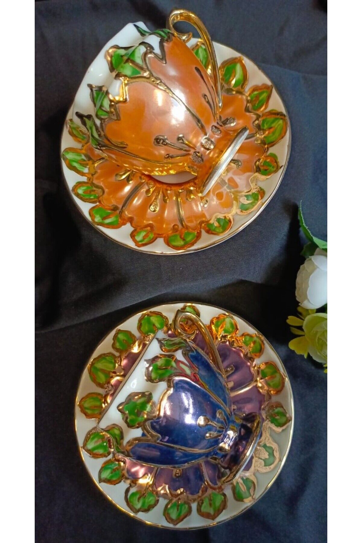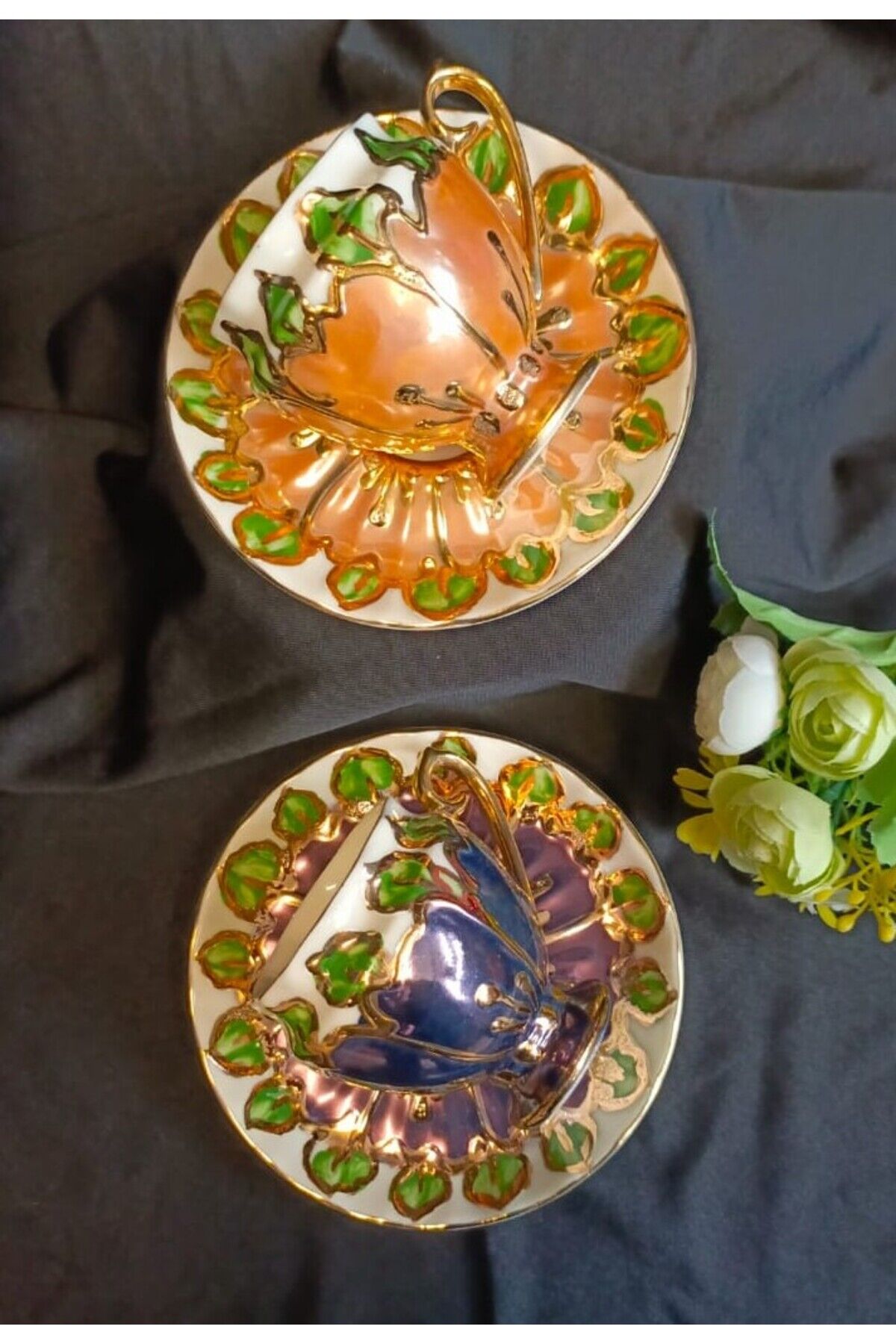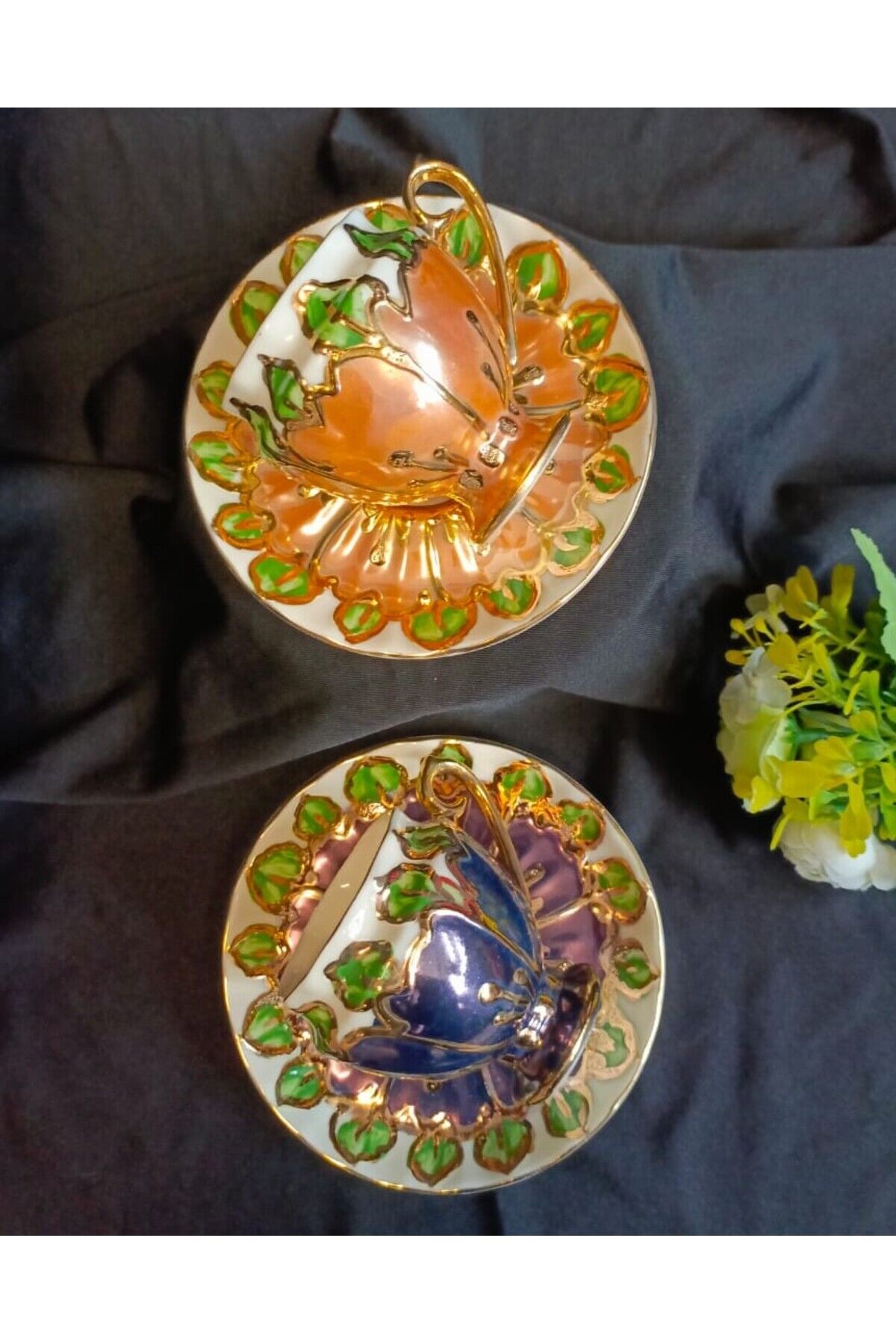PORSELEN EL DEKOR 2Lİ KAHVE FİNCANI
