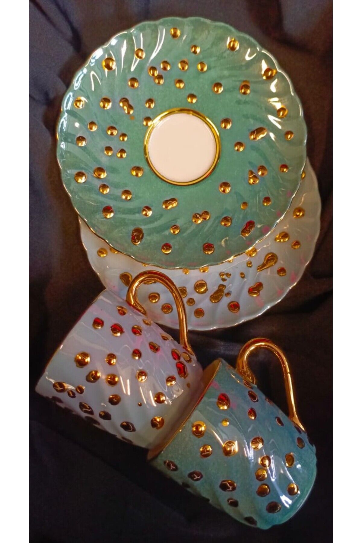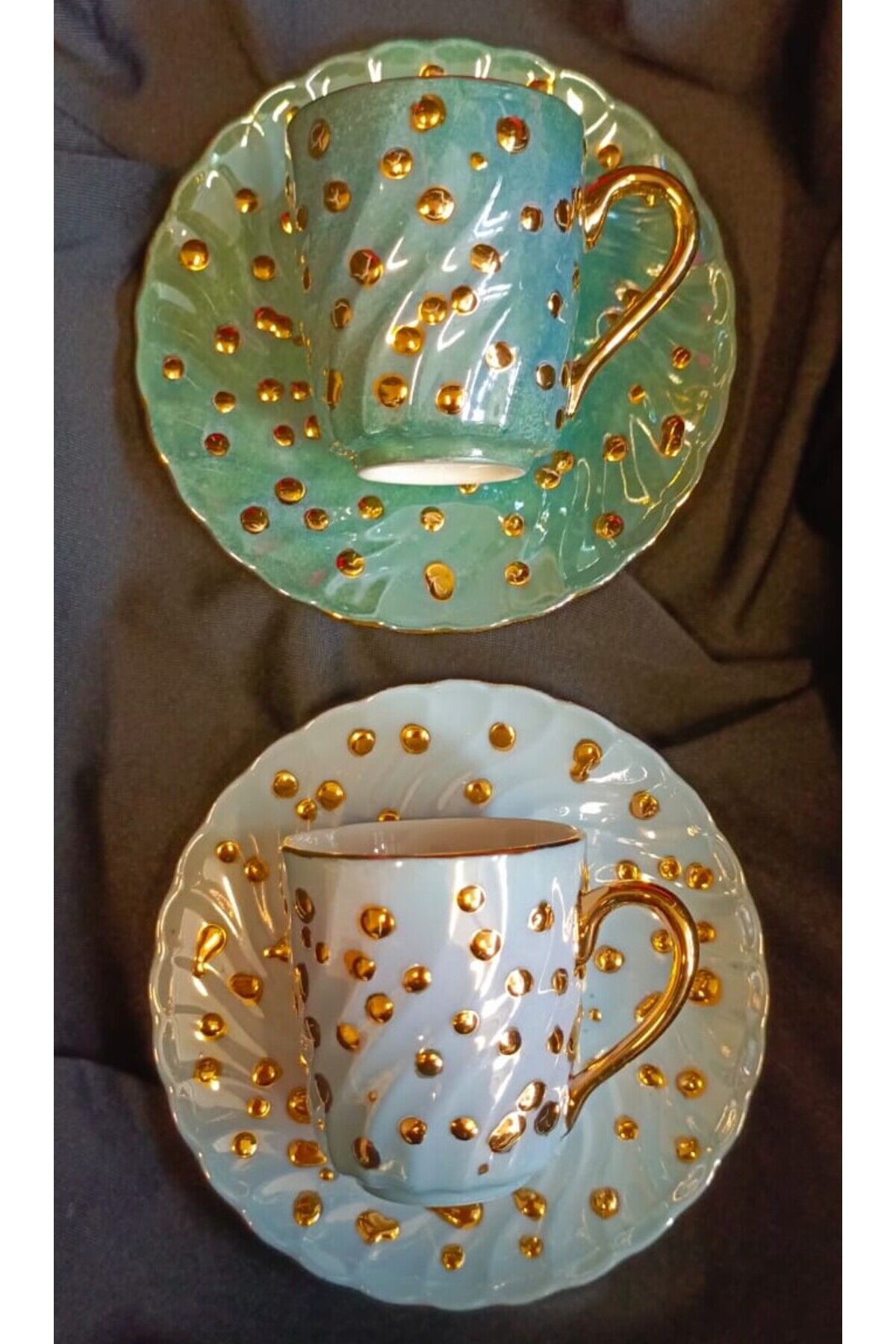 PORSELEN EL DEKOR 2Lİ KAHVE FİNCANI