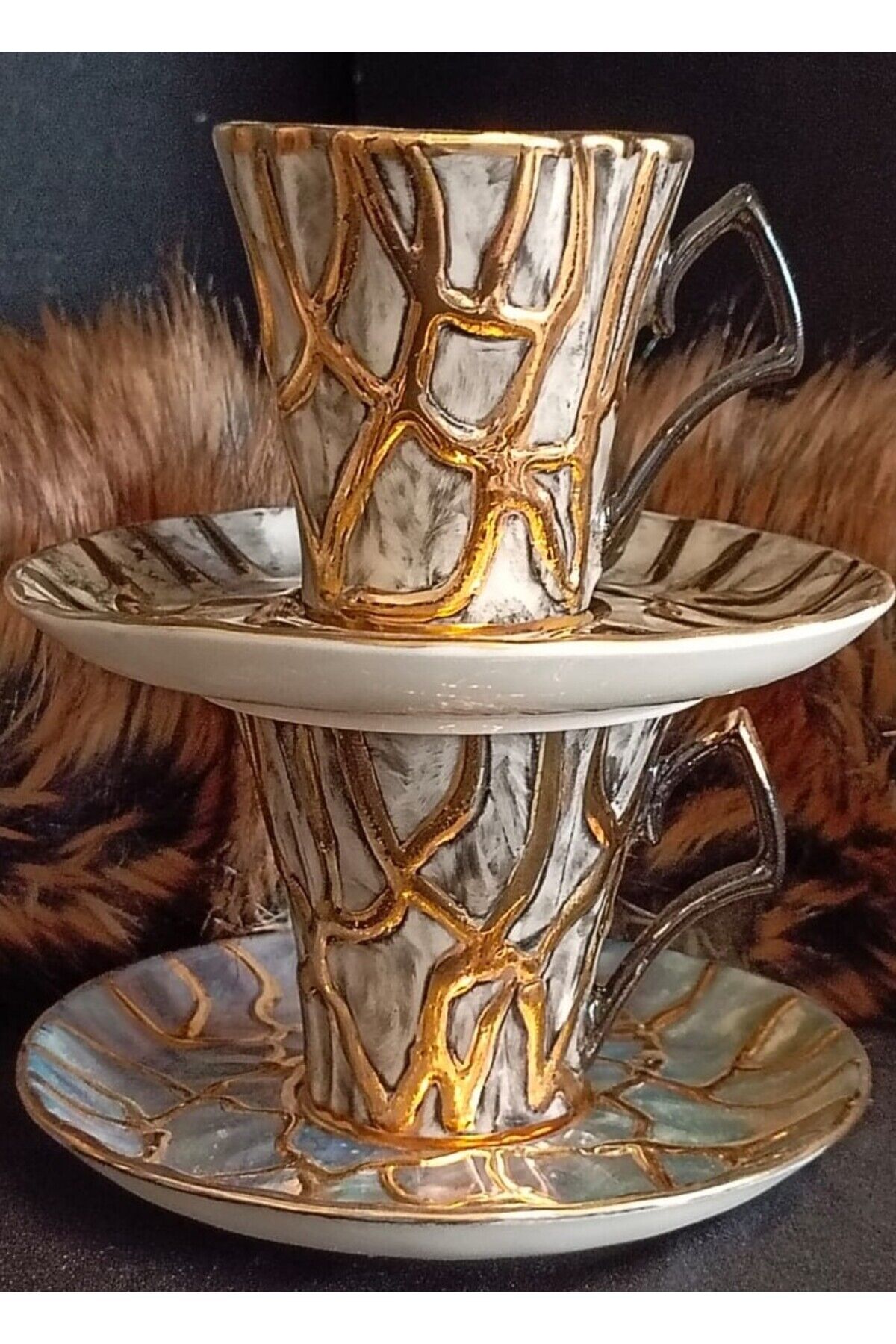 PORSELEN EL DEKOR 2Lİ KAHVE FİNCANI