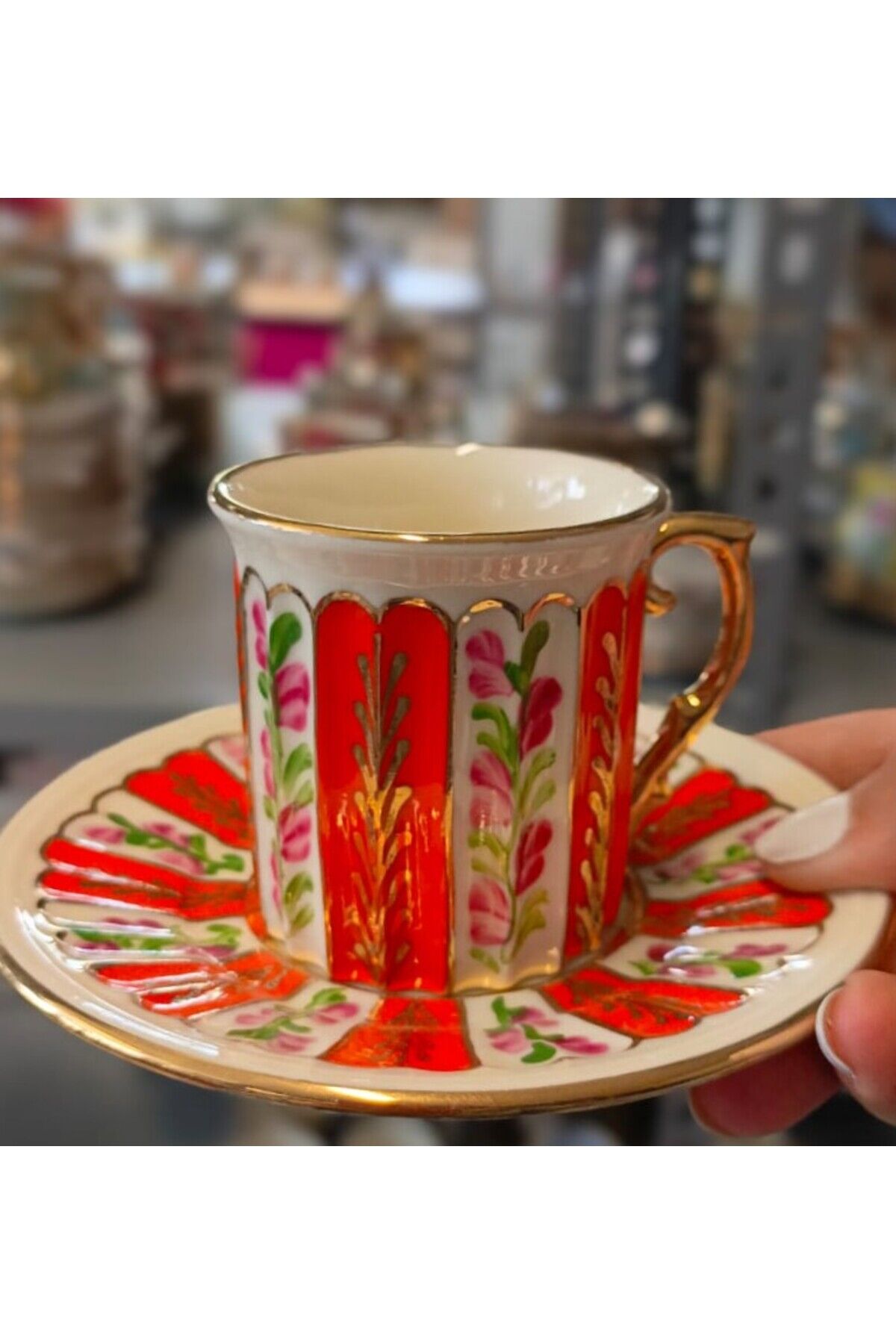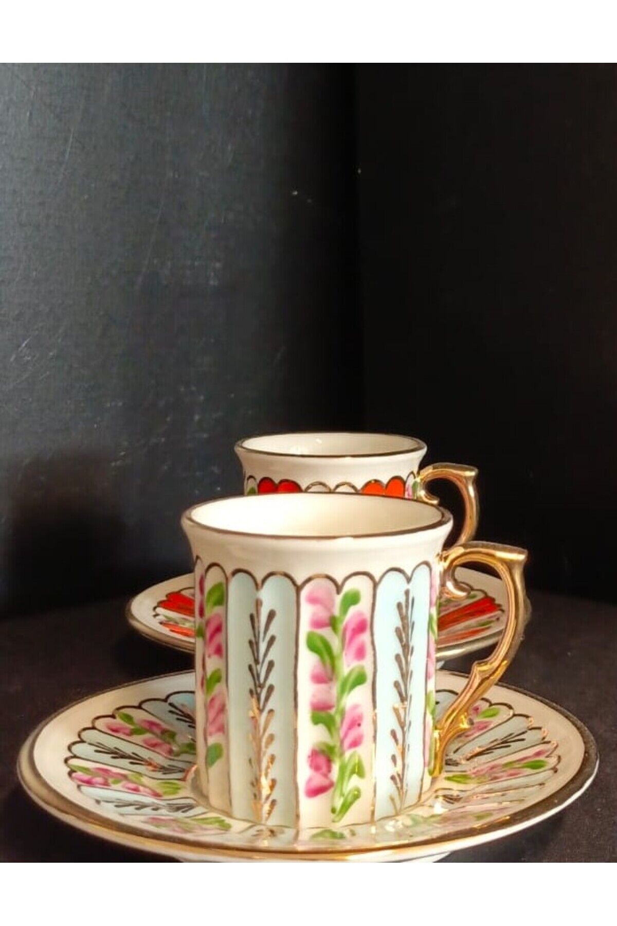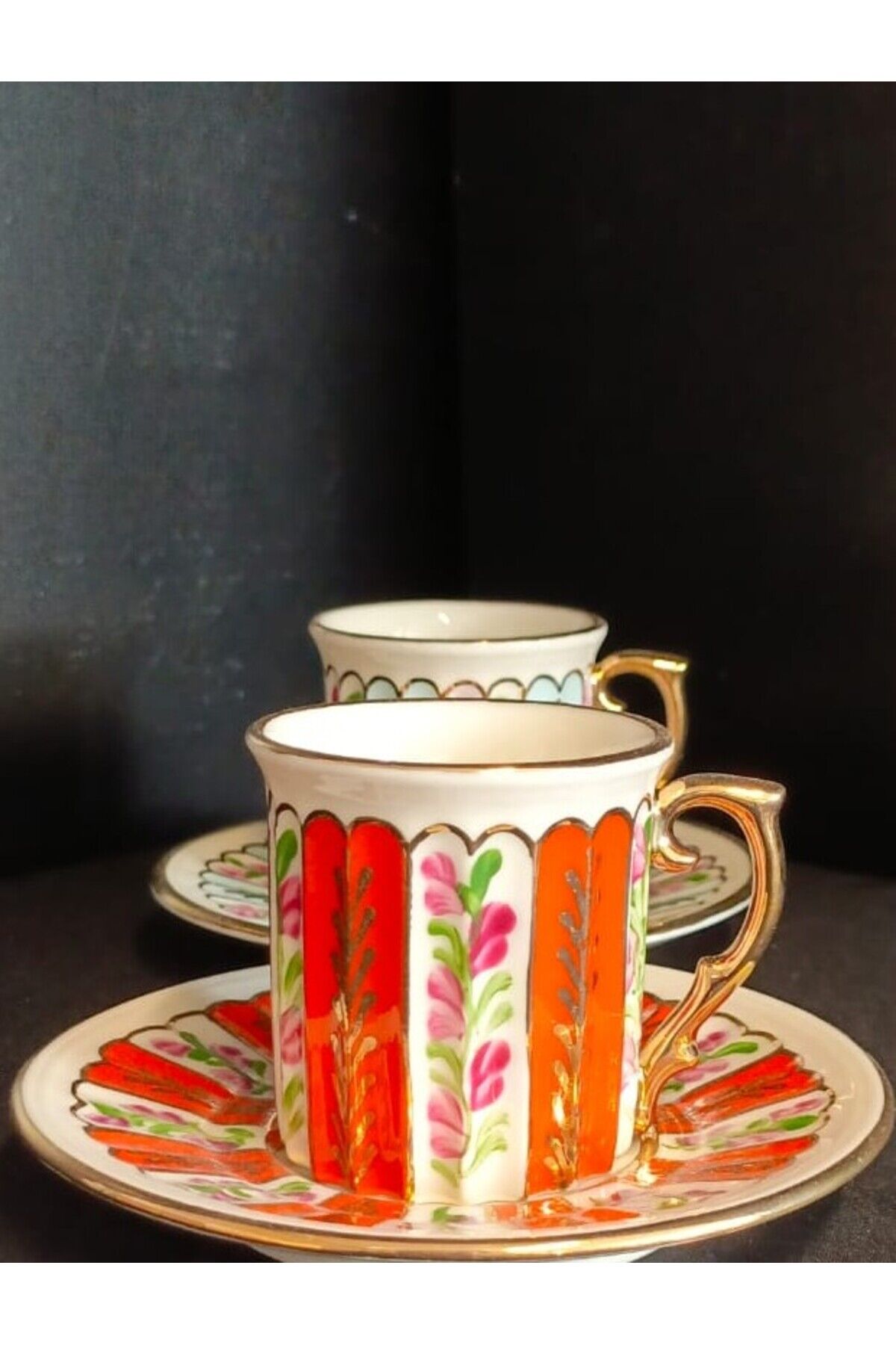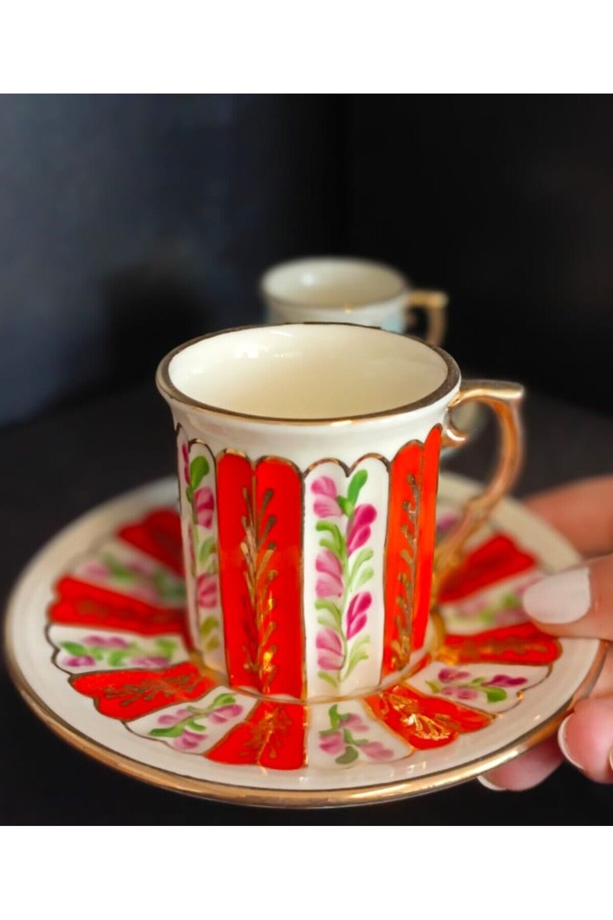 PORSELEN EL DEKOR 2Lİ KAHVE FİNCANI