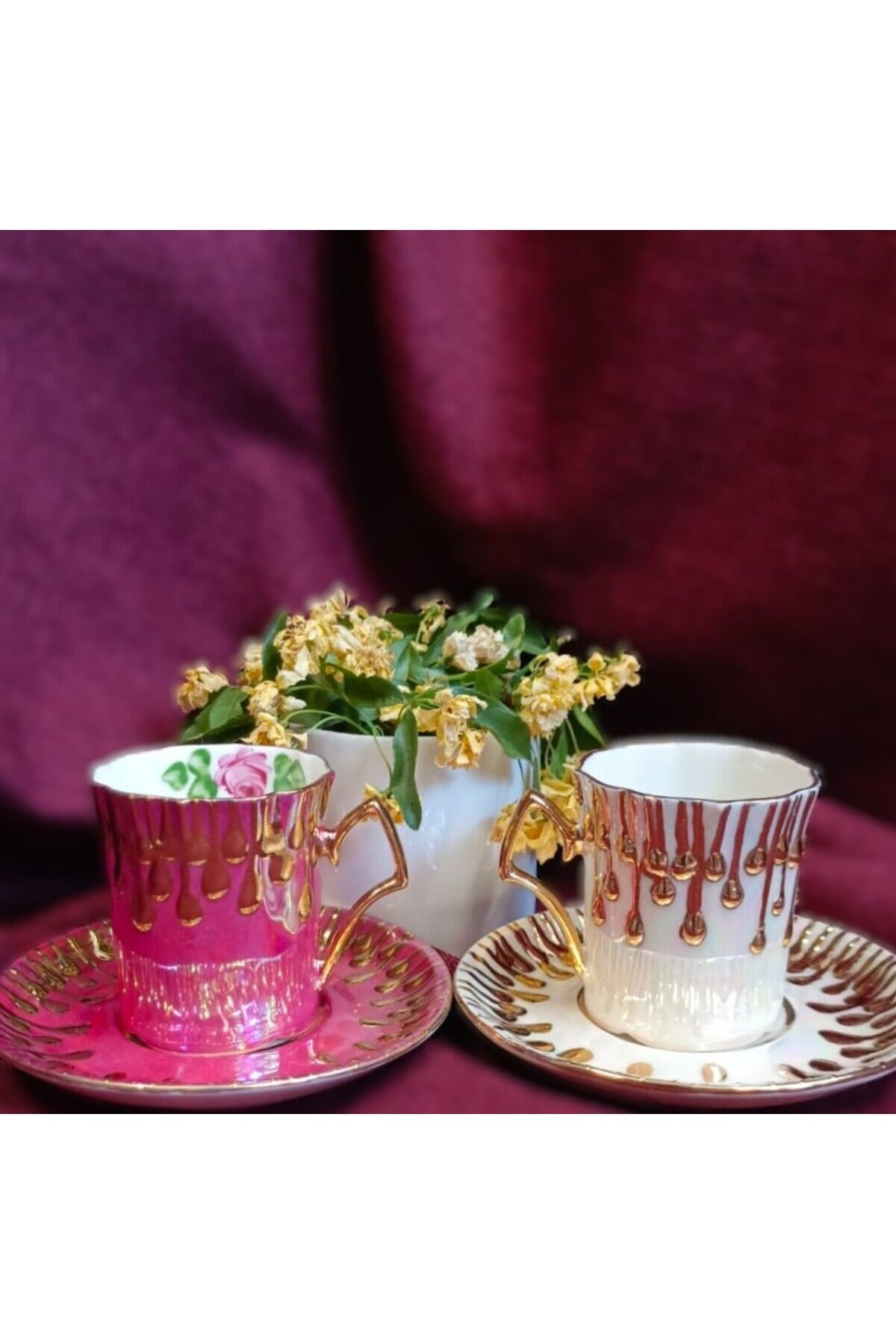 PORSELEN EL DEKOR BOYAMA 2Lİ KAHVE FİNCANI