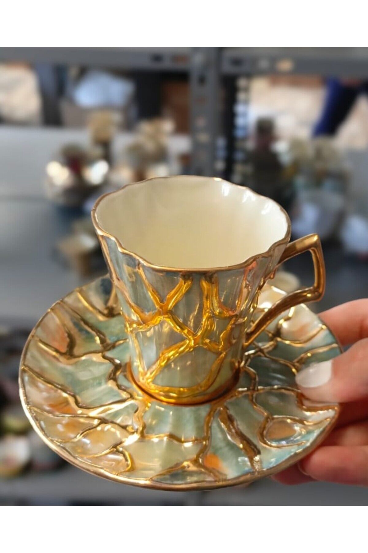 Porselen El Dekor Boyama 2li̇ Kahve Fi̇ncani