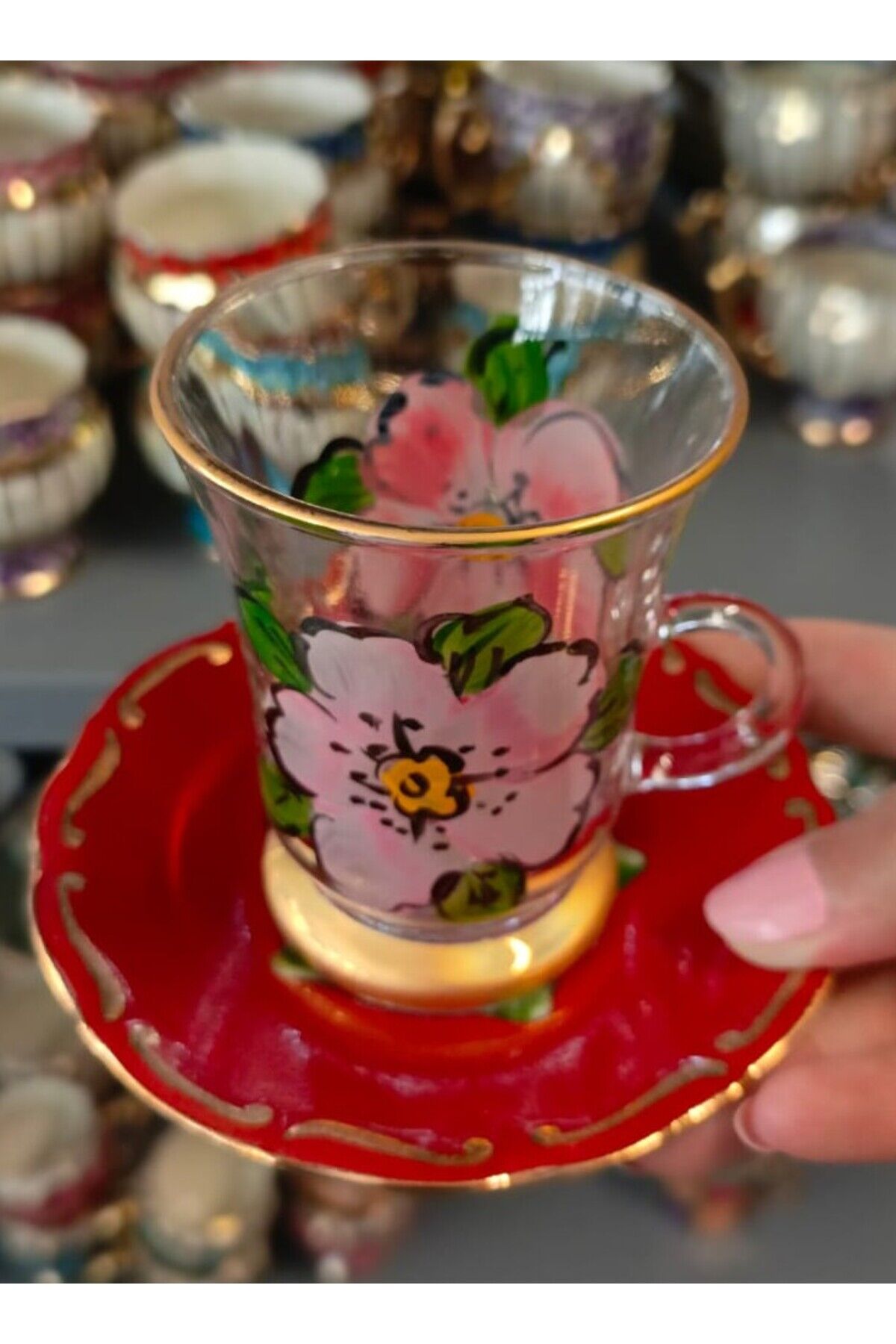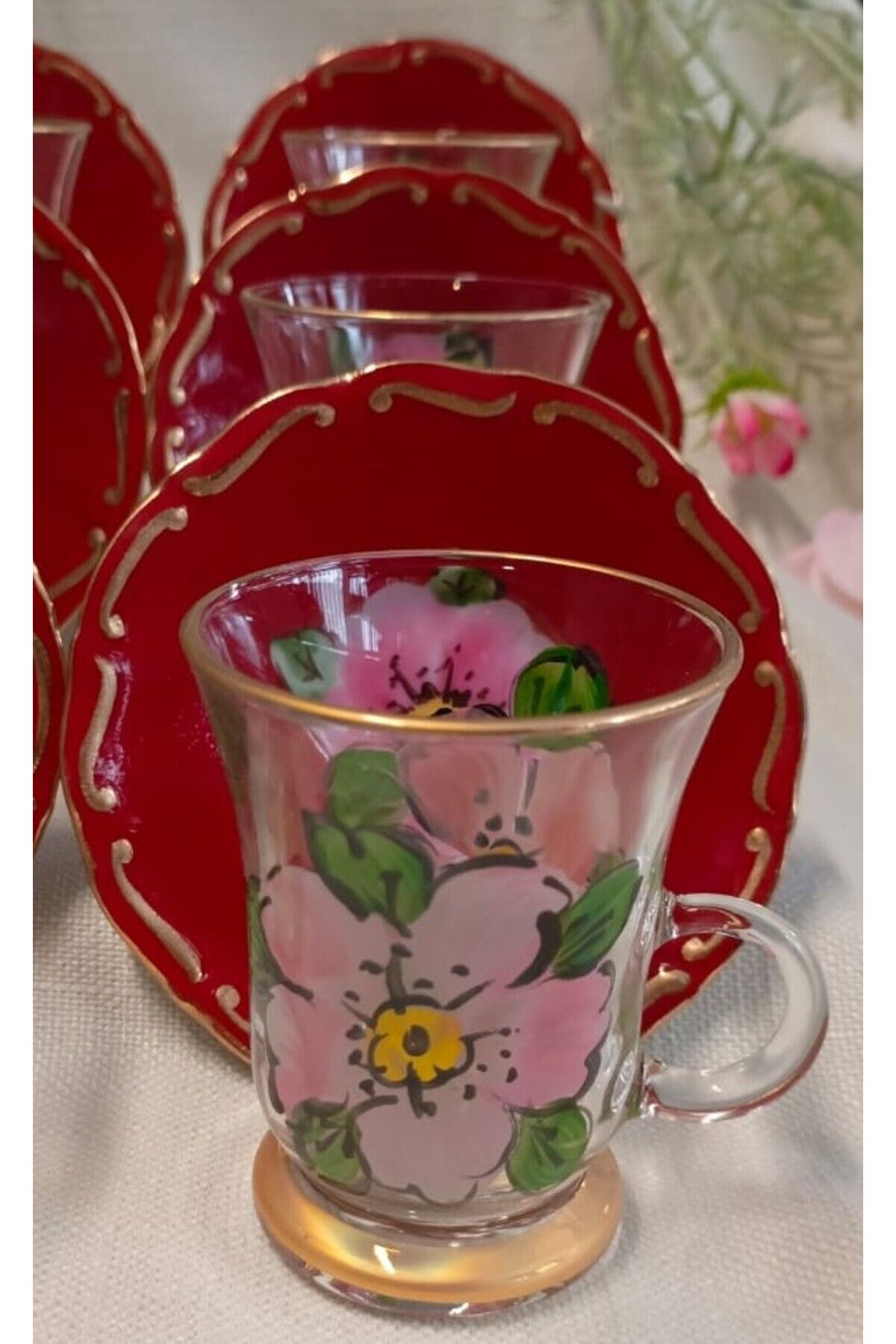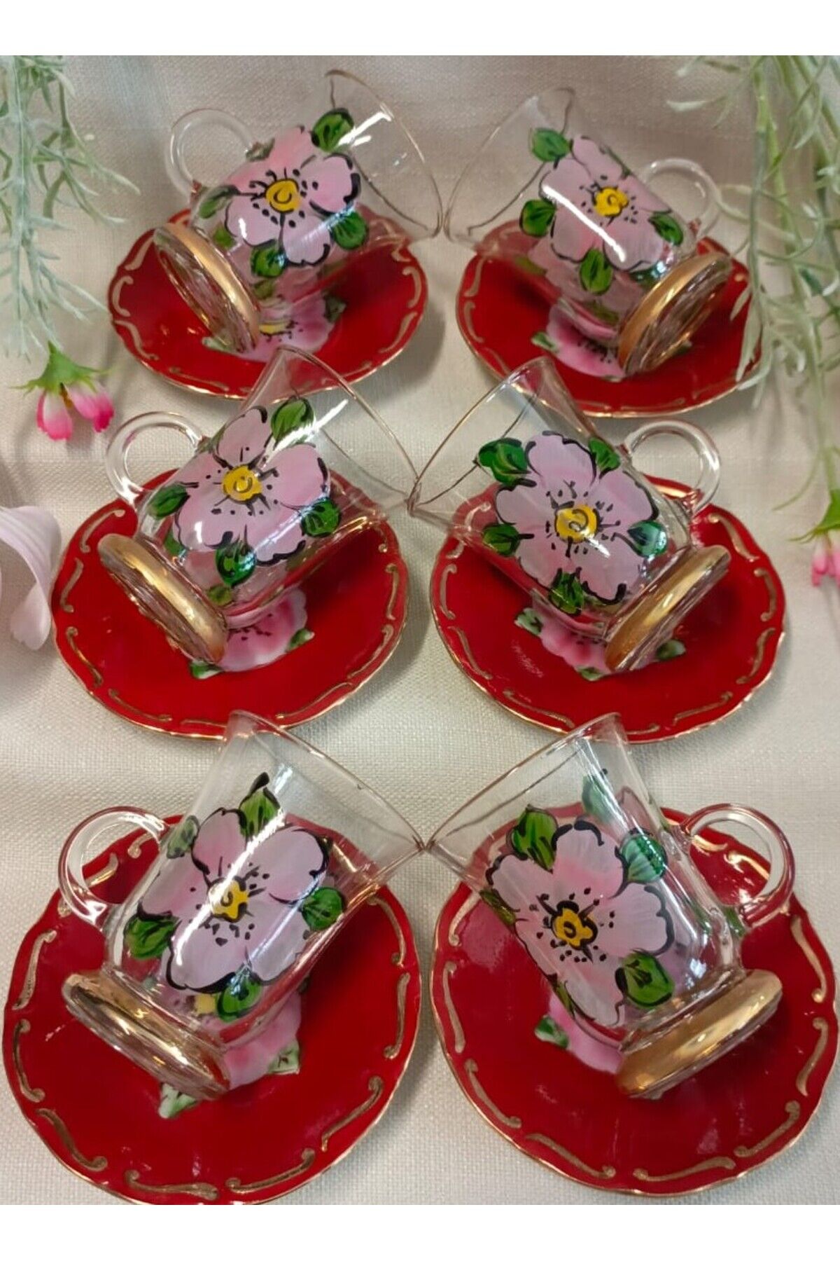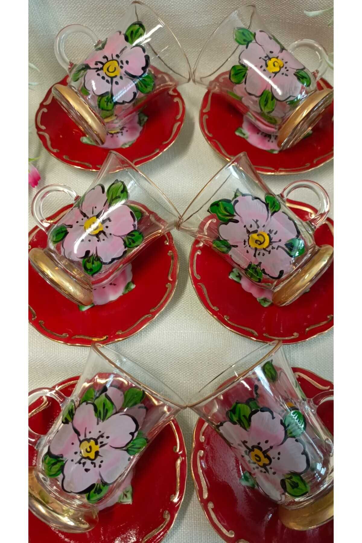 PORSELEN EL DEKOR BOYAMA 6LI ÇAY BARDAĞI TAKIMI