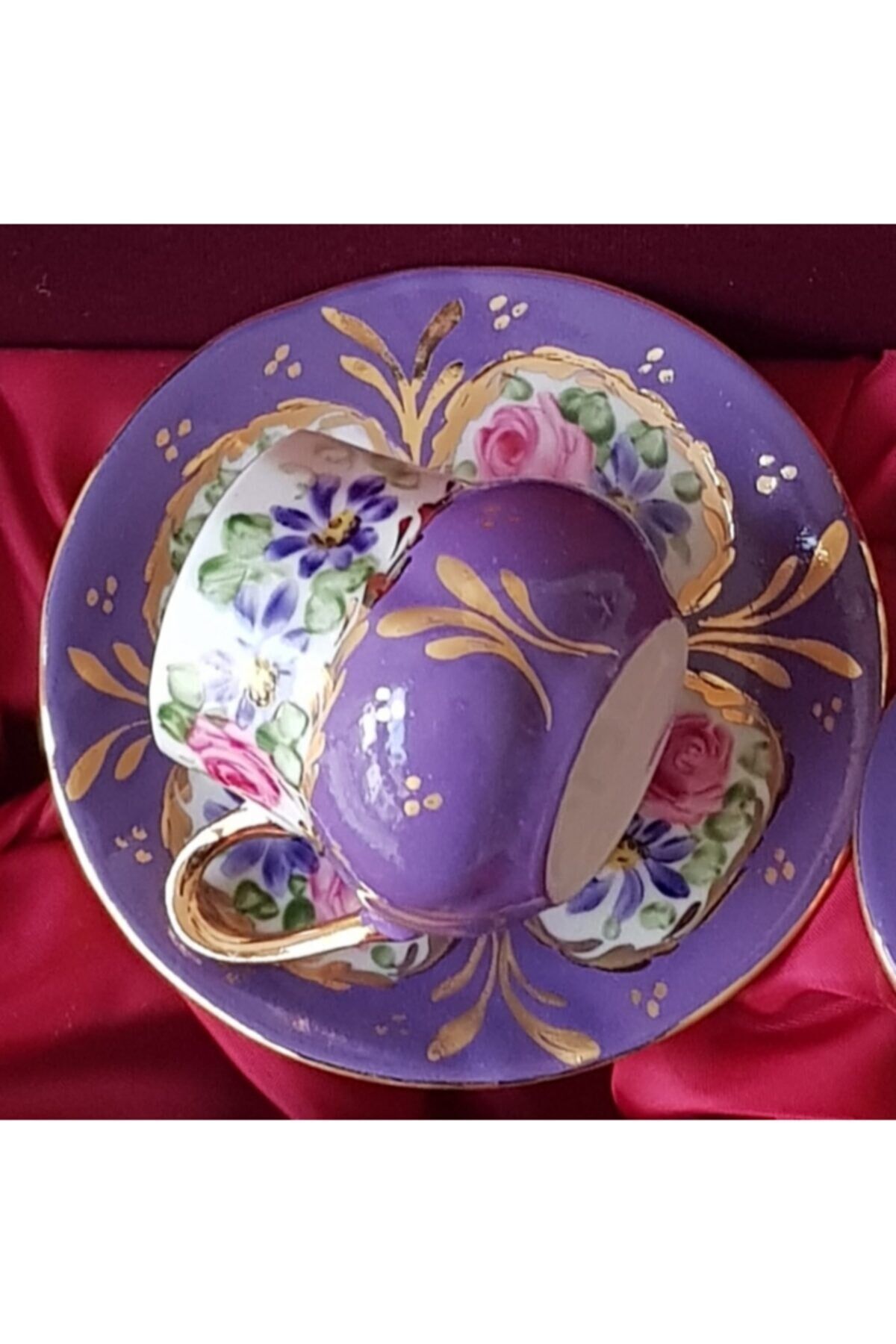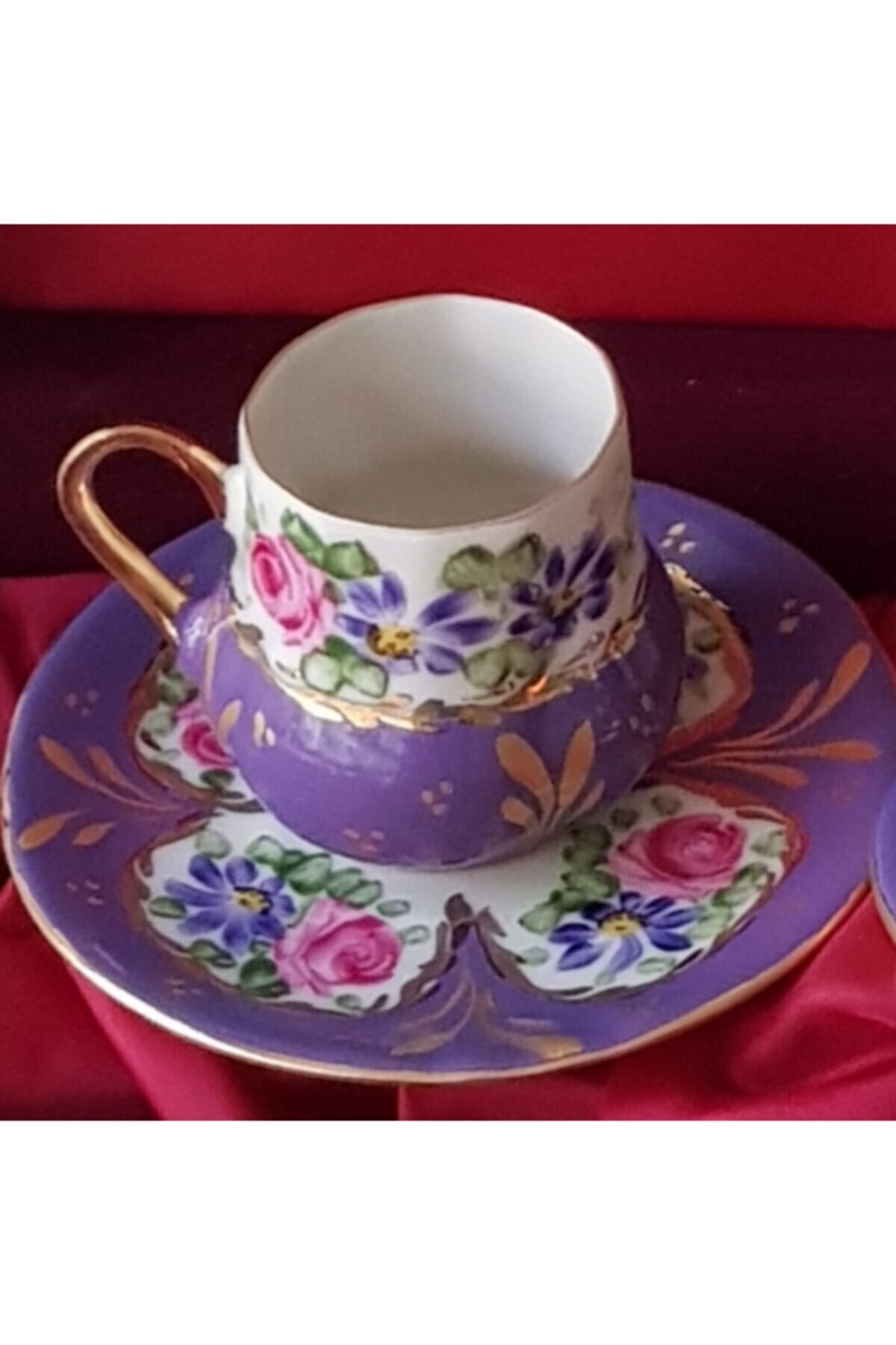 Porselen Tombul El Boyama Kahve Fincani