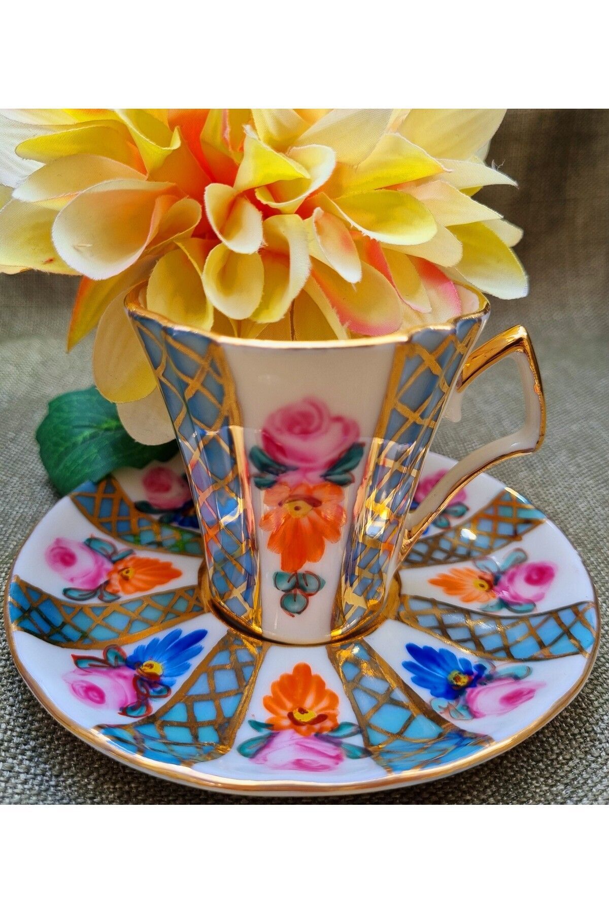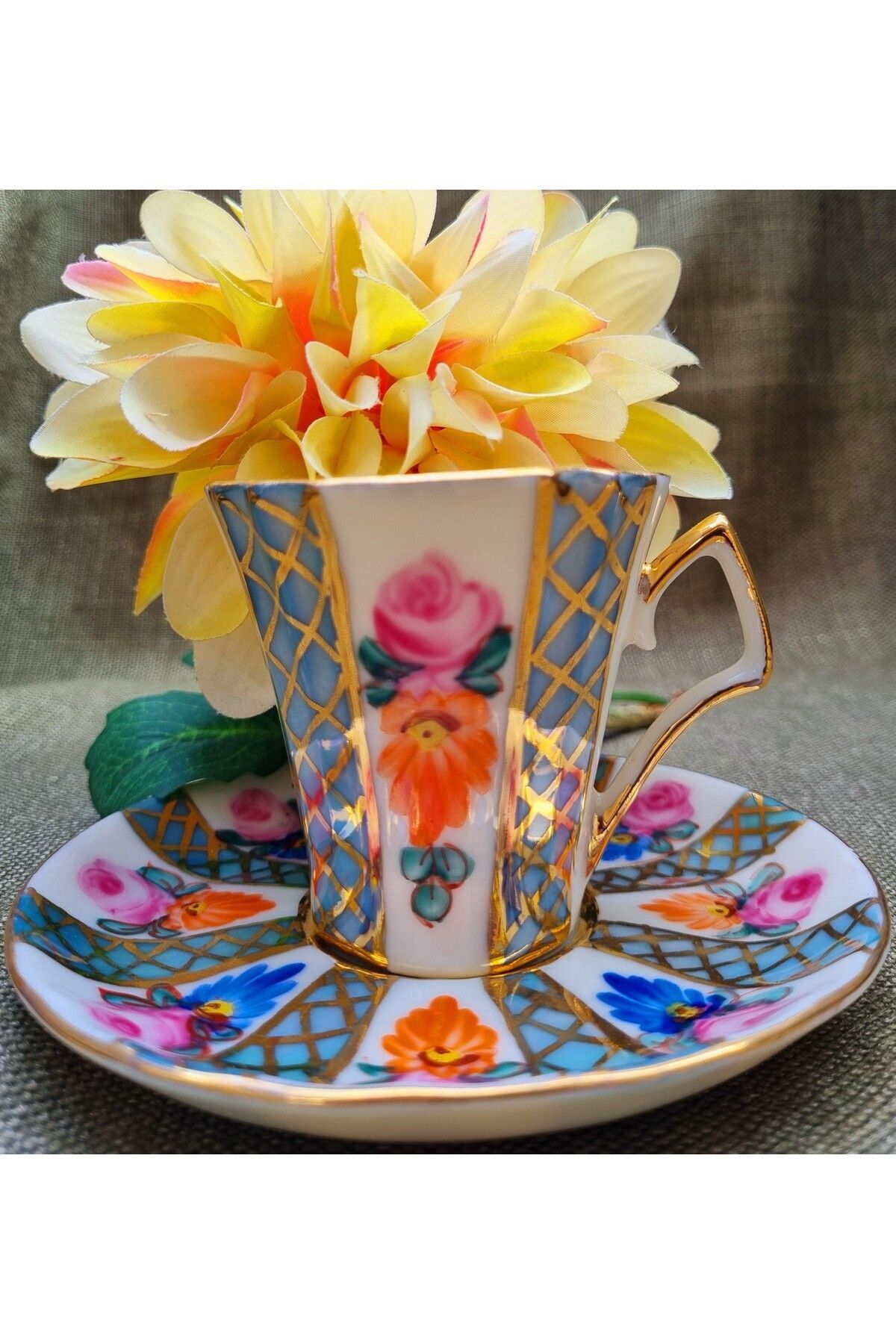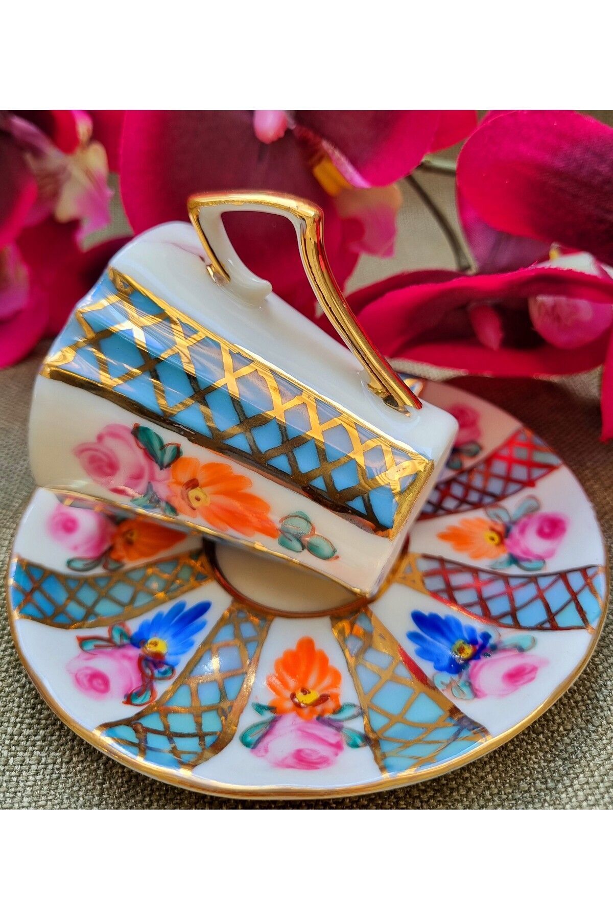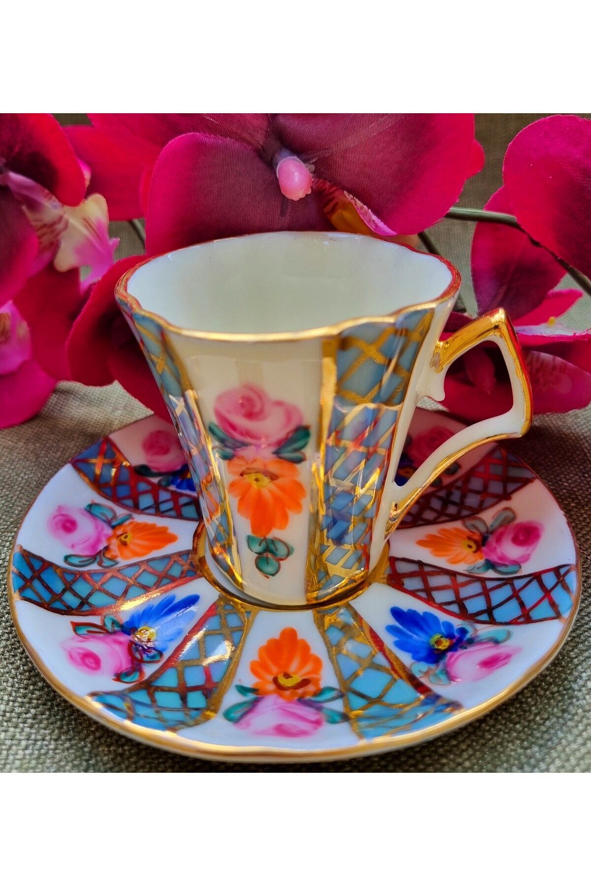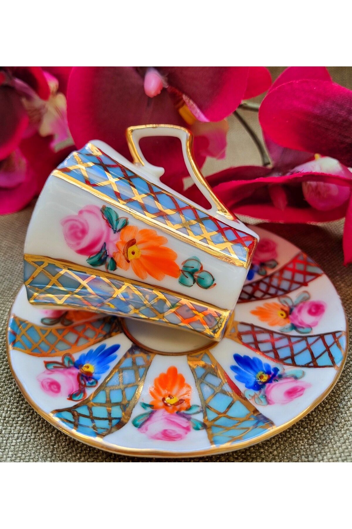 Rabirent Porselen El Boyama 2li Fincan Takımı