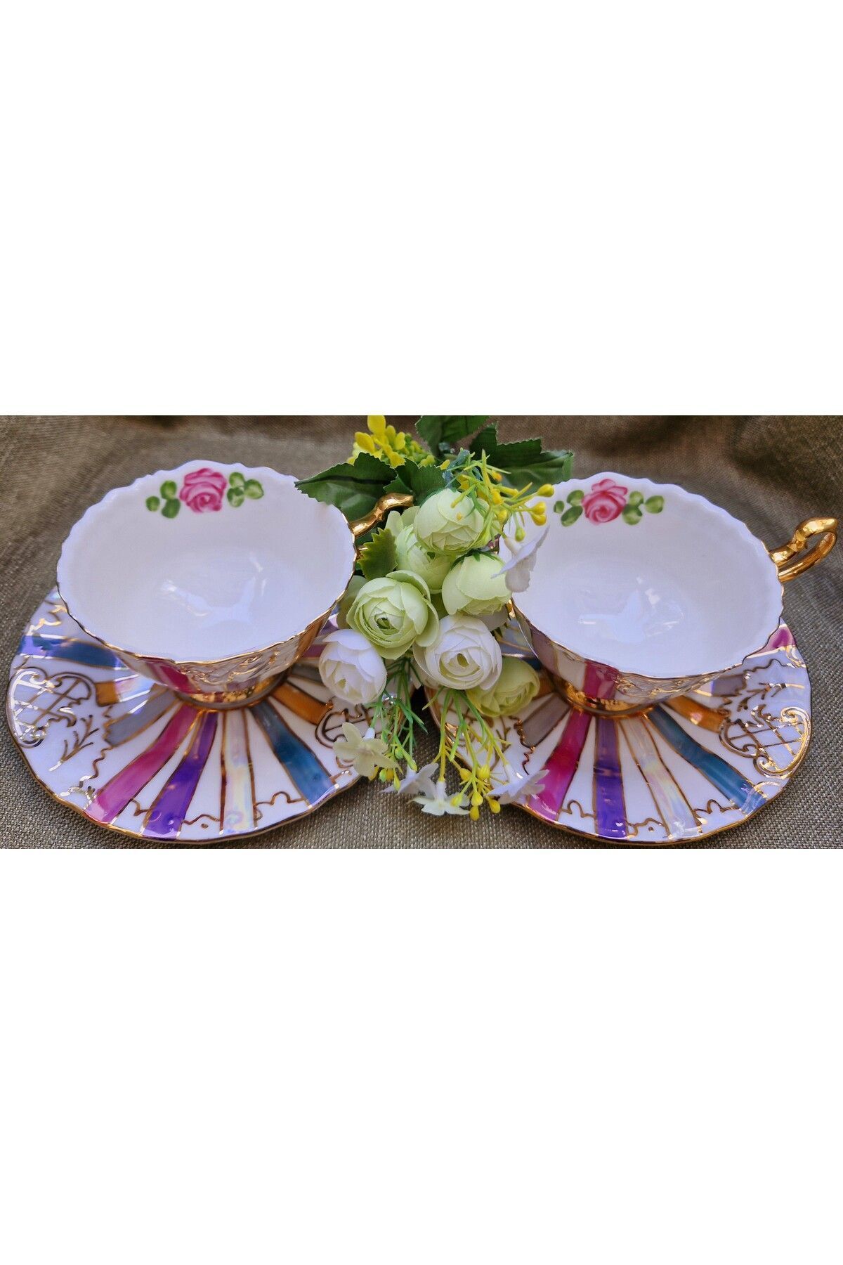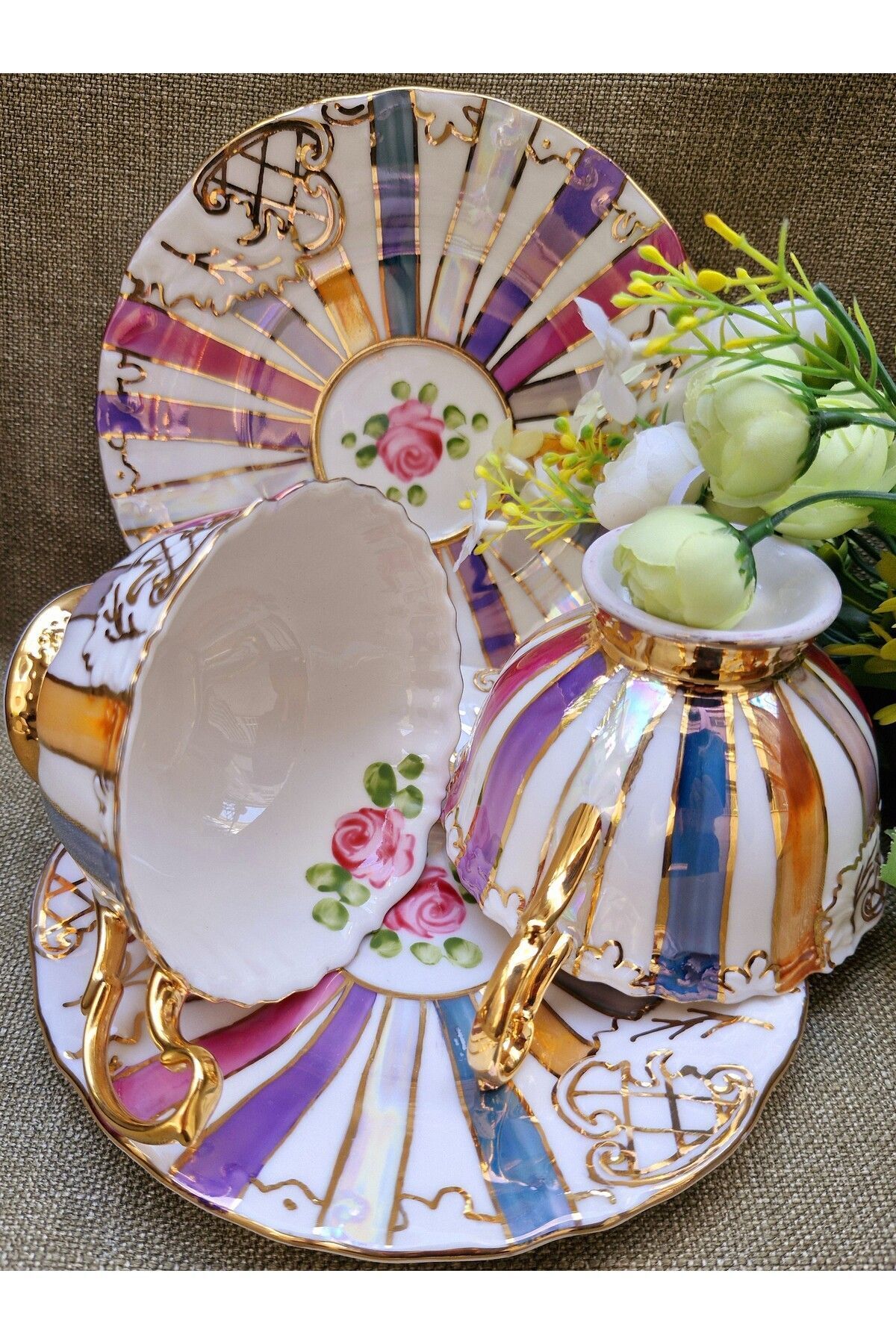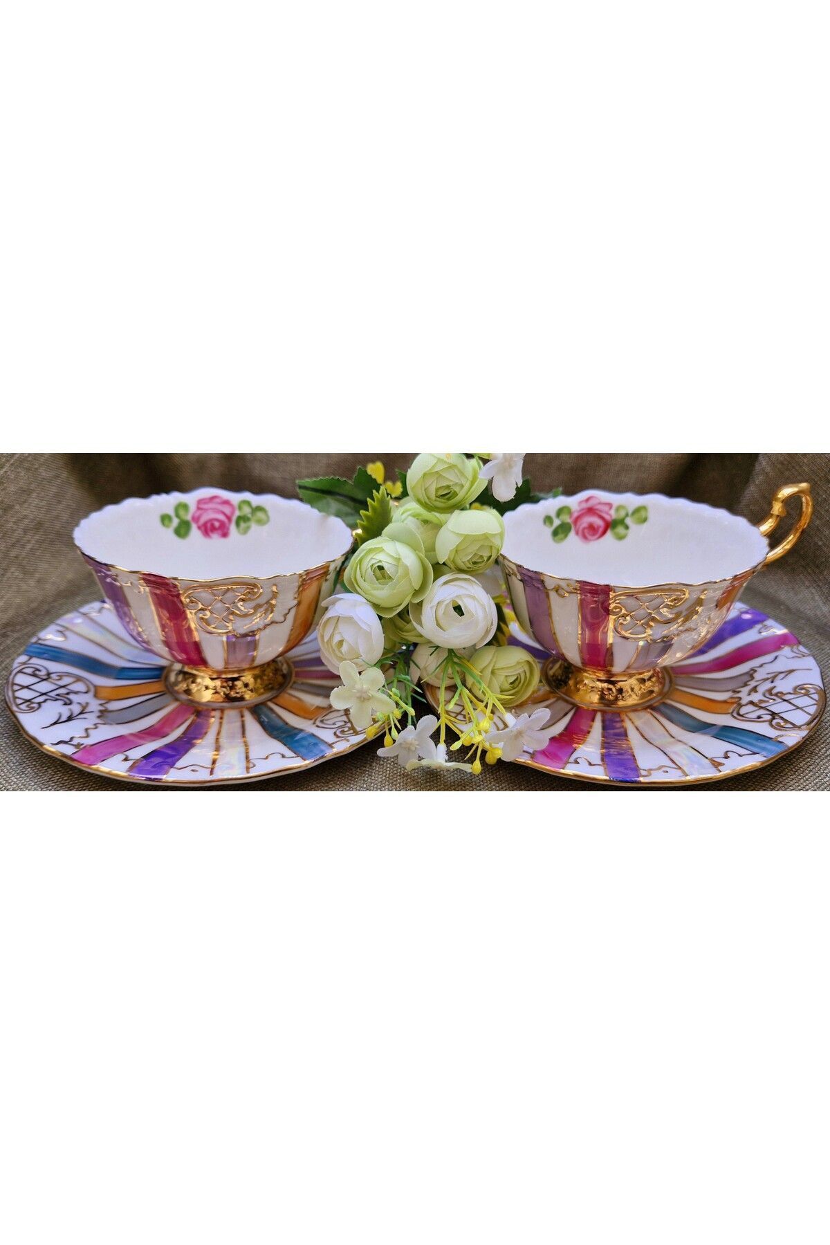 Raduga Porselen El Boyama 2li Çay Fincan Takımı