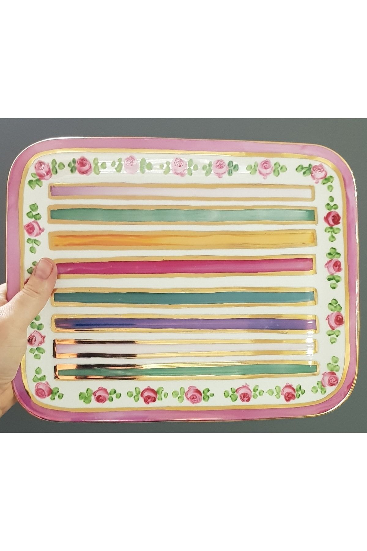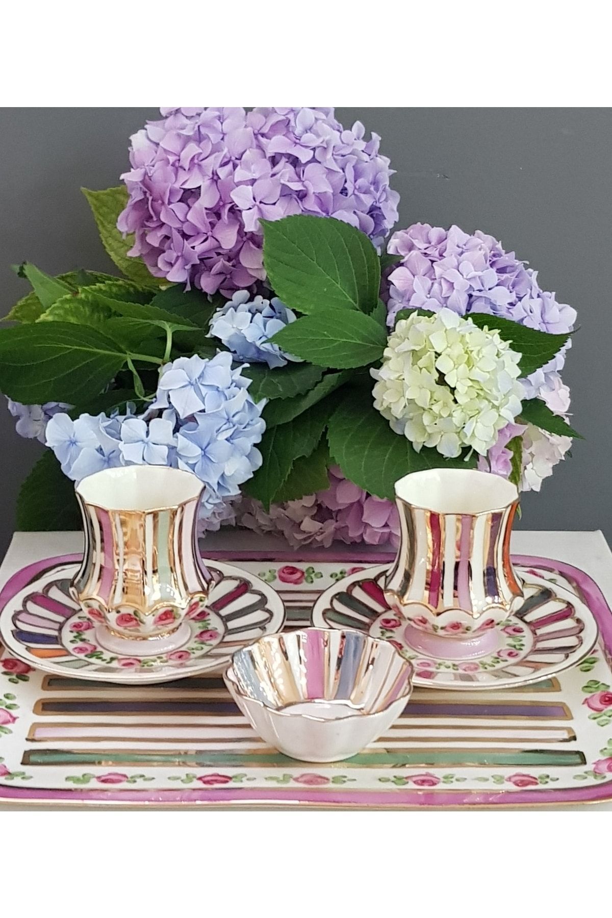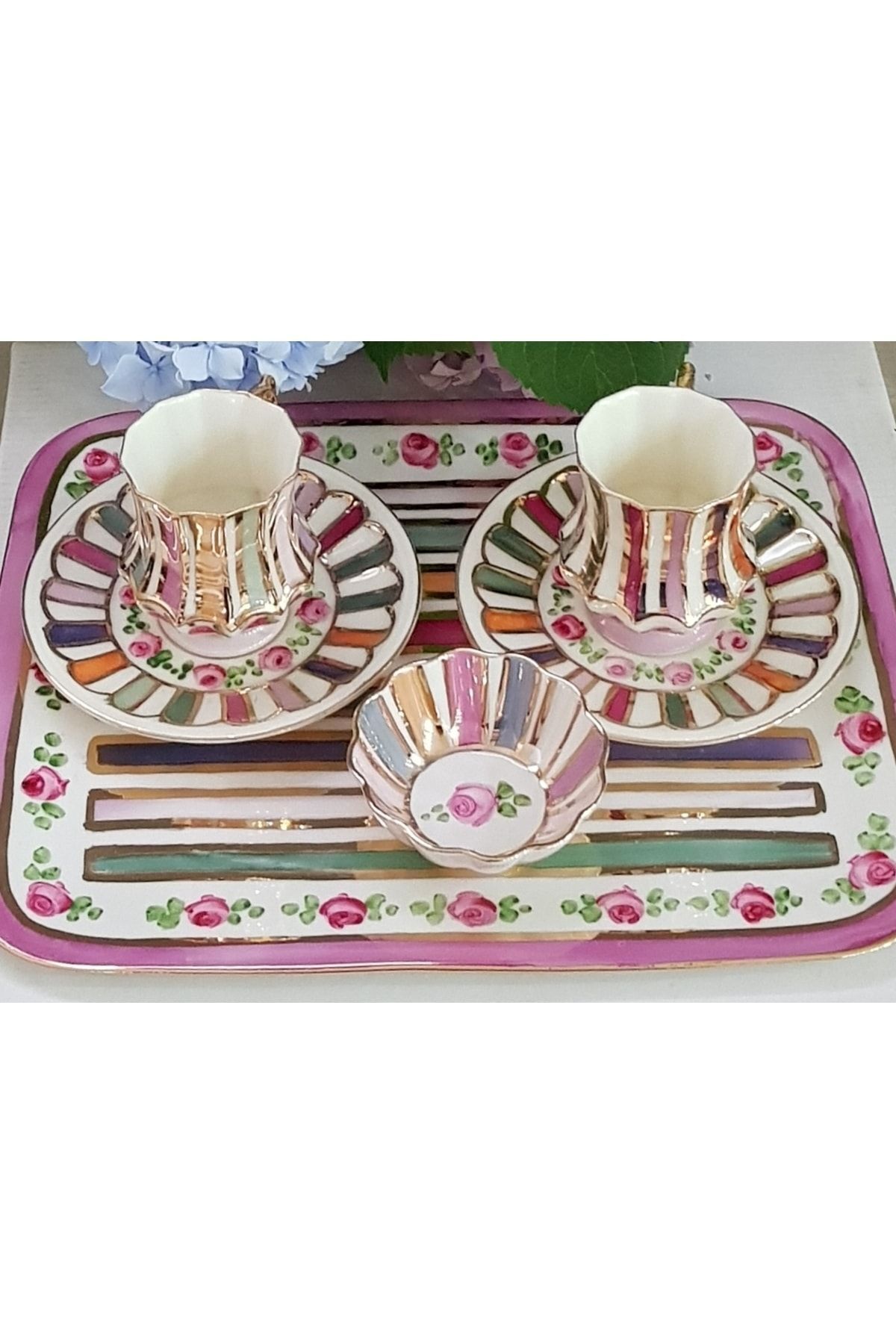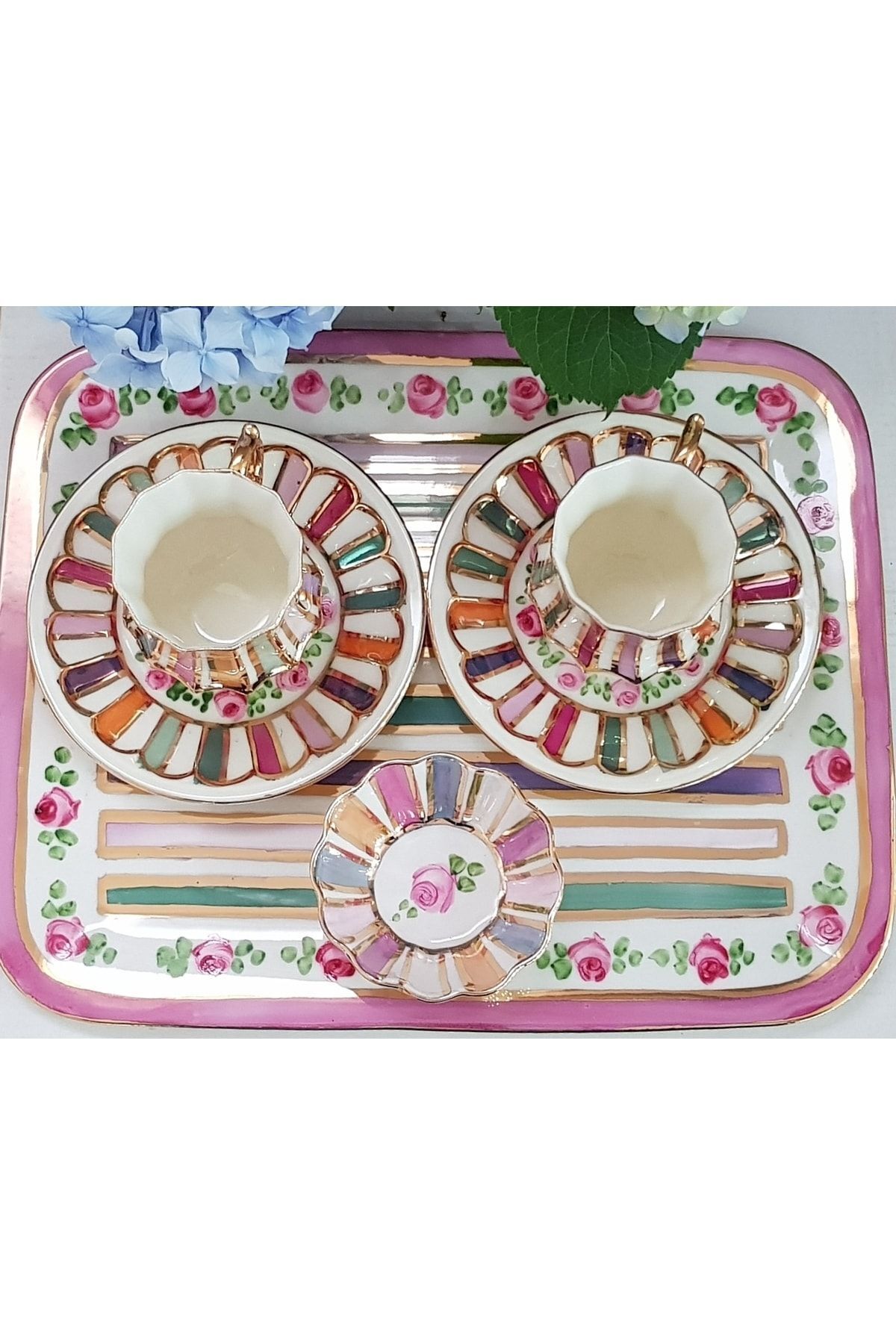 Raduga Porselen El Boyama Tepsili Ikili Fincan Takimi