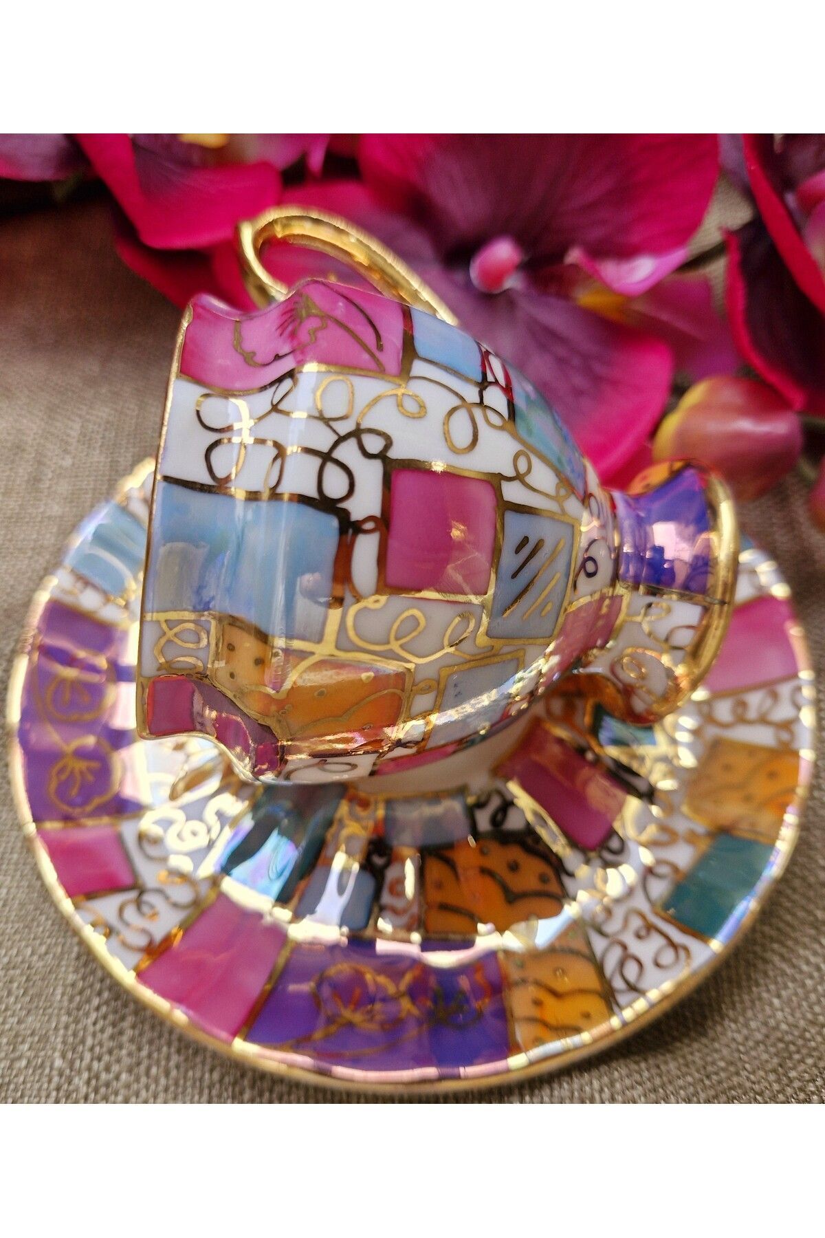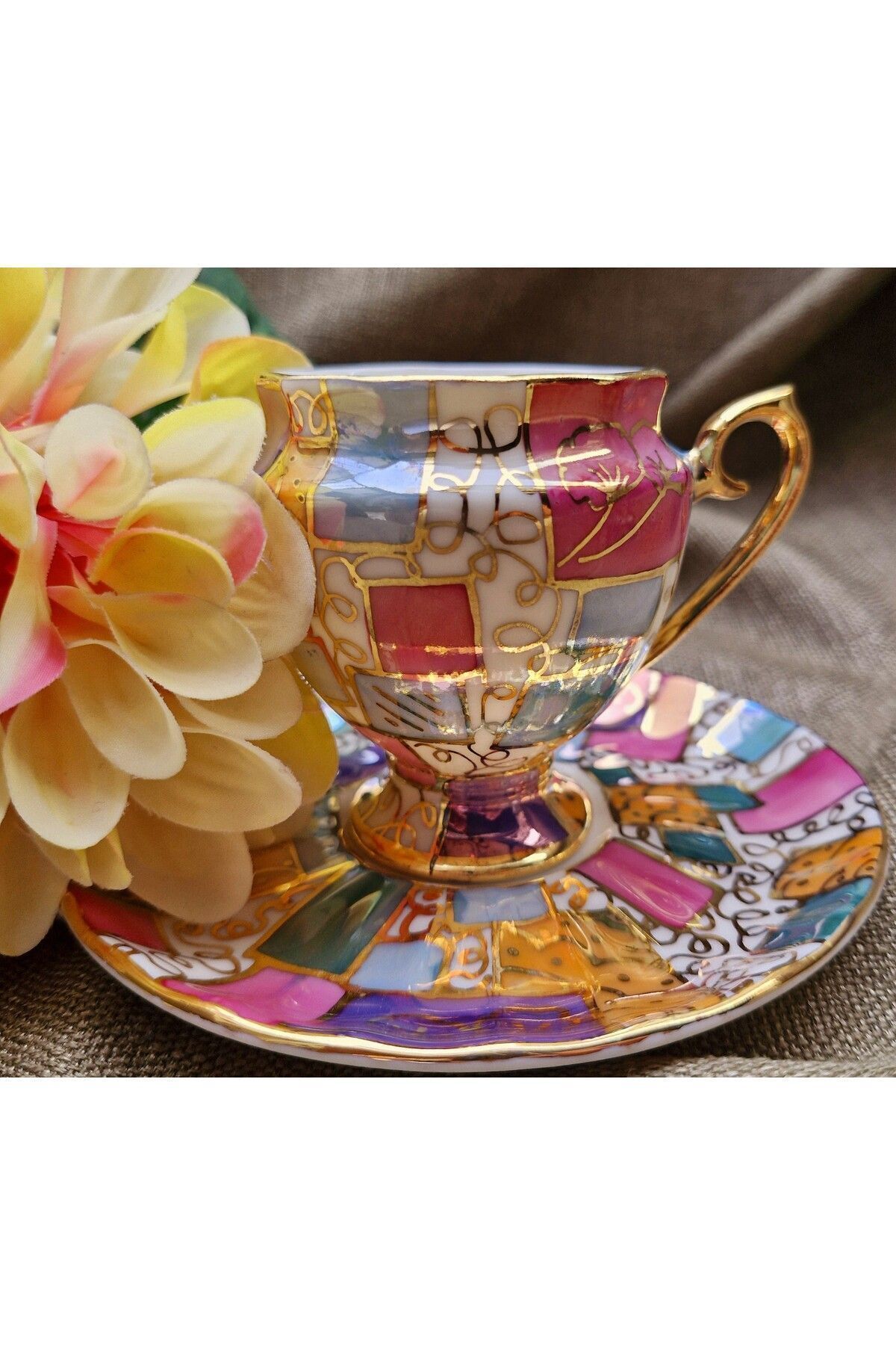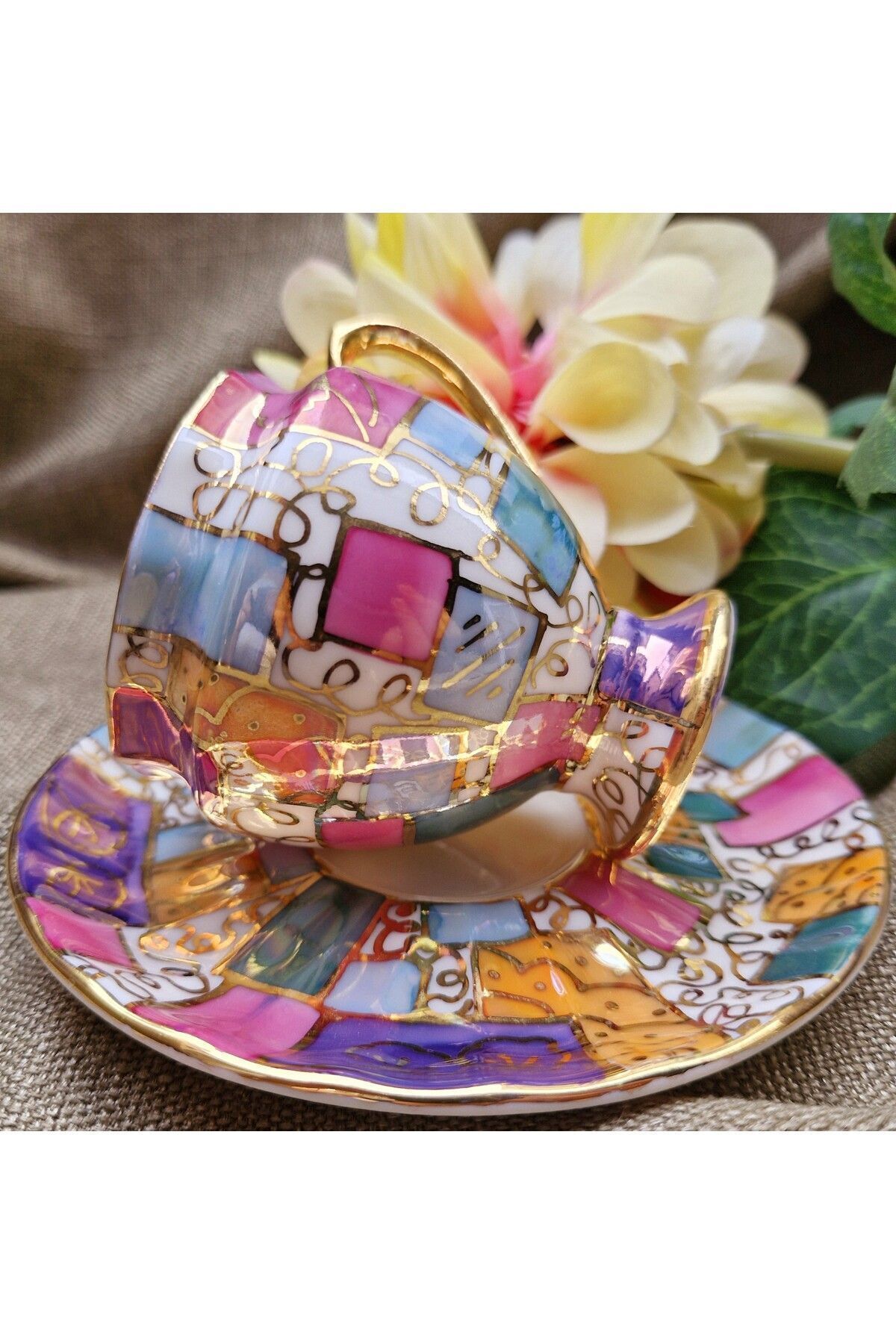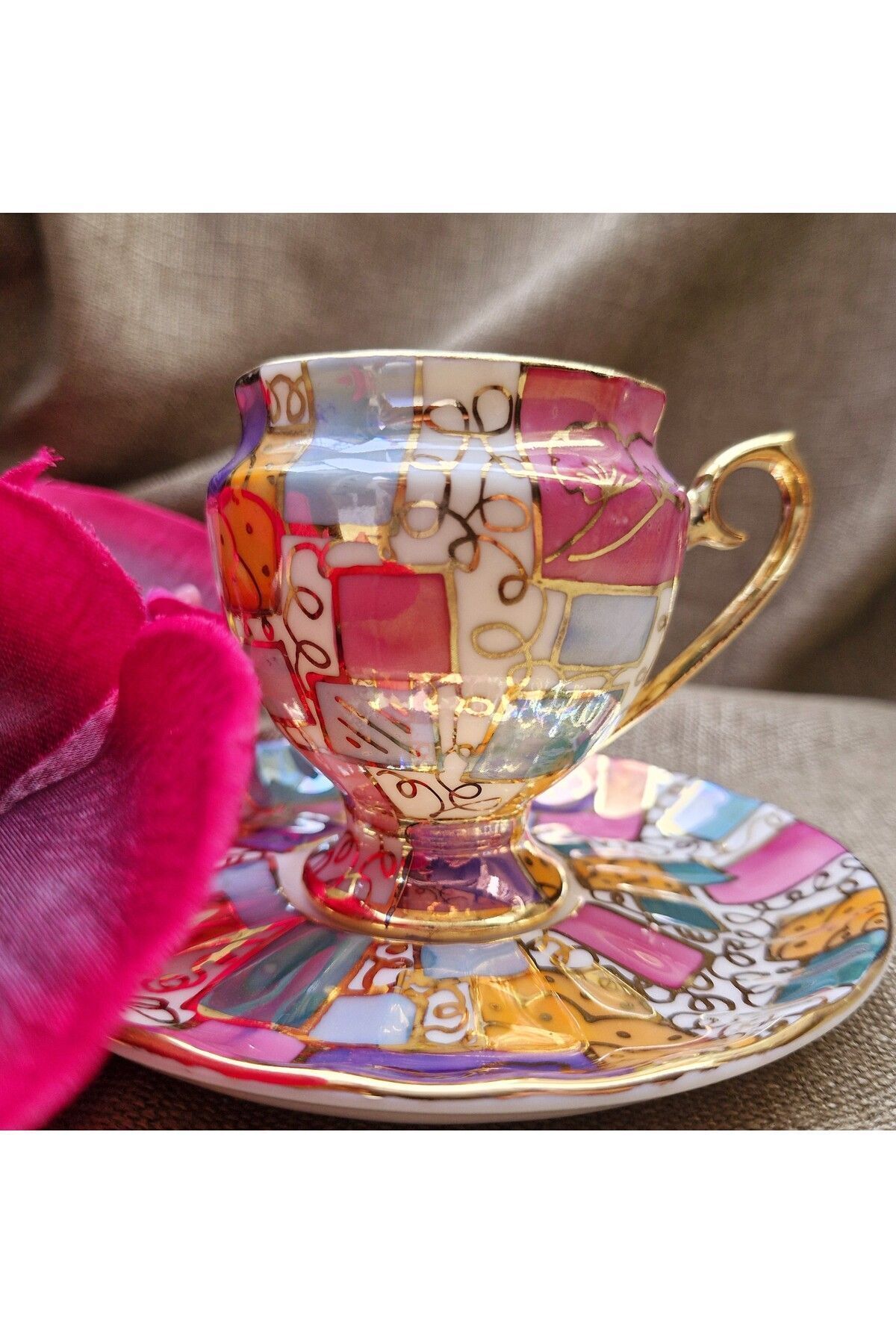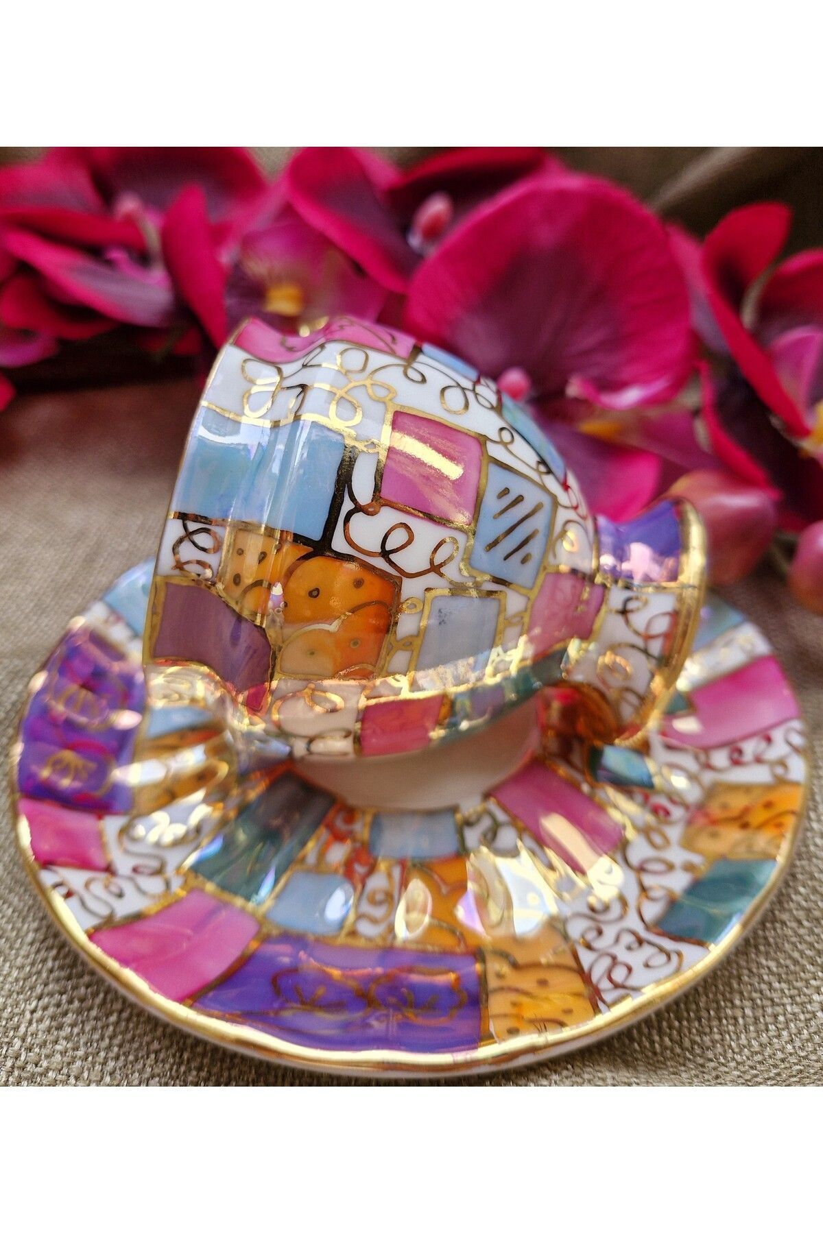 Renkli Porselen El Boyama 2li Fincan Takımı