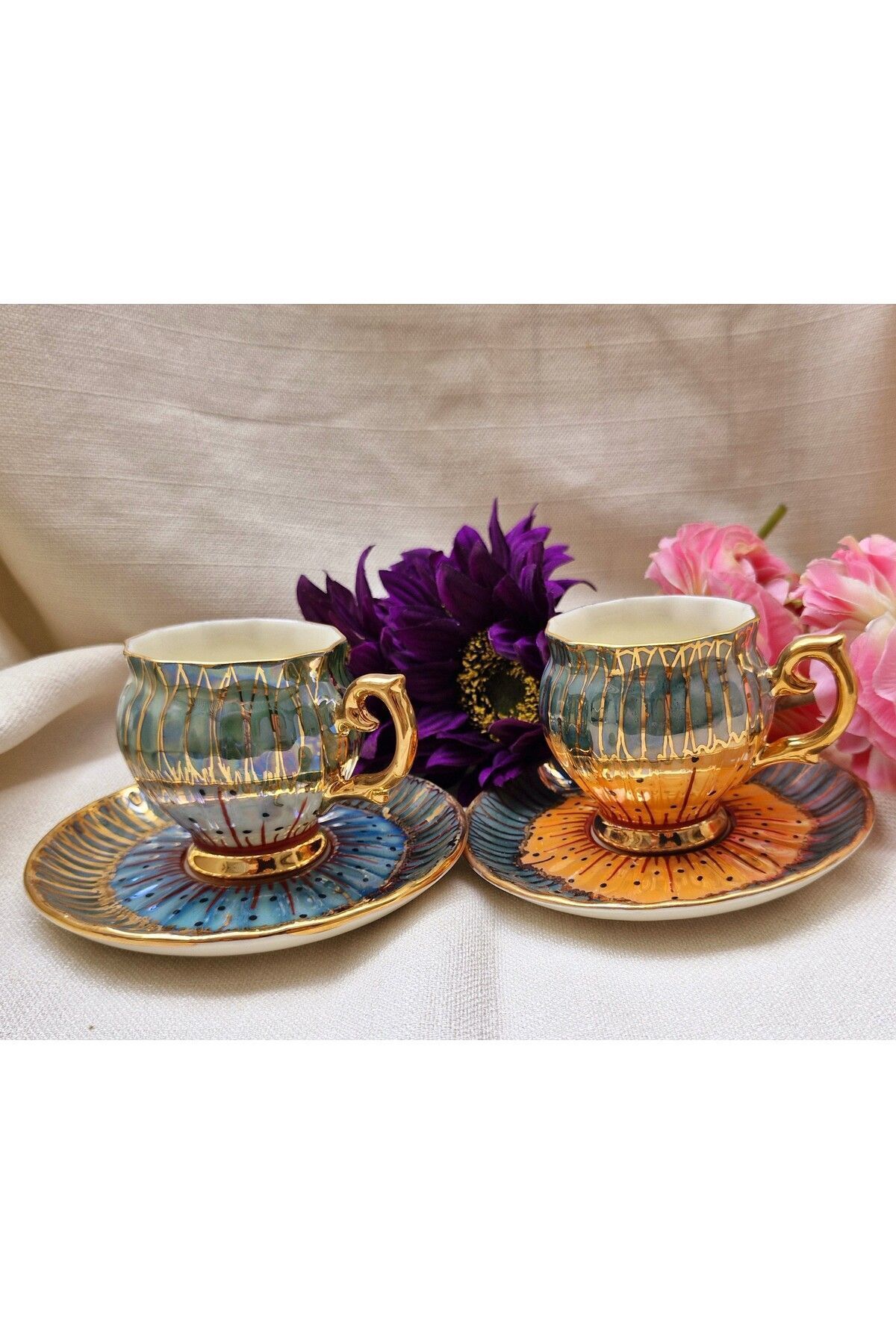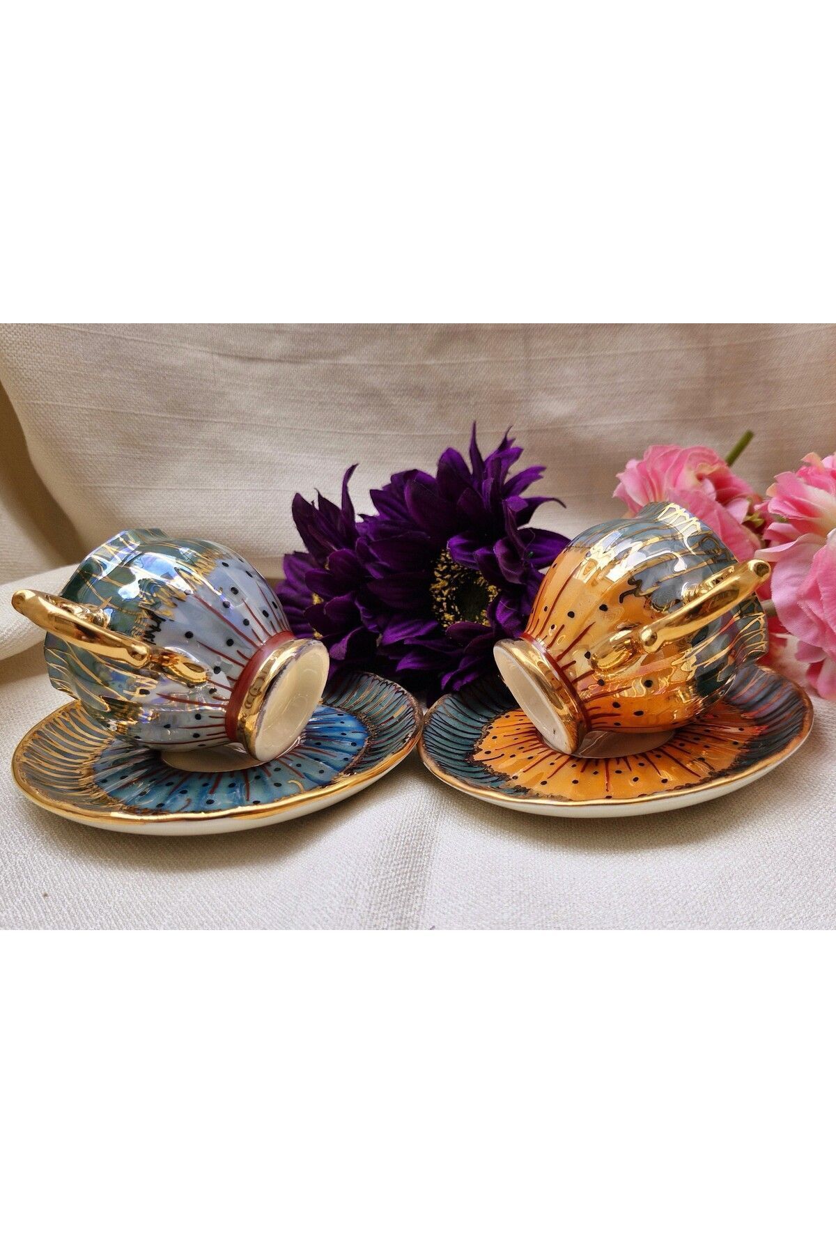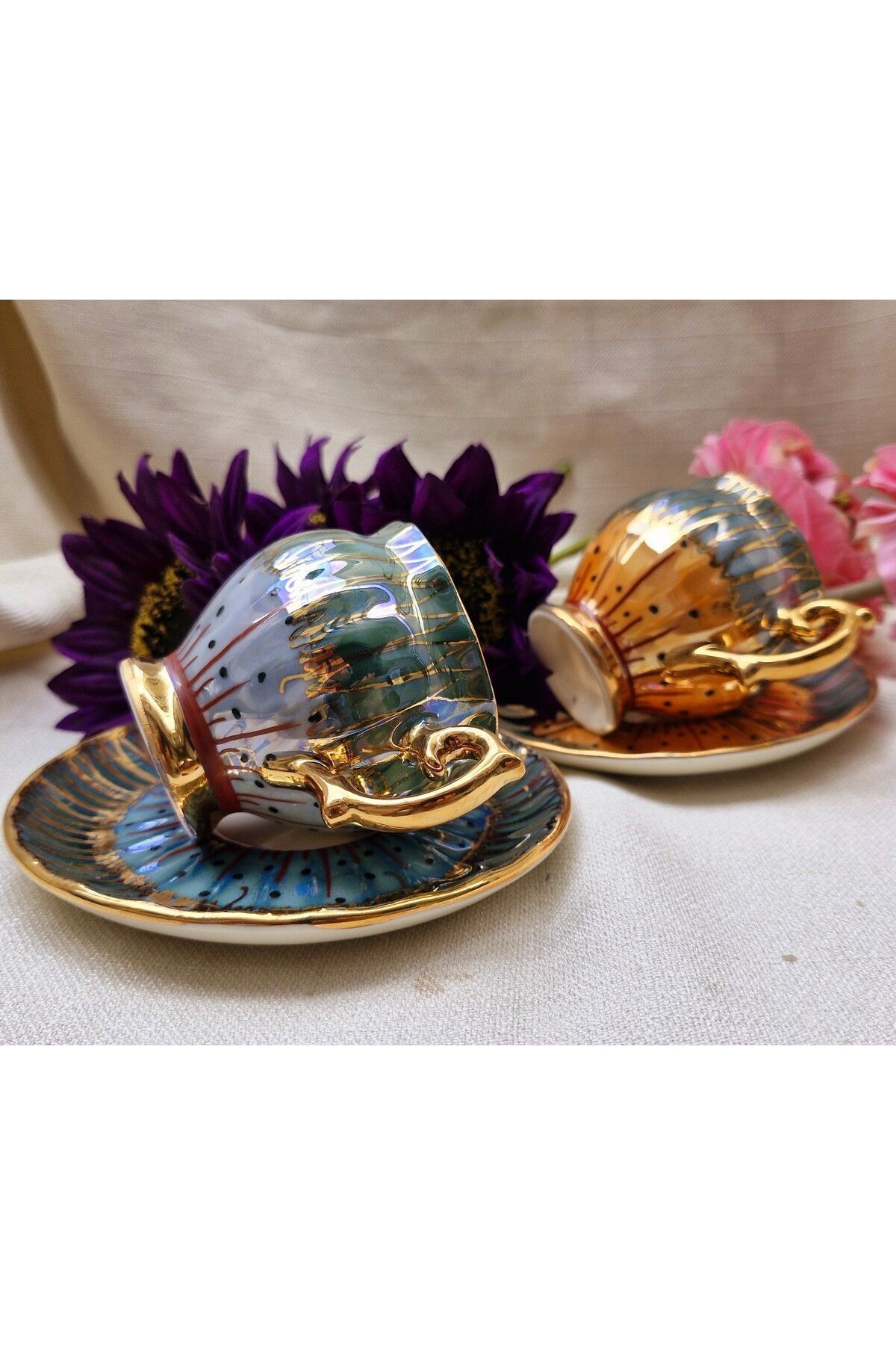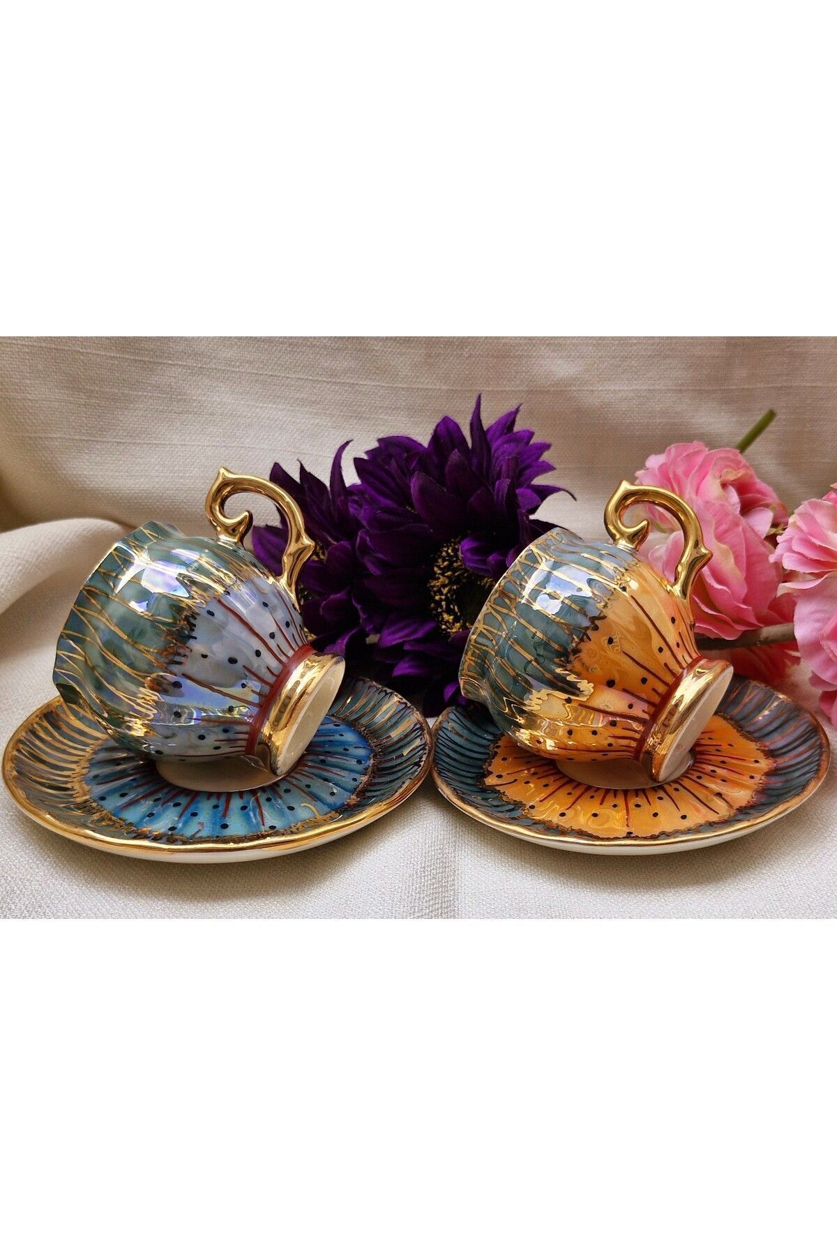 Rose Dubai Porselen El Boyama 2li Kahve Fincan Takımı