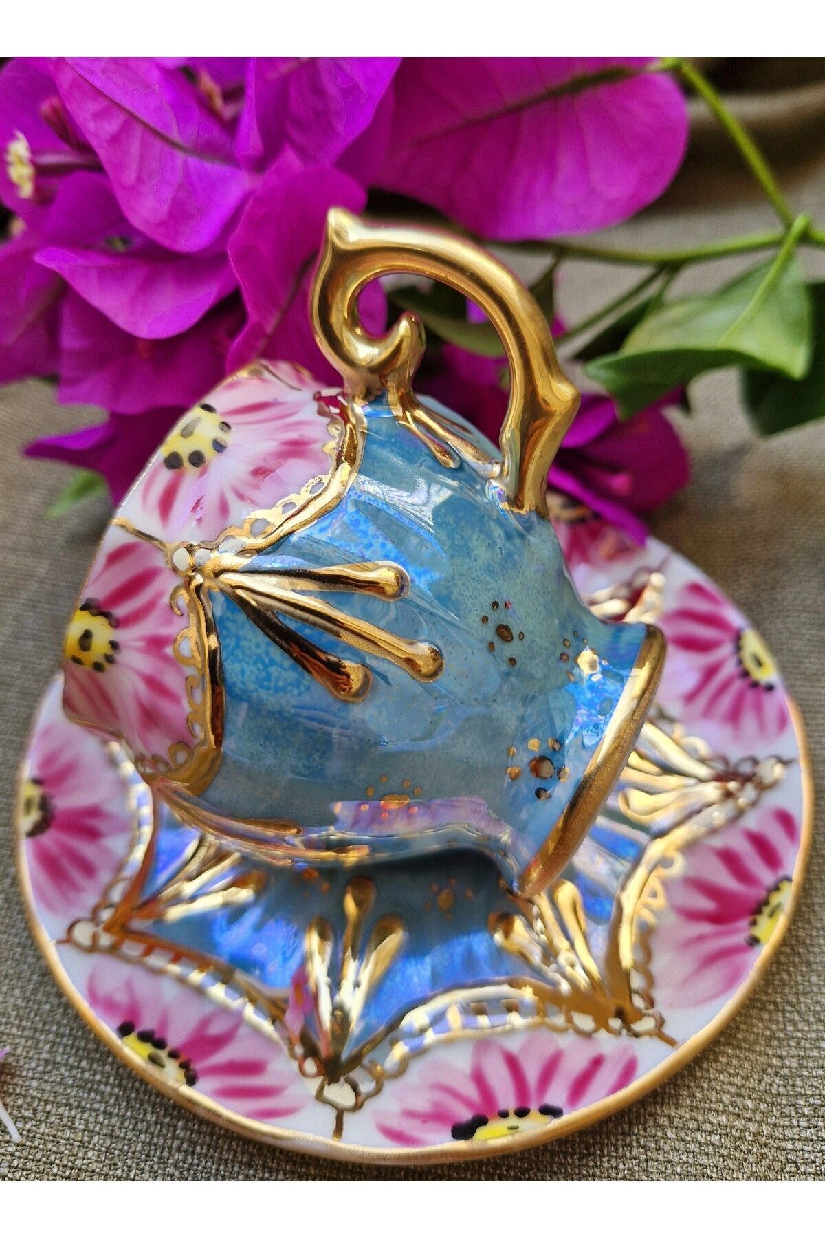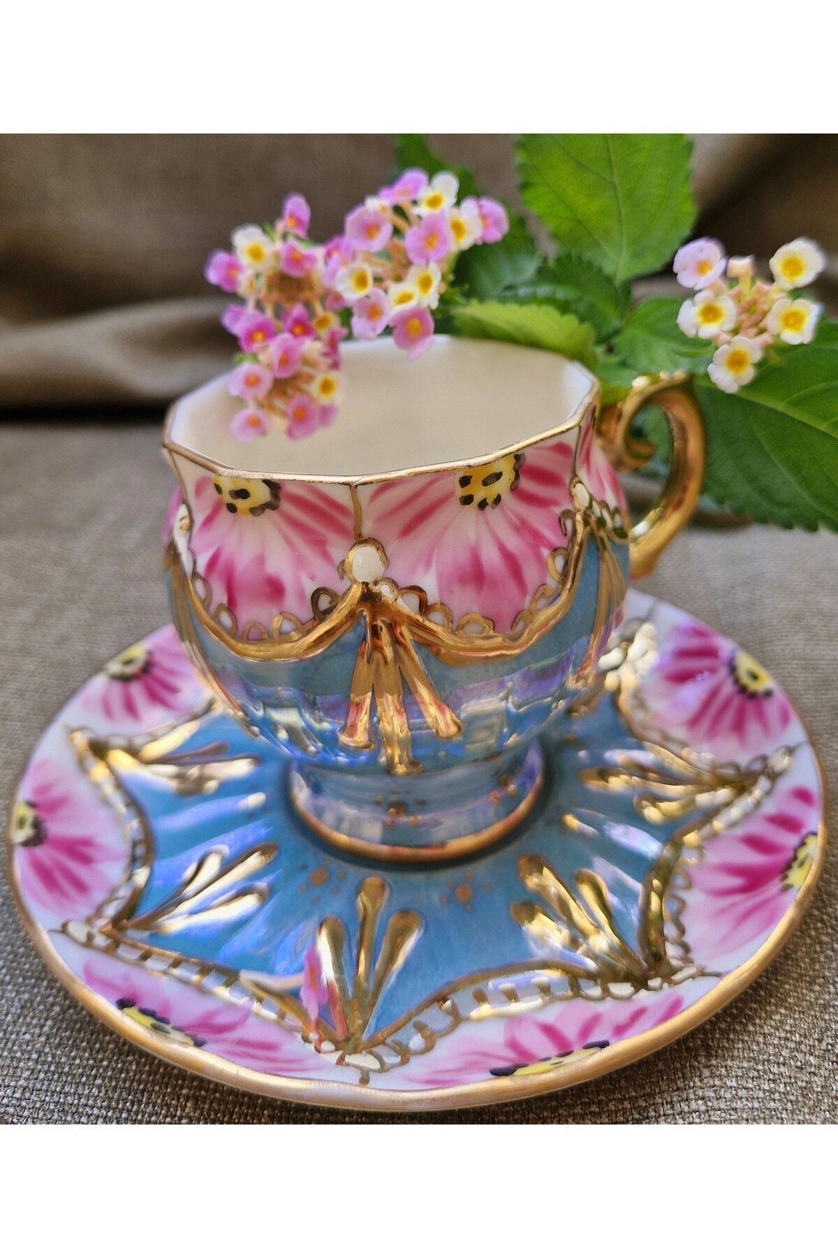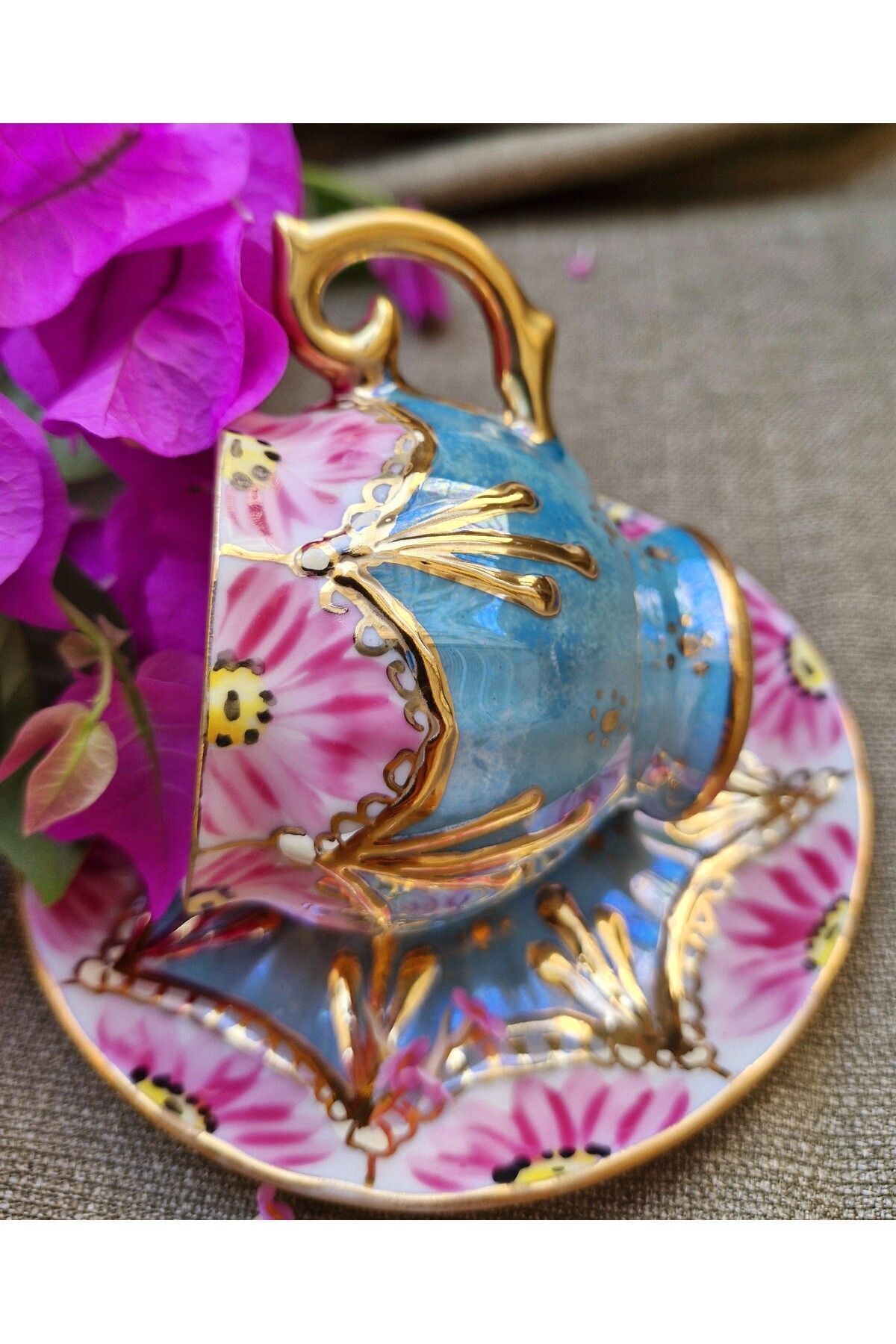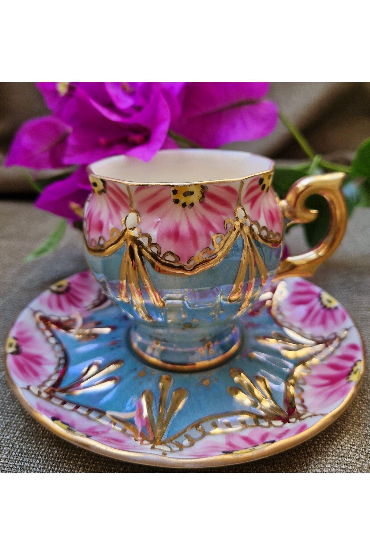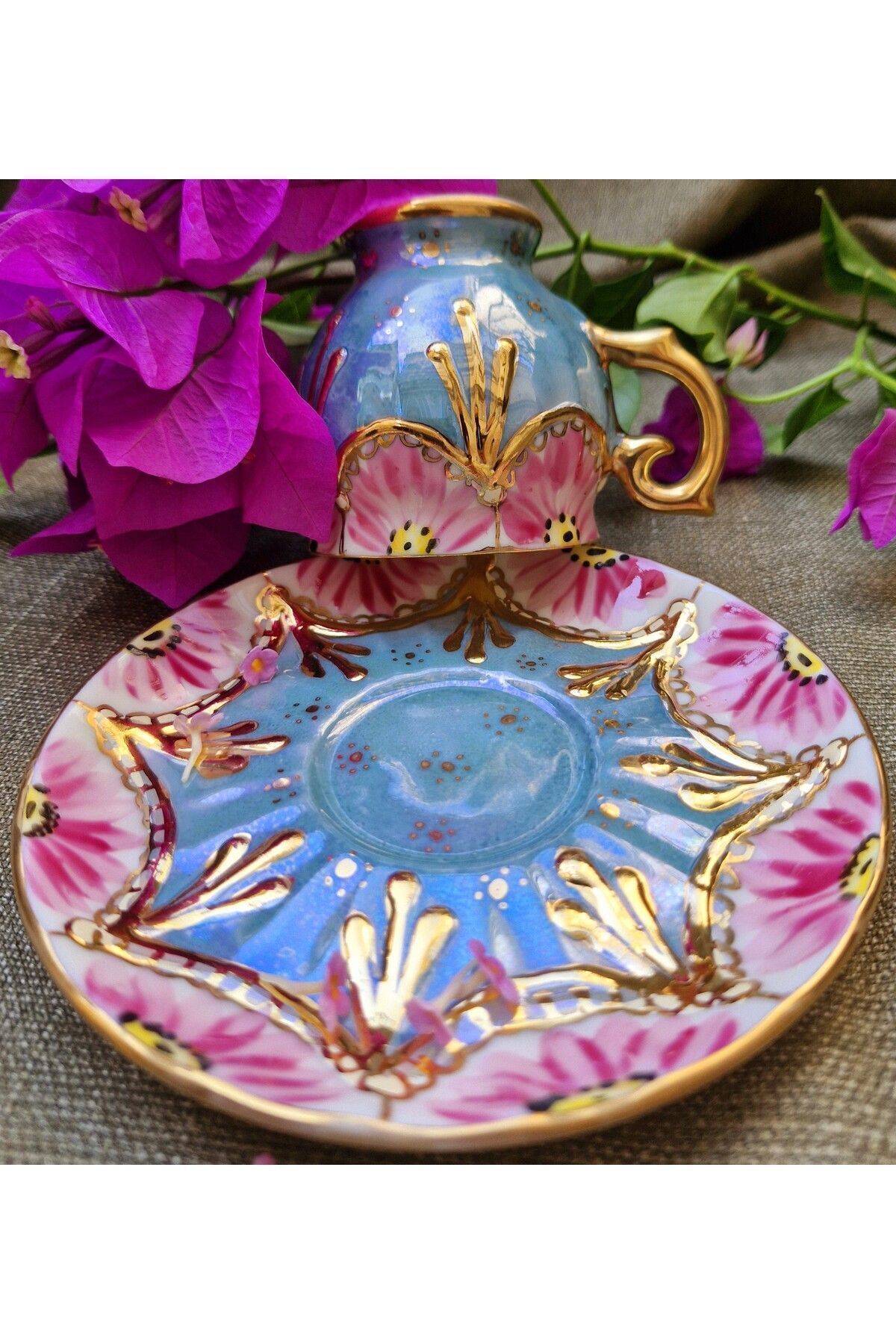 Saltanat Porselen El Boyama 2li Kahve Fincan Takımı
