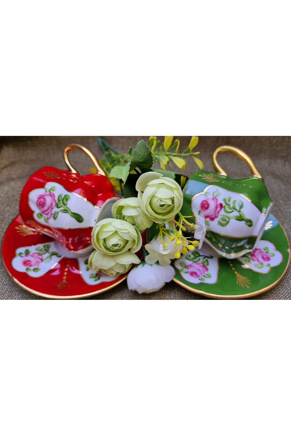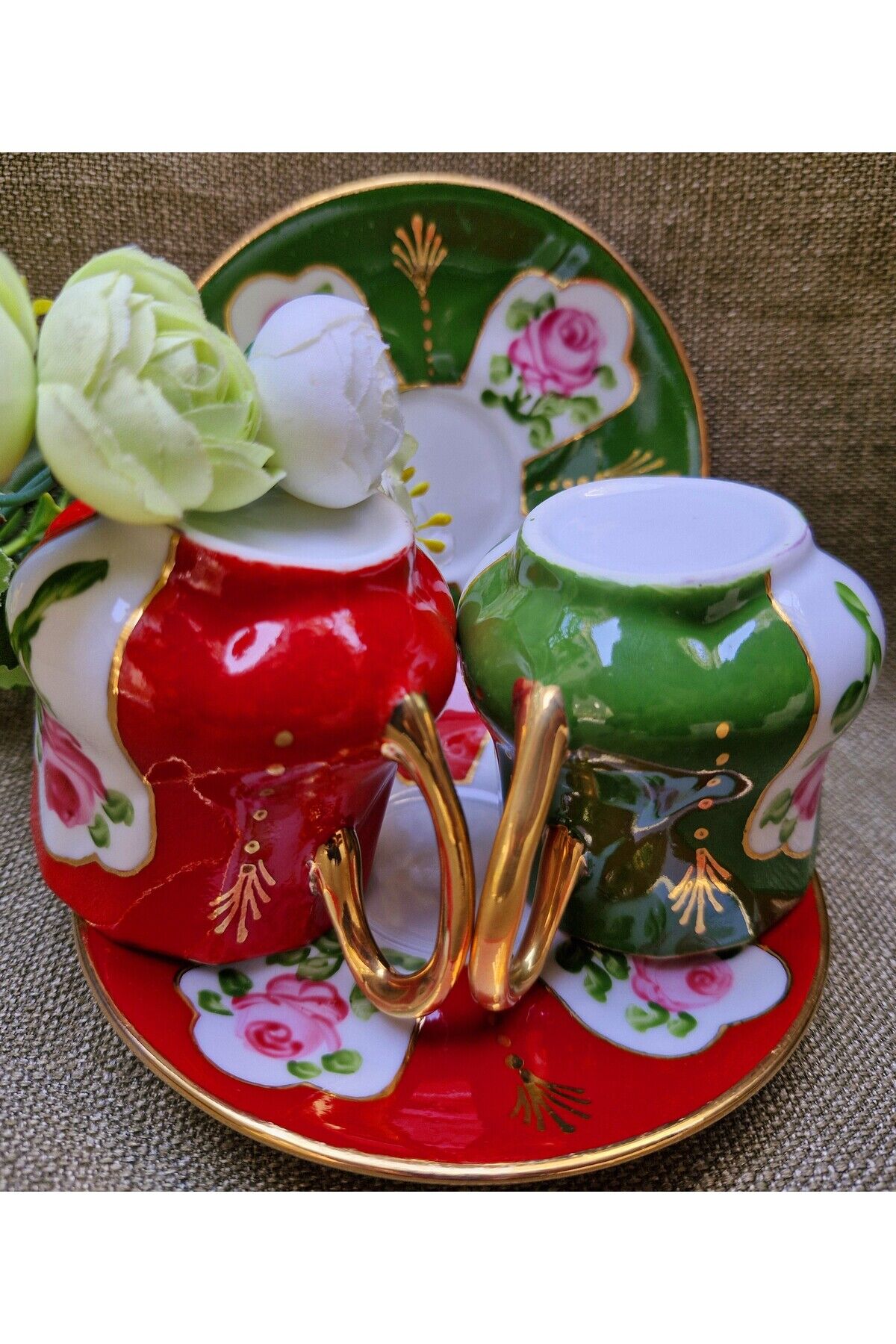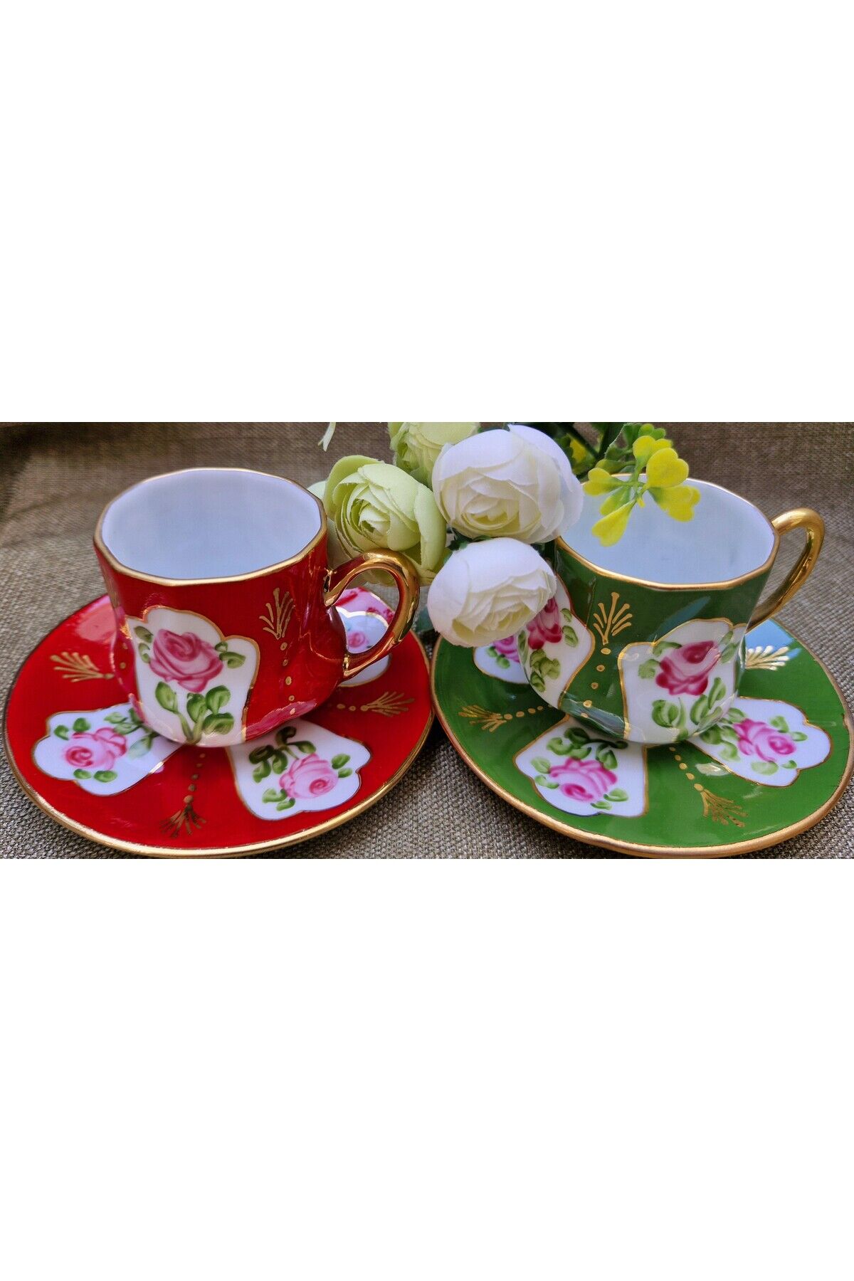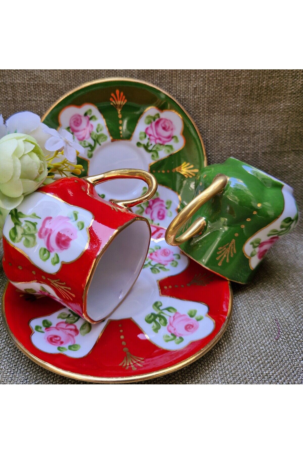 Saray Mini Porselen El Boyama 2li Kahve Fincan Takımı