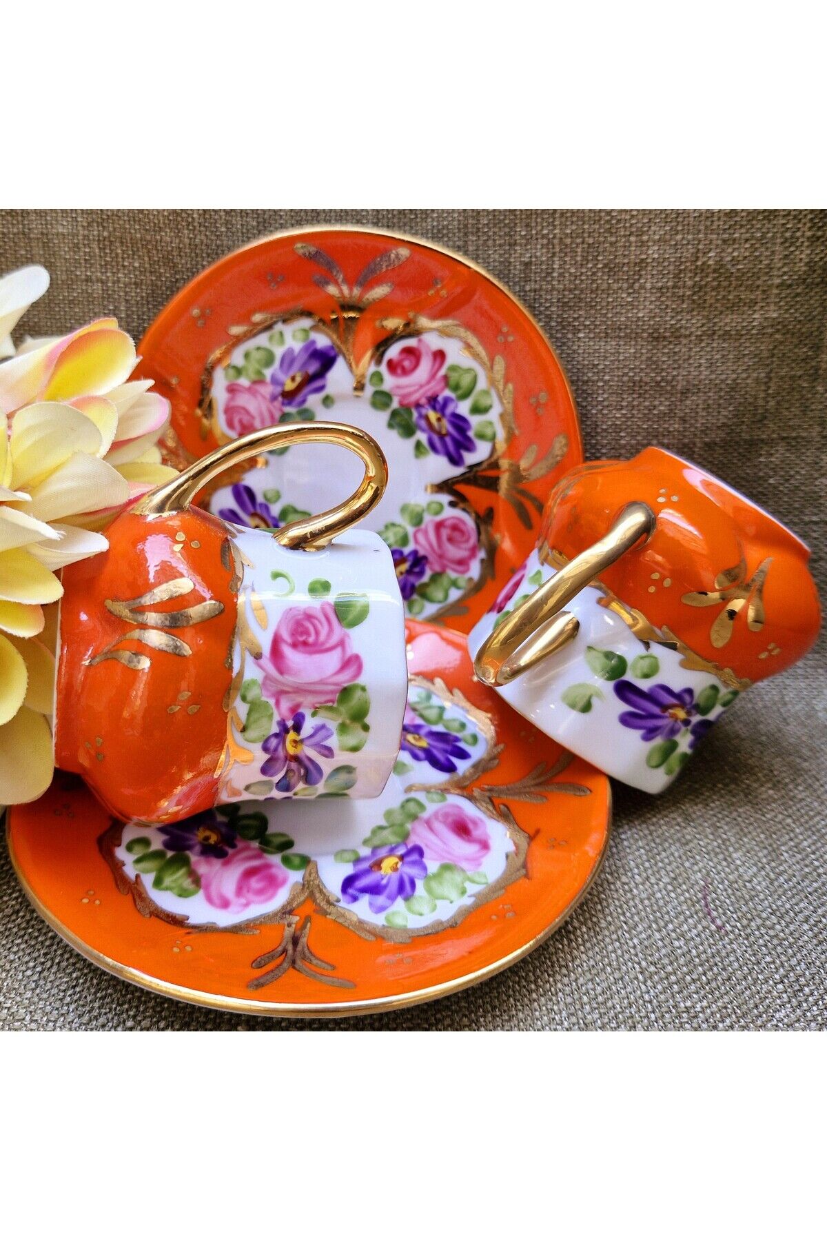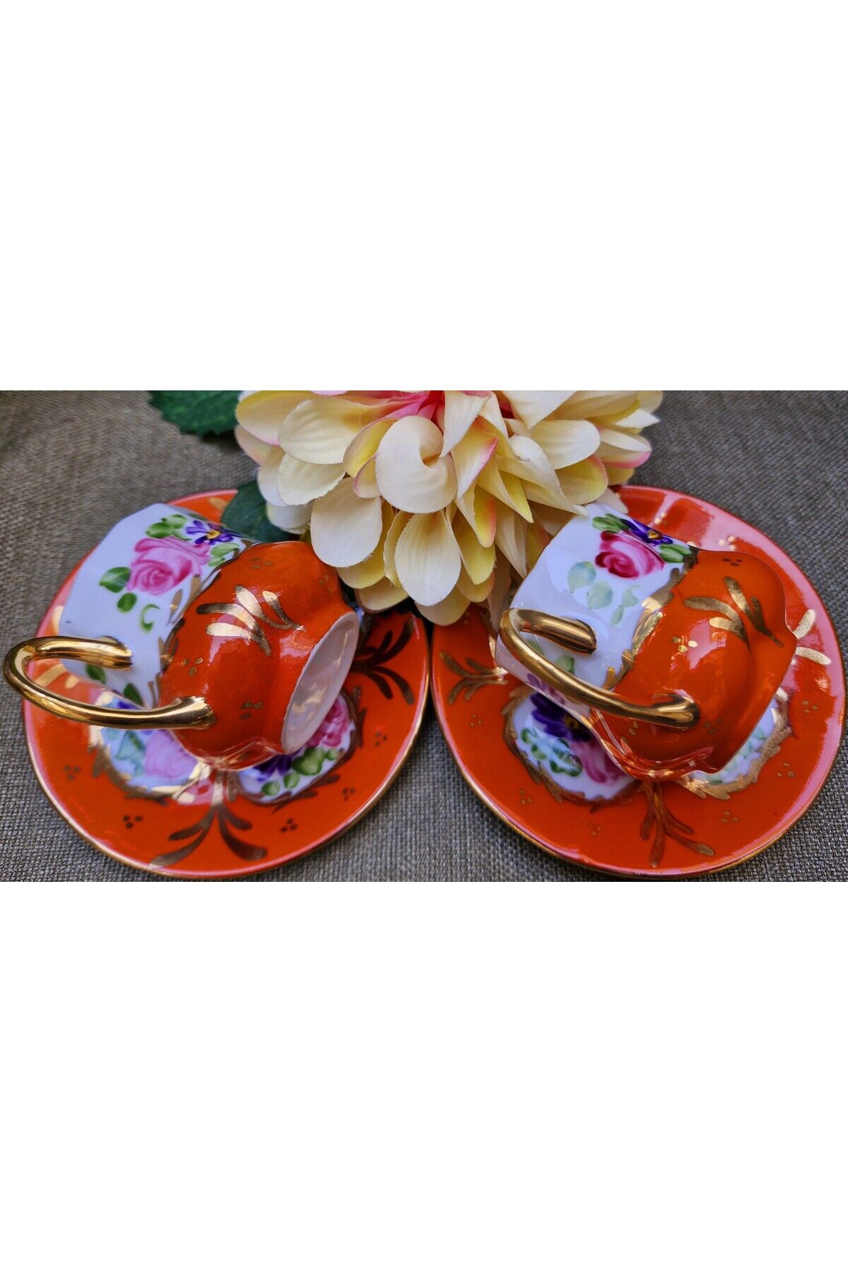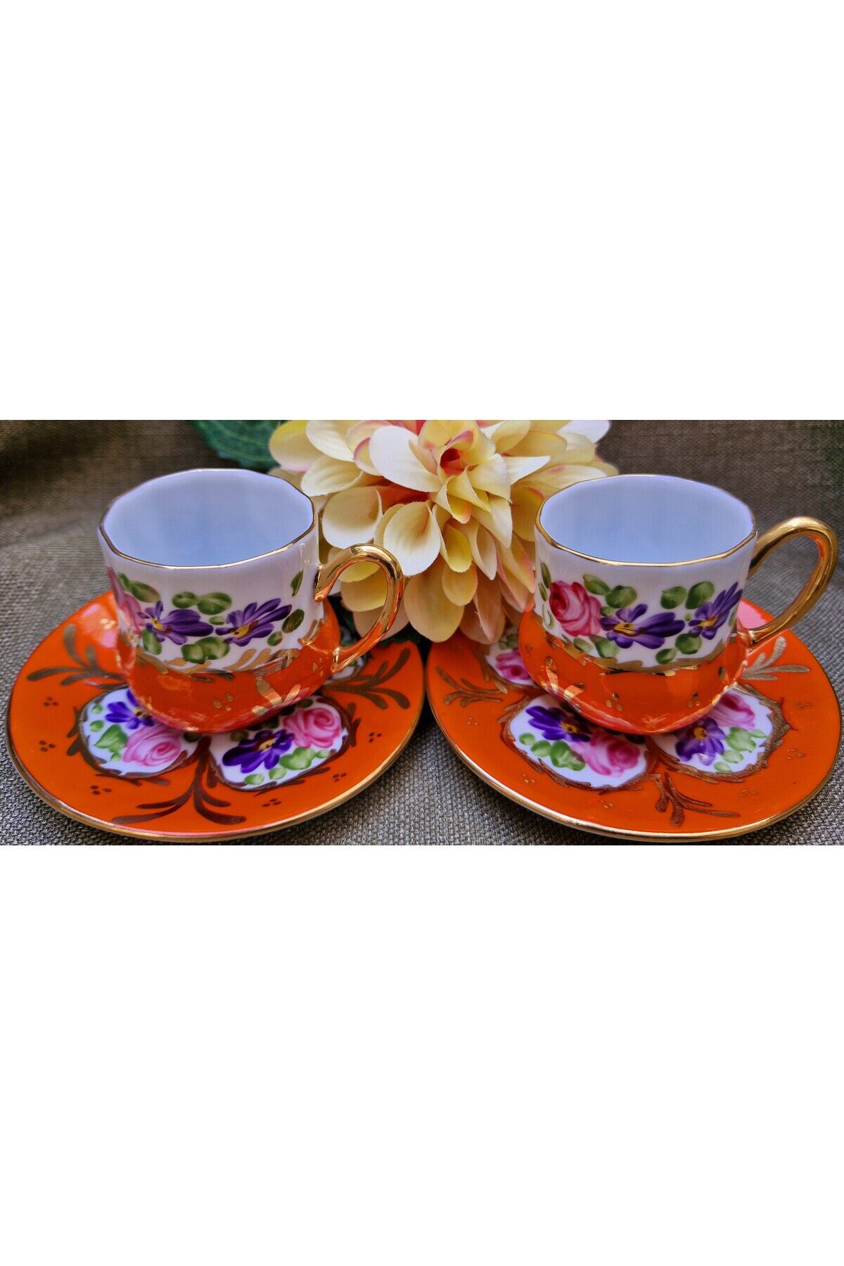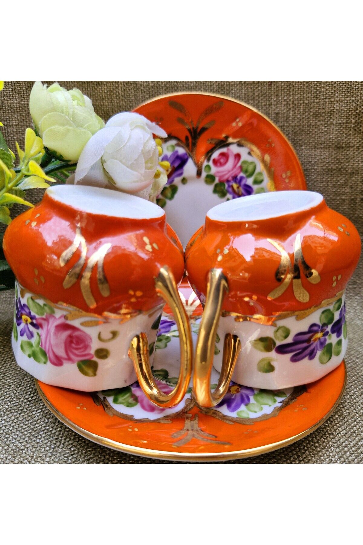 Saray Mini Porselen El Boyama 2li Kahve Fincan Takımı