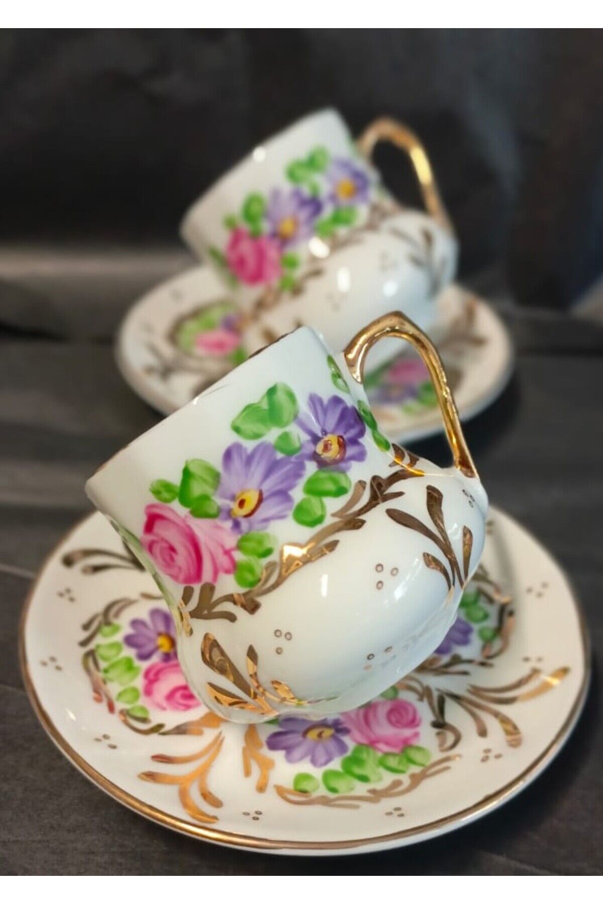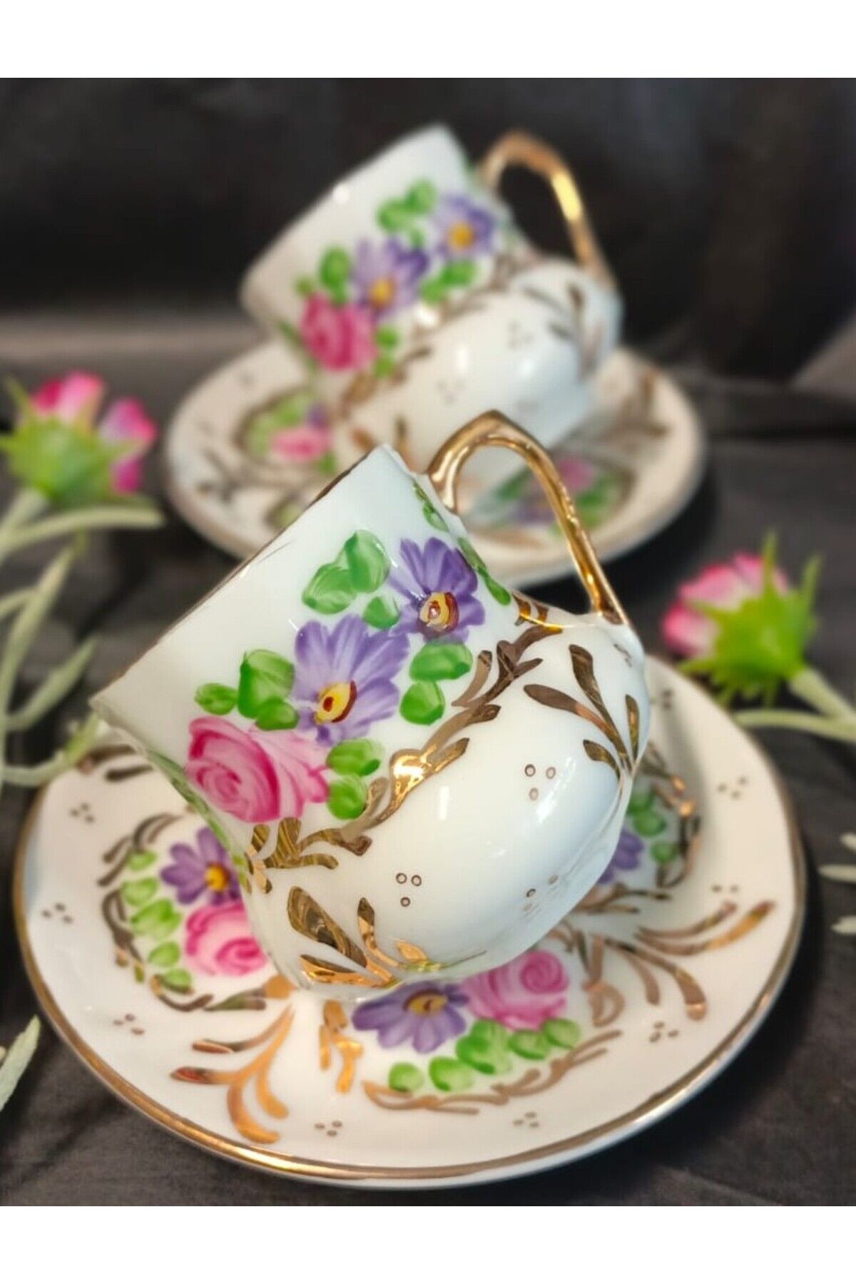 SARAY PORSELEN EL BOYAMA 2Lİ KAHVE FİNCAN TAKIMI