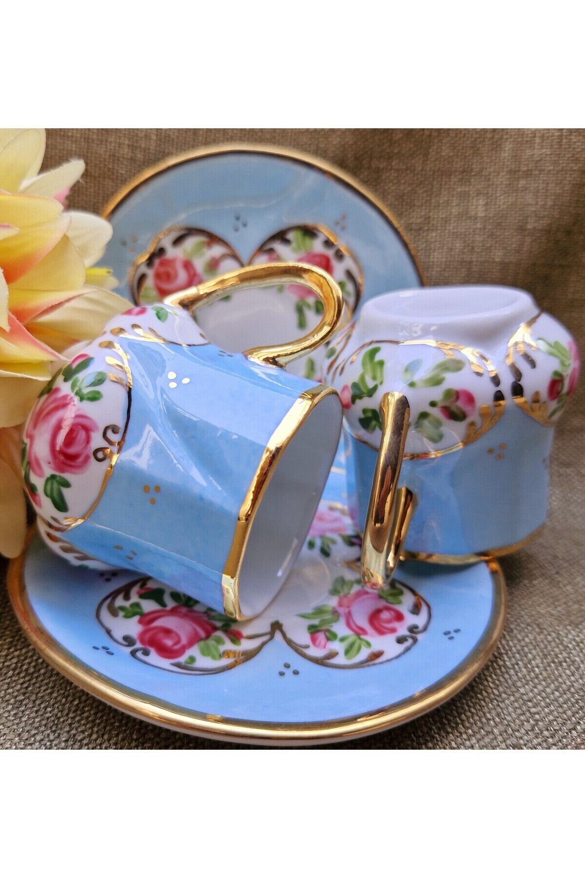 Saray Porselen El Boyama 2li Kahve Fincan Takımı
