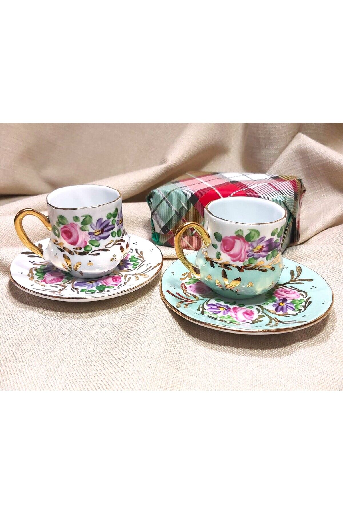 Saray Porselen El Boyama 2li Kahve Fincan Takımı