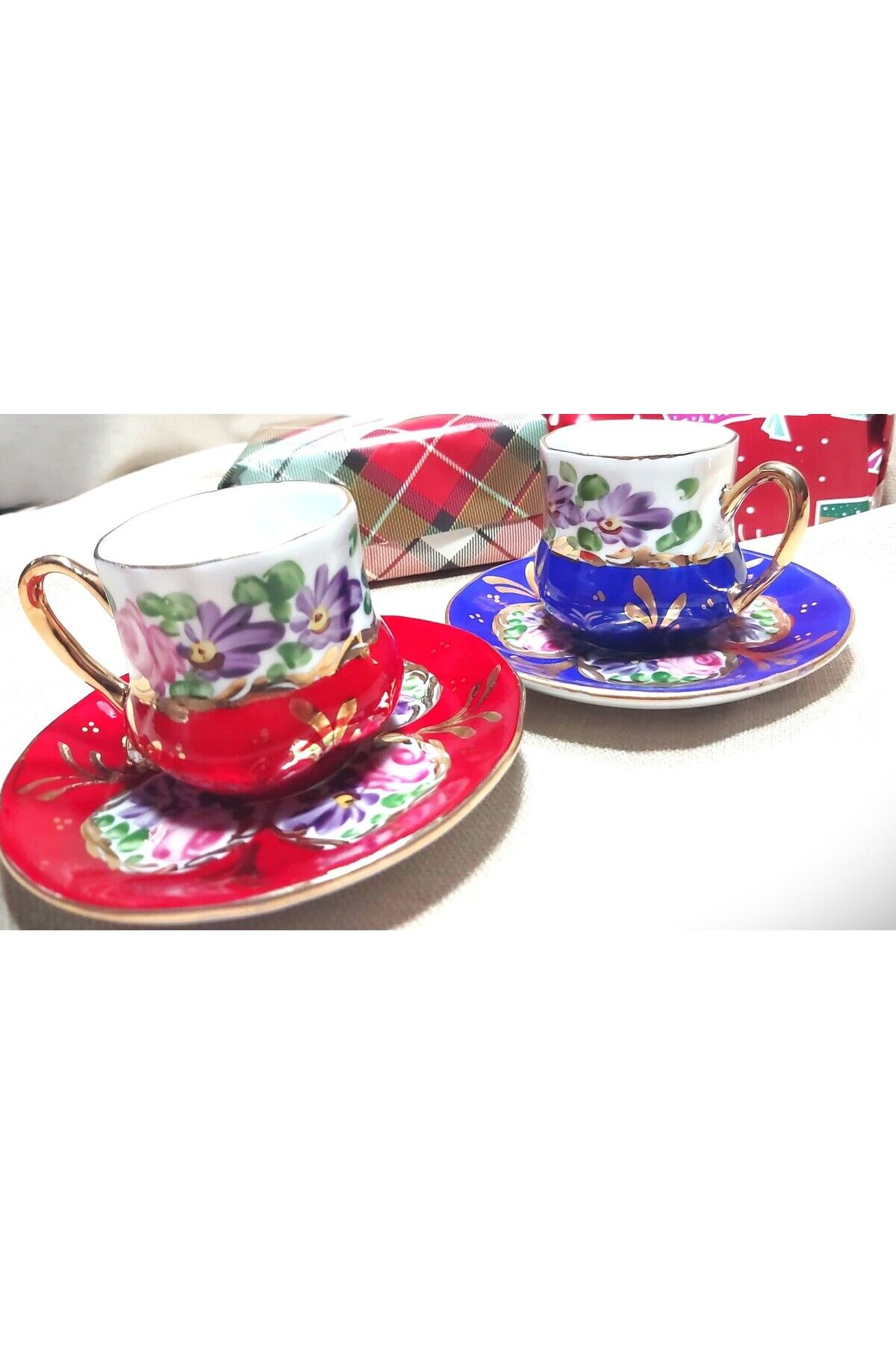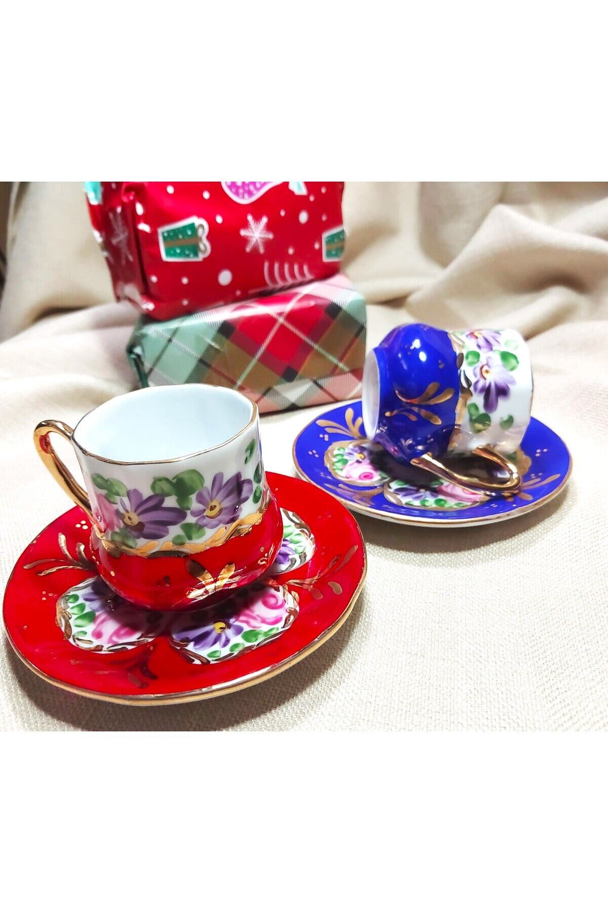 Saray Porselen El Boyama 2li Kahve Fincan Takımı