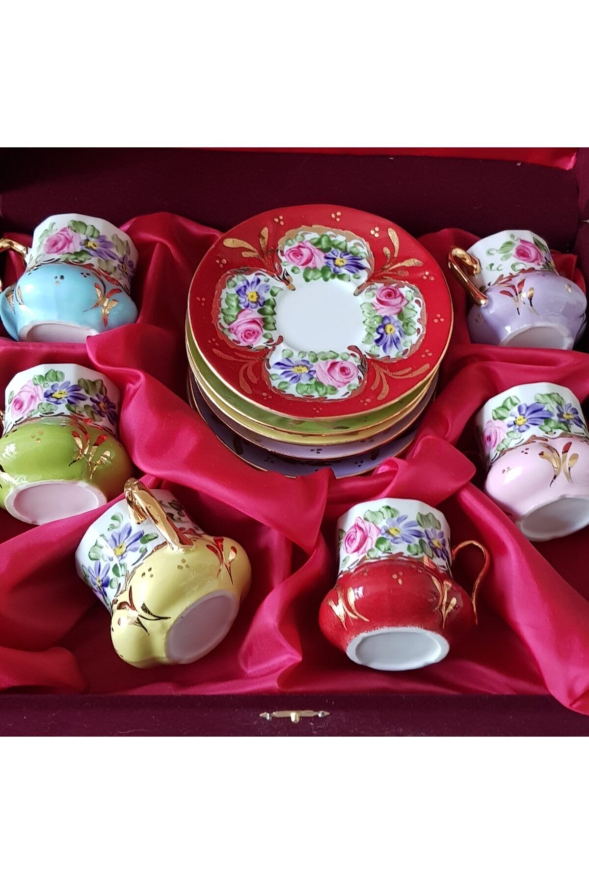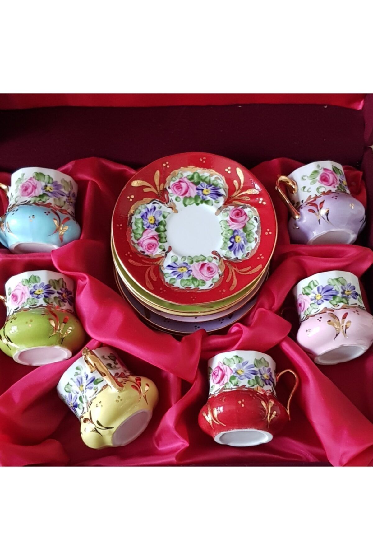 Saray Porselen El Boyama 6lı Fincan Takımı