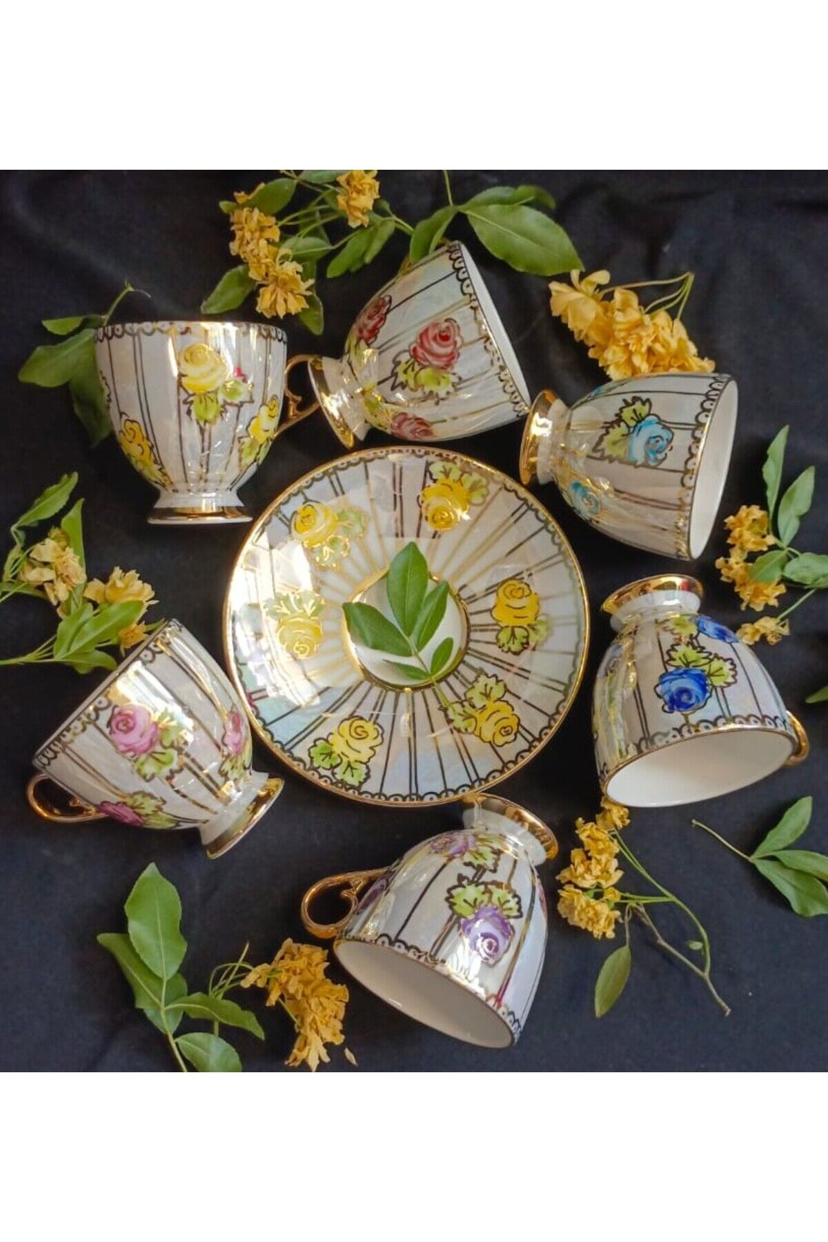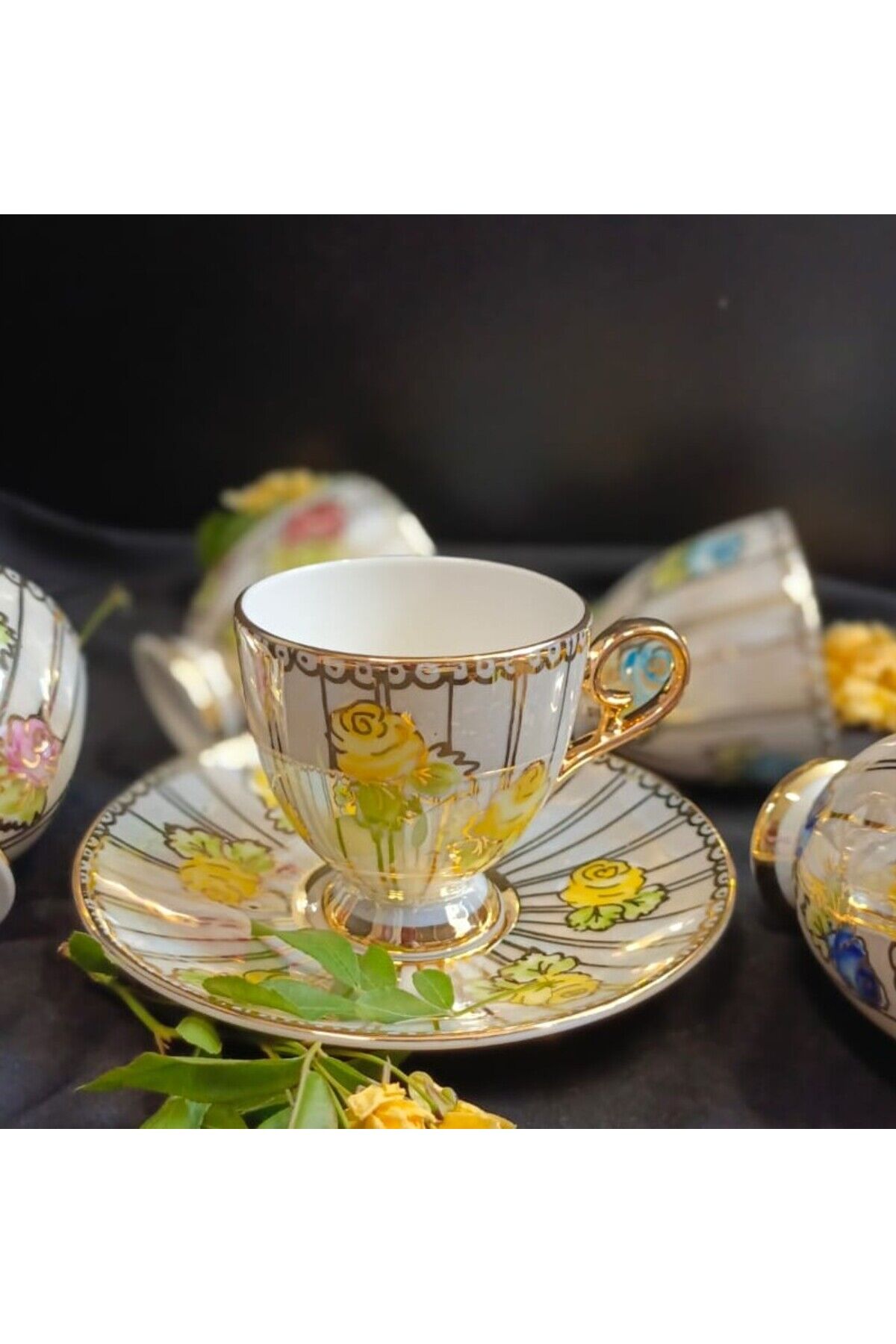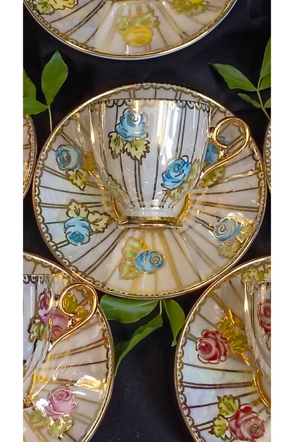 SARIÇİÇEK PORSELEN EL DEKOR BOYAMA FİNCAN TAKIMI