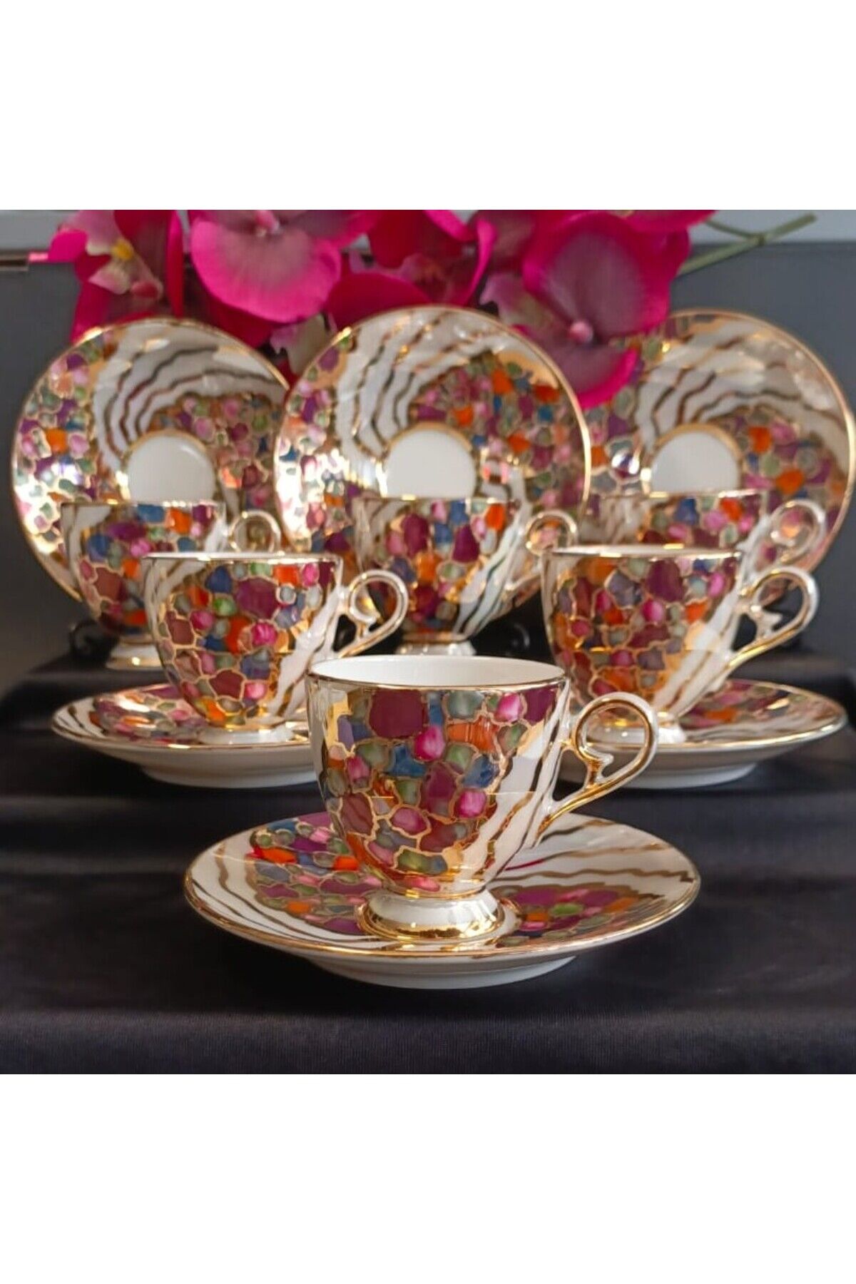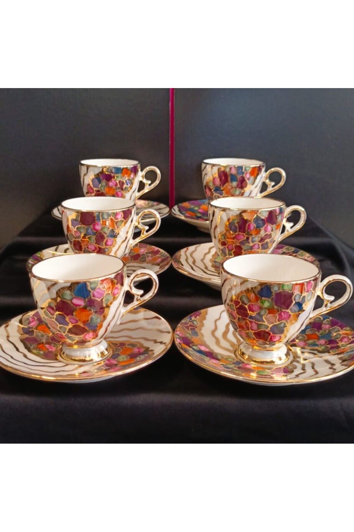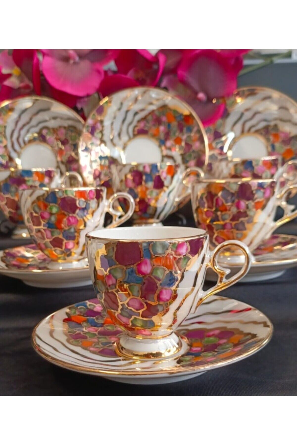 ŞEHZADE Turmalin PORSELEN EL BOYAMA KAHVE FİNCAN TAKIMI