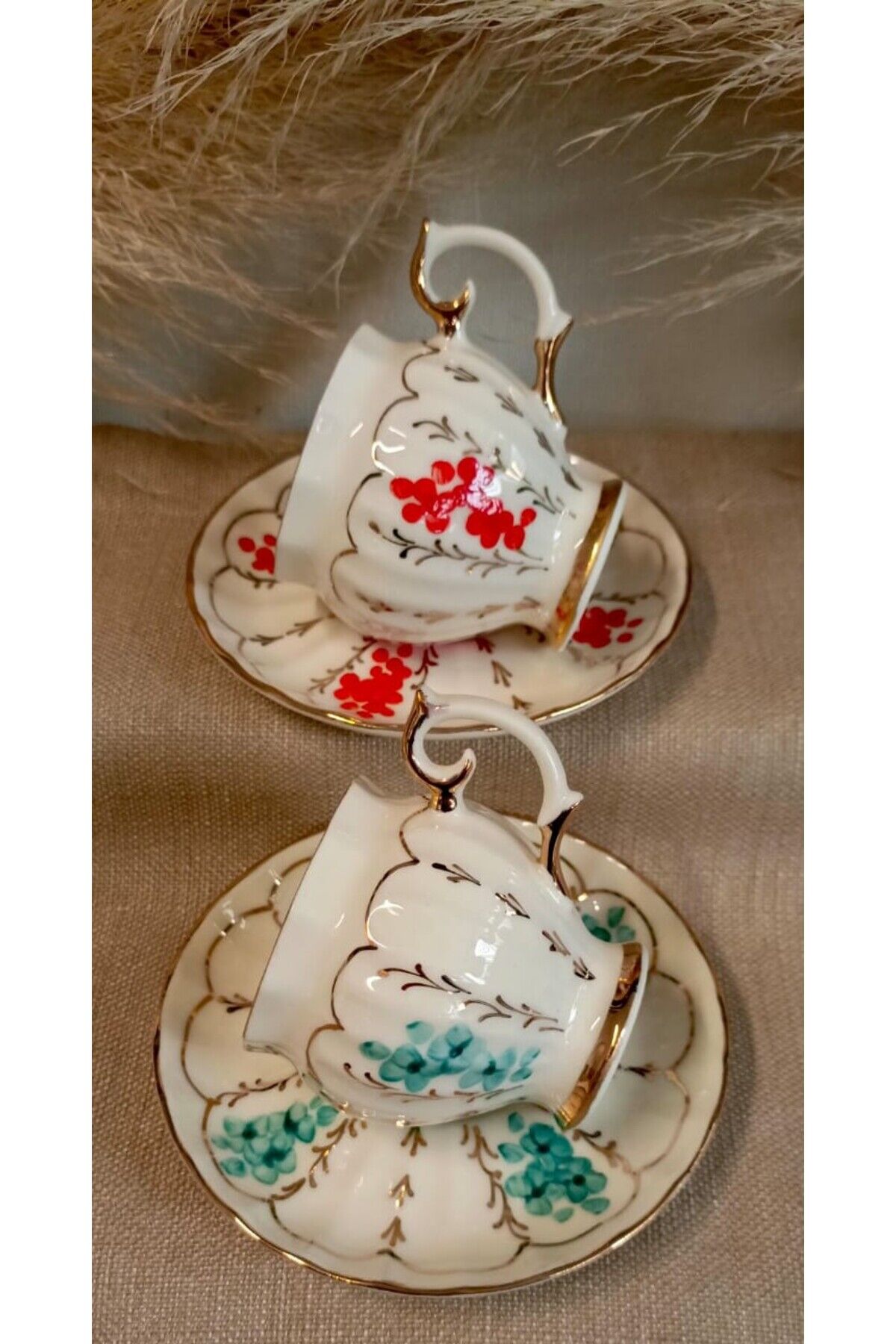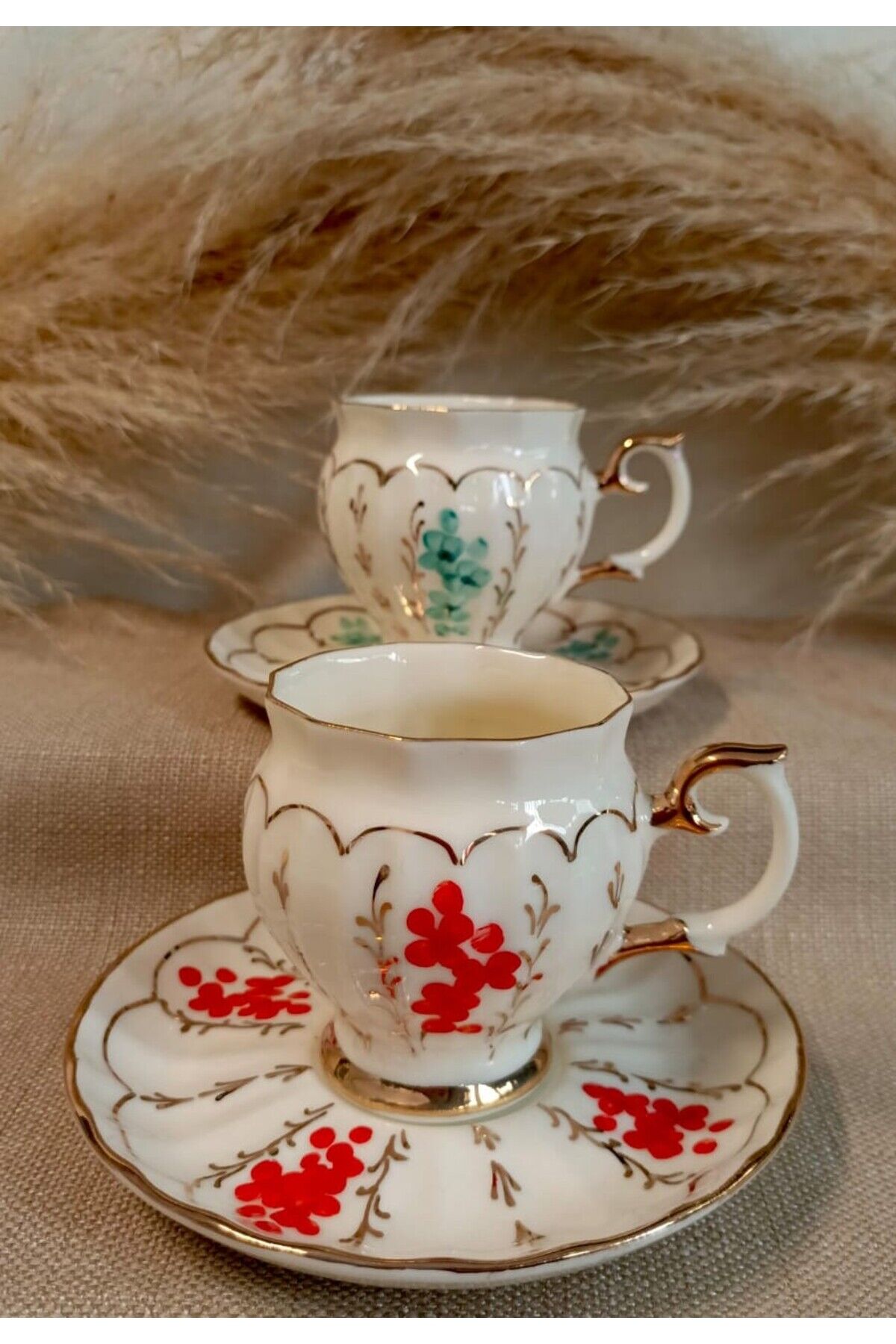 SERENA PORSELEN EL BOYAMA 2Lİ KAHVE FİNCANI