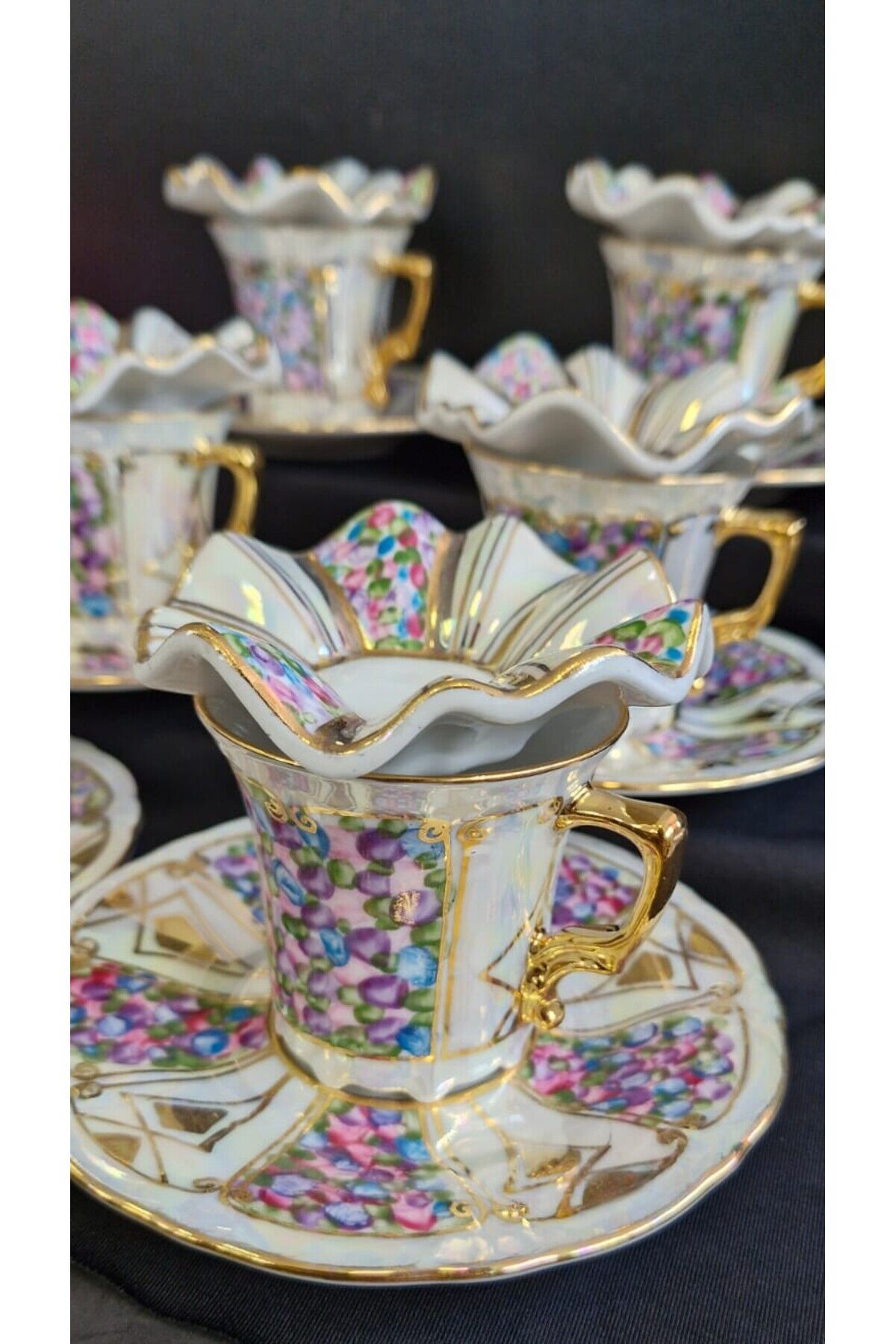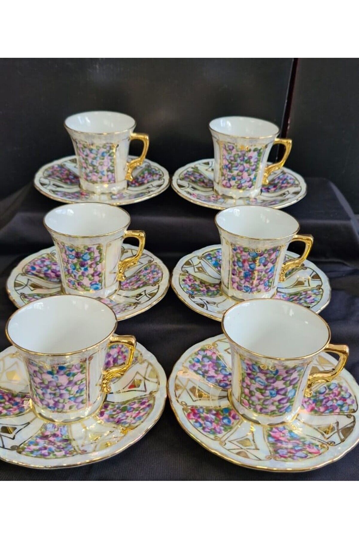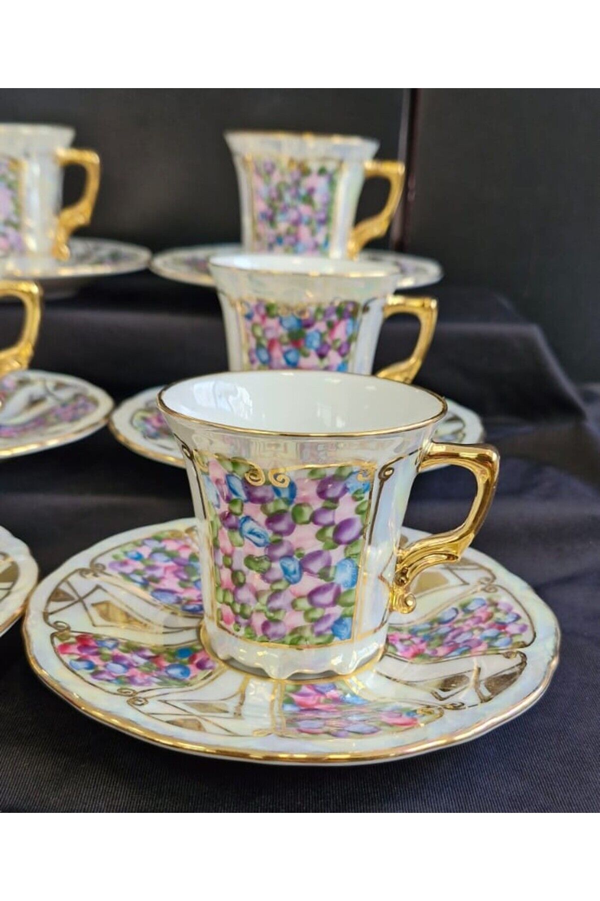 SİLVER GOLD PORSELEN EL DEKOR BOYAMA FİNCAN TAKIMI VE LOKUMLUK
