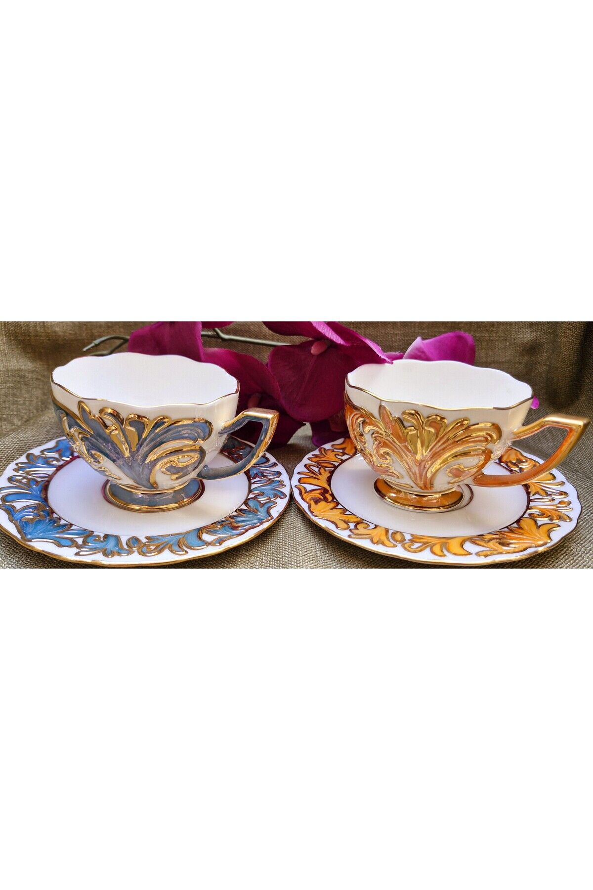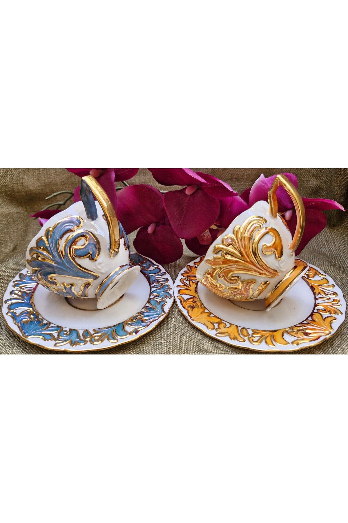 Süliman Porselen El Boyama 2li Çay Fincan Takımı