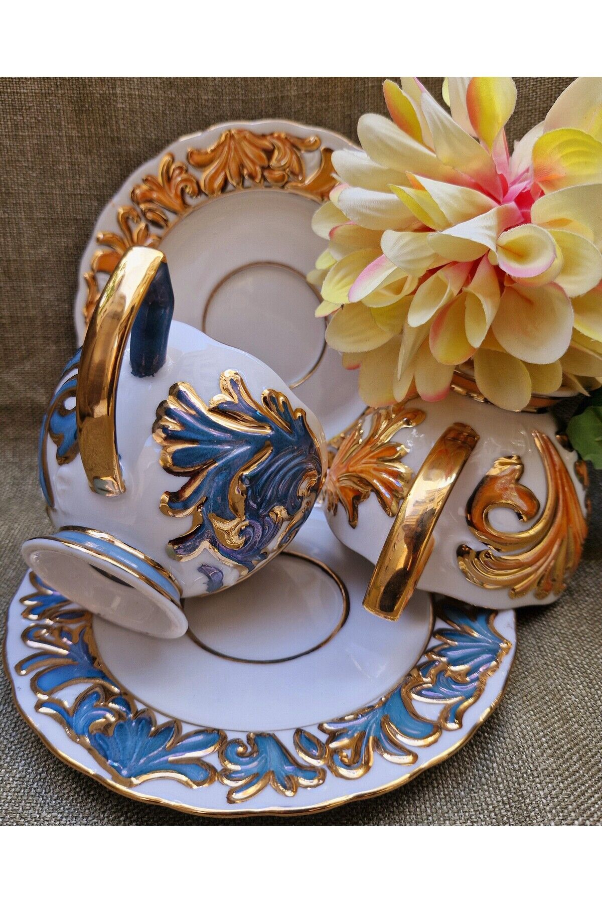 İki kişilik özel tasarımıyla, sevdiklerinizle keyifli çay saatleri için ideal bir seçim; Yüksek kaliteli porselen malzemesi sayesinde uzun ömürlü kullanım ve şık bir görünüm sunar; İki kişilik çay fincanı takımı, samimi sohbetler ve keyifli anlar için mükemmel bir aksesuardır;