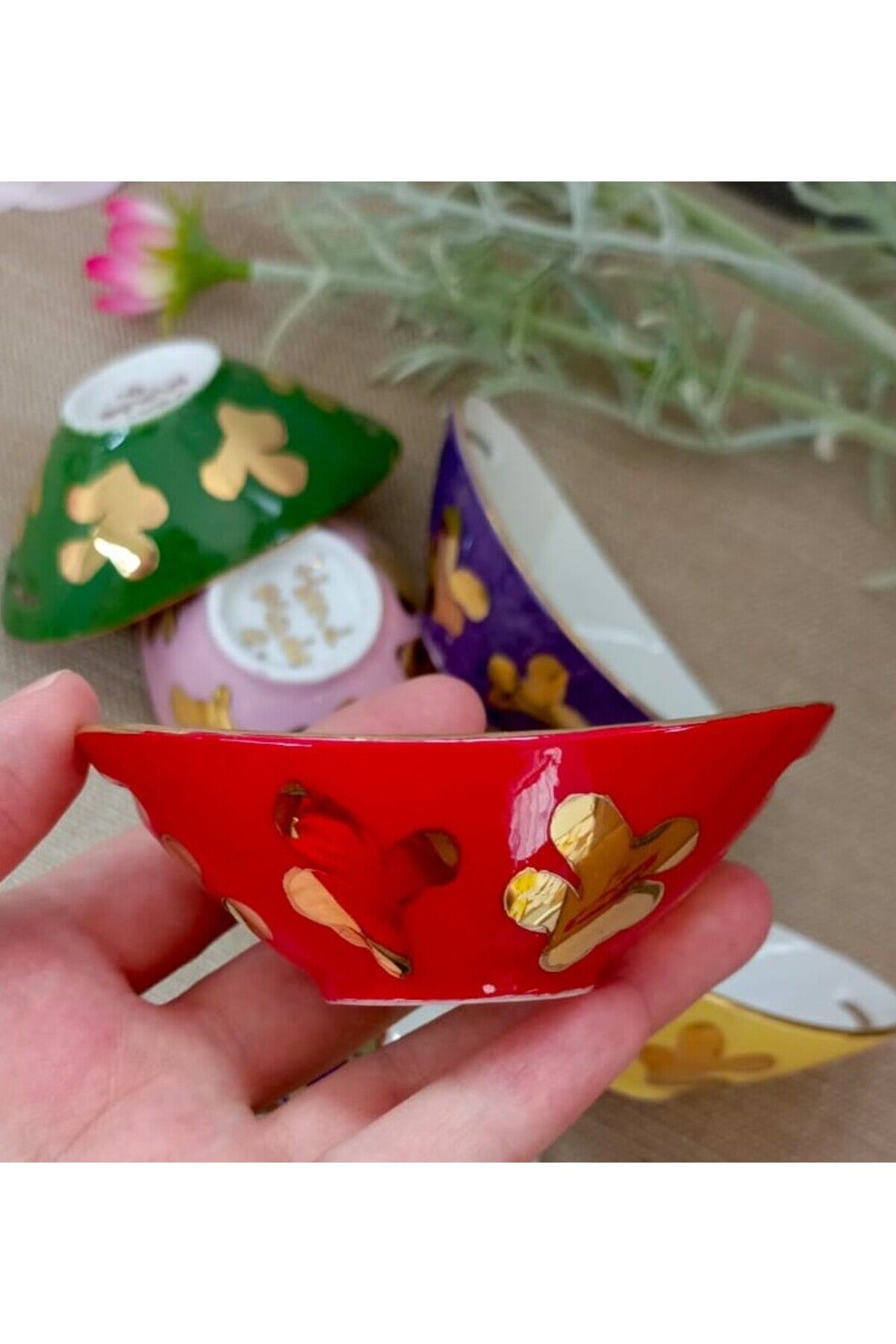 ÜRÜNÜMÜZ KAHVE SUNUMLARINIZA ZARAFET VE SADELİĞİNŞIKLIĞINI SİZE SUNACAK ŞEKİLDE TASARLANMIŞTIR.; SEVDİKLERİNİZE KEYİFLİ VE ŞIK SUNUMLAR HAZIRLAYIPKENDİNİZİ VE SEVDİKLERİNİZİ MUTLU EDİN.; ÜRÜNLERİMİZ SANATÇILARIMIZ TARAFINDAN TAMAMEN ELDEBOYANMIŞ OLUP 24AYAR ALTINLA ZENGİNLEŞTİRİLMİŞTİR.; BULAŞIK MAKİNASINA GİRER ANCAK DAHA UZUN ÖMÜRLÜ OLMASIAÇISINDAN TAVSİYE ETMİYORUZ.; KİMYASALLARDAN UZAK TUTUN (ÇAMAŞIRSUYU, KİREÇ SÖKÜCÜV.; S.; ) GELECEĞİN ANTİKASI