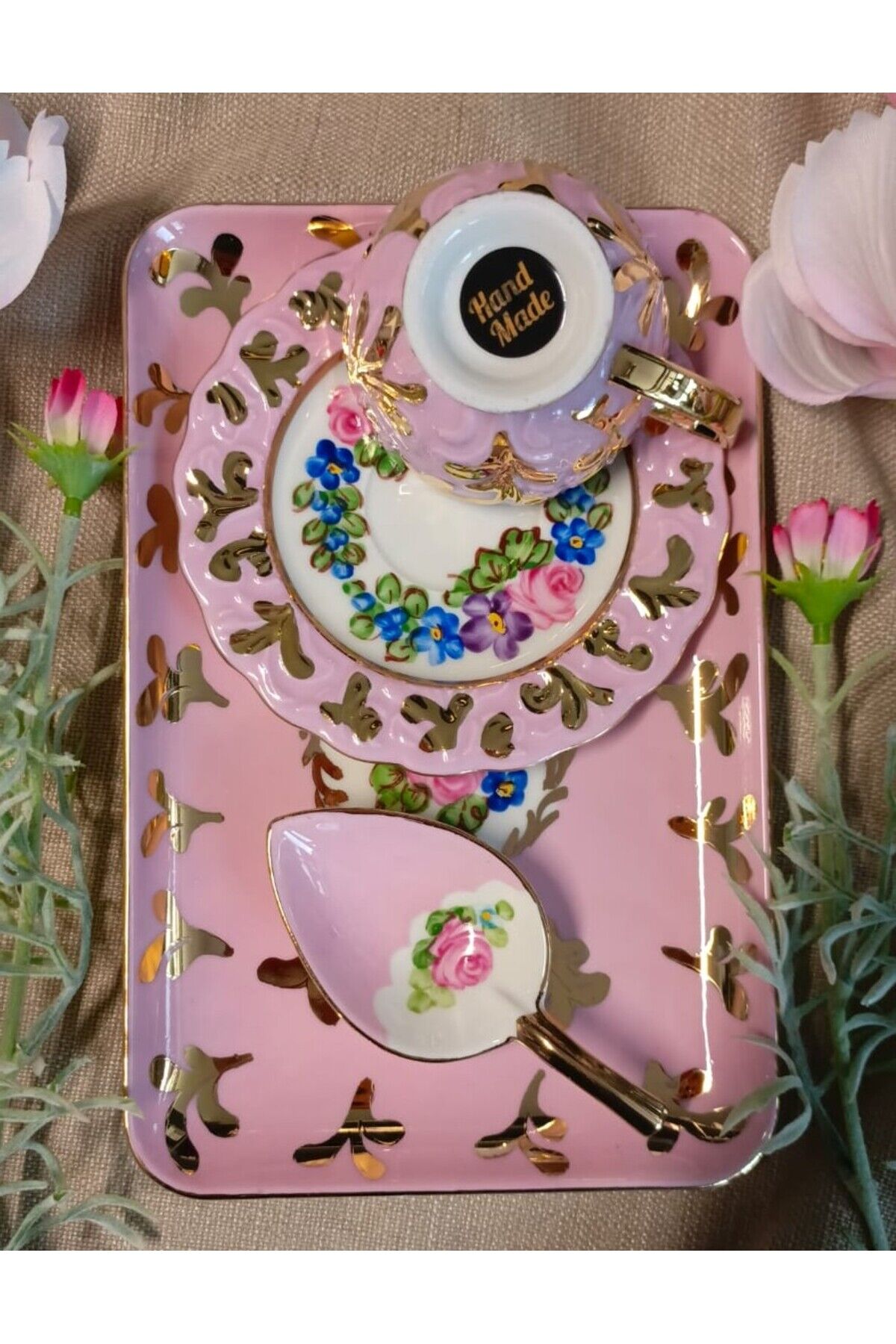 SÜLİMAN PORSELEN EL BOYAMA TEK KİŞİLİK KAHVE FİNCAN SETİ