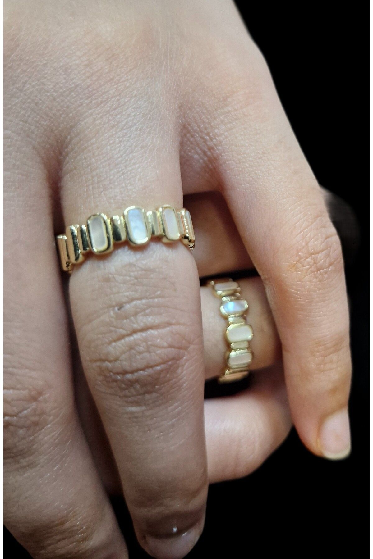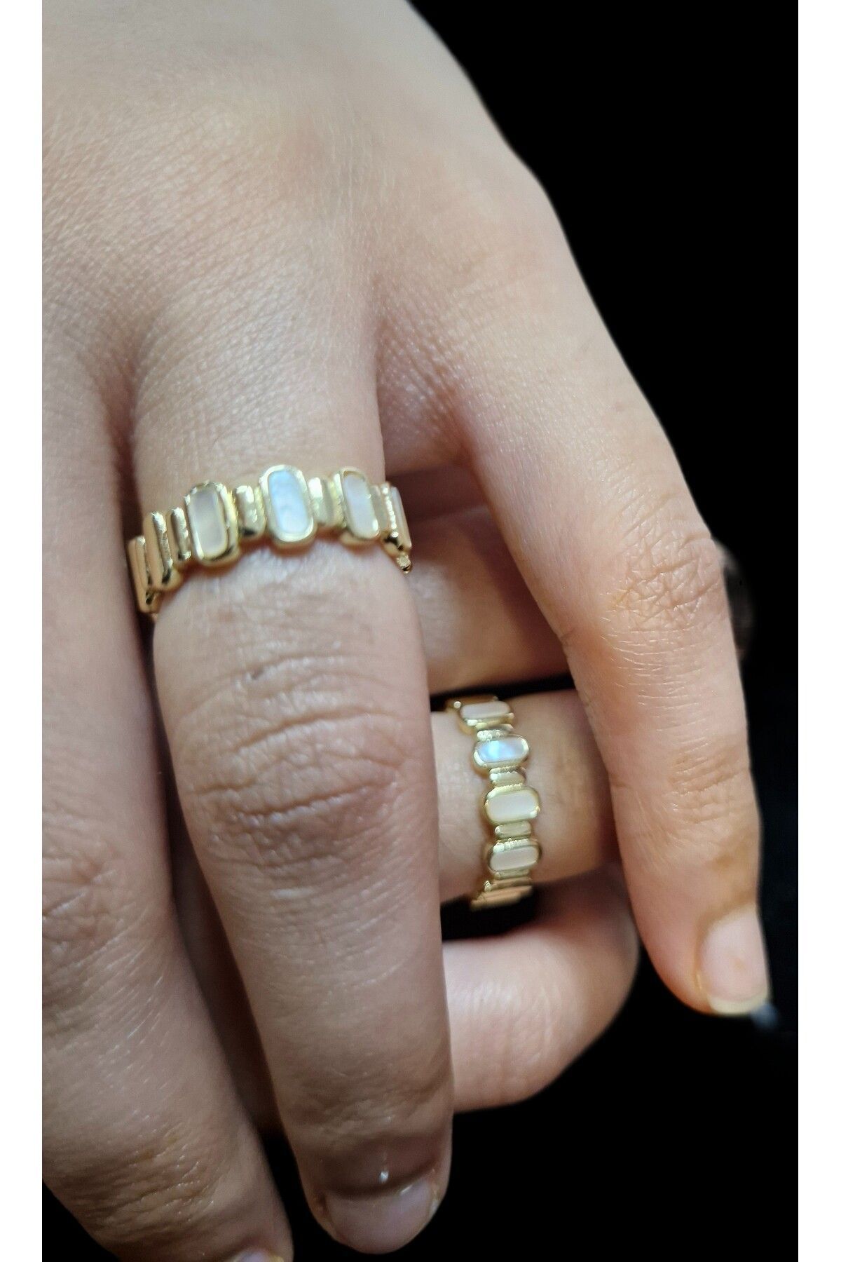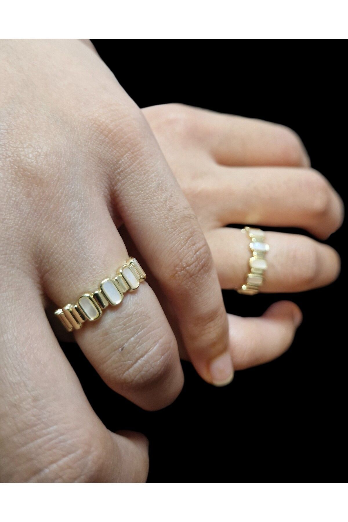 Pirinç üzerine 14 ayar altın kaplama ile zenginleştirilmiş, şık ve dayanıklı bir yapı sunar; Sedefli mine detayı, yüzüğe zarif bir parlaklık ve estetik bir görünüm kazandırır; Ayarlanabilir yapısı sayesinde farklı parmak ölçülerine kolayca uyum sağlar ve konforlu bir kullanım sunar; Hem günlük kullanım hem de özel günler için ideal bir aksesuar seçeneği olarak dikkat çeker;