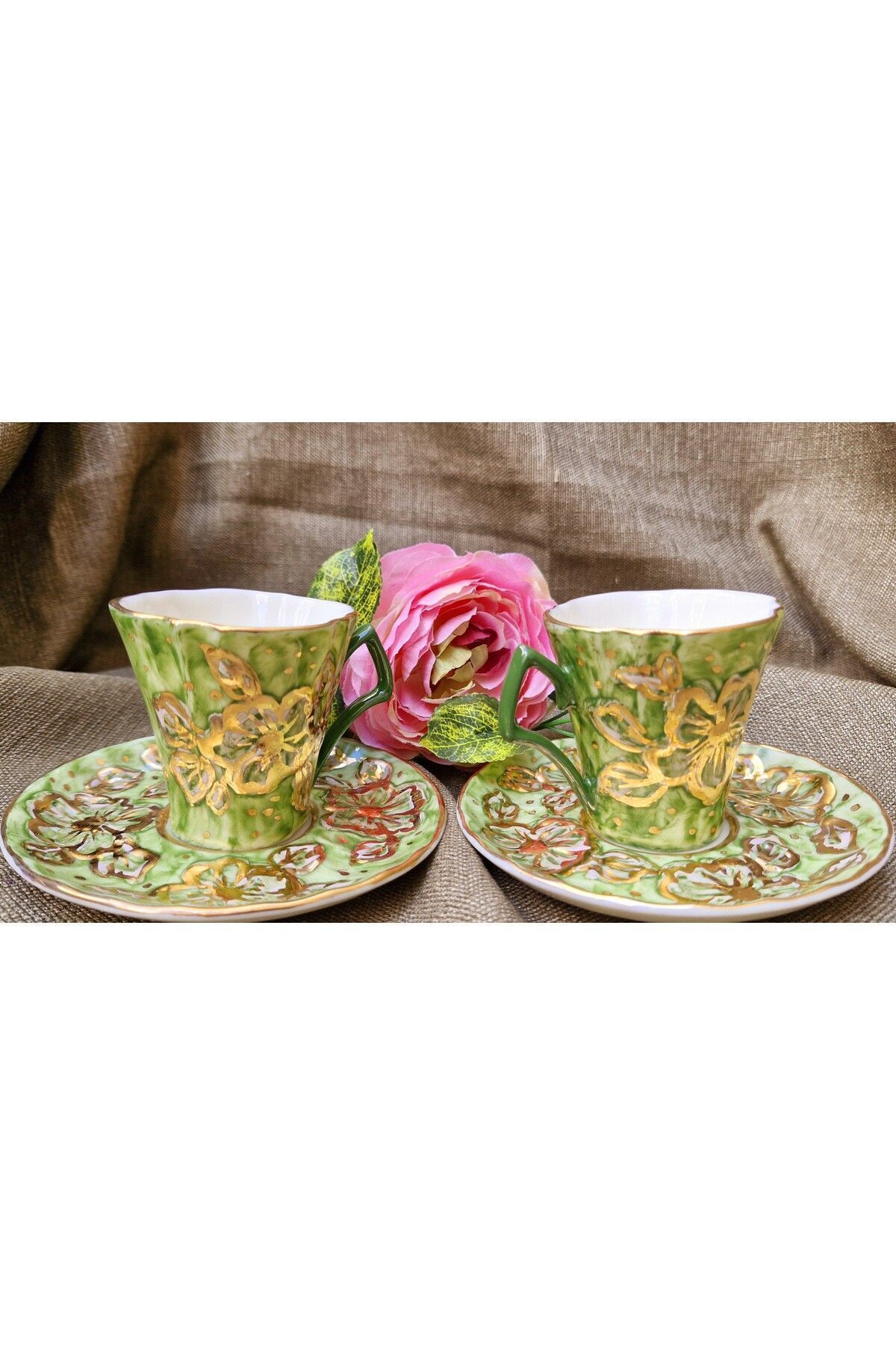 Yeşilim Porselen El Boyama 2li Fincan Takımı