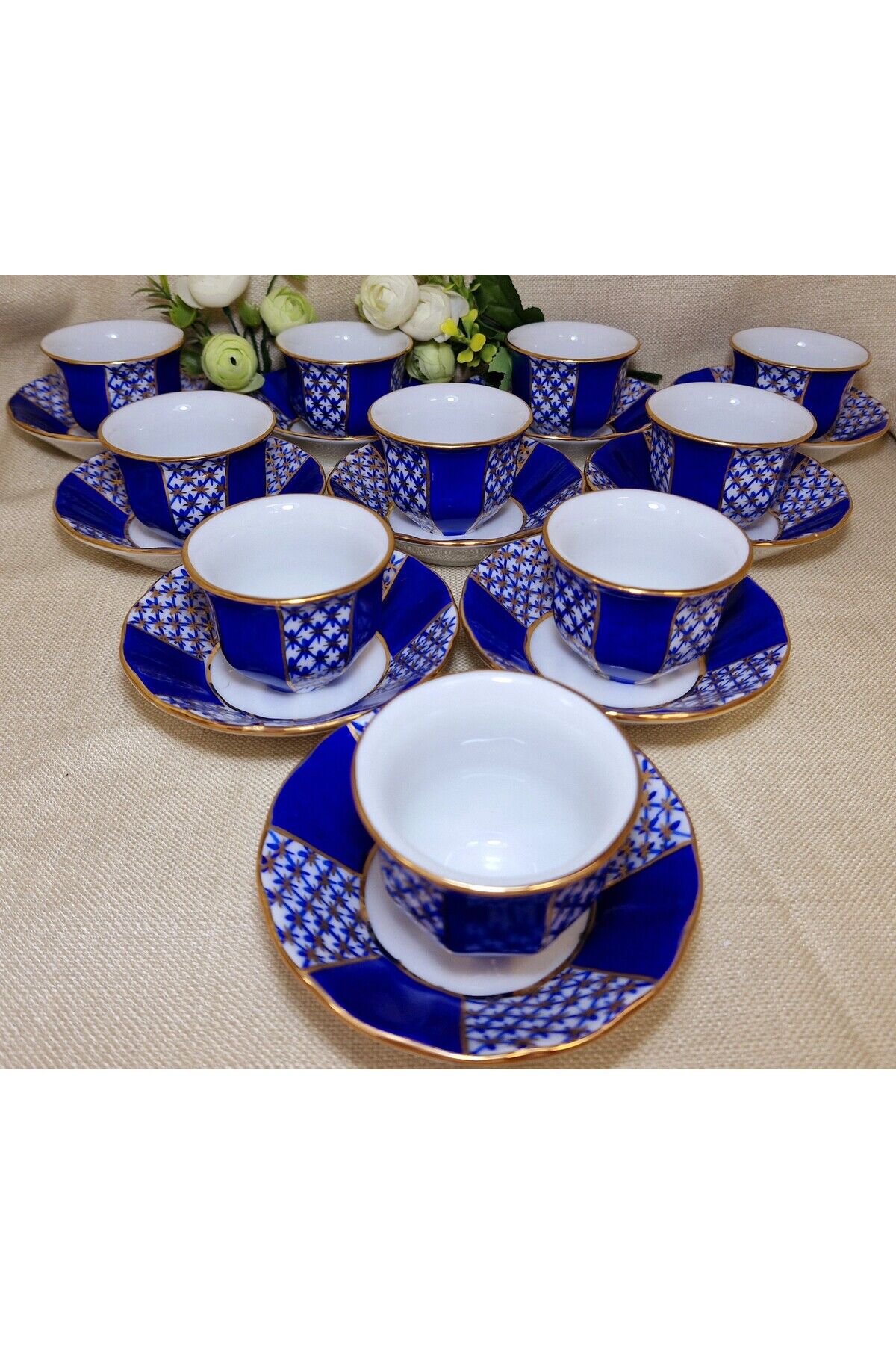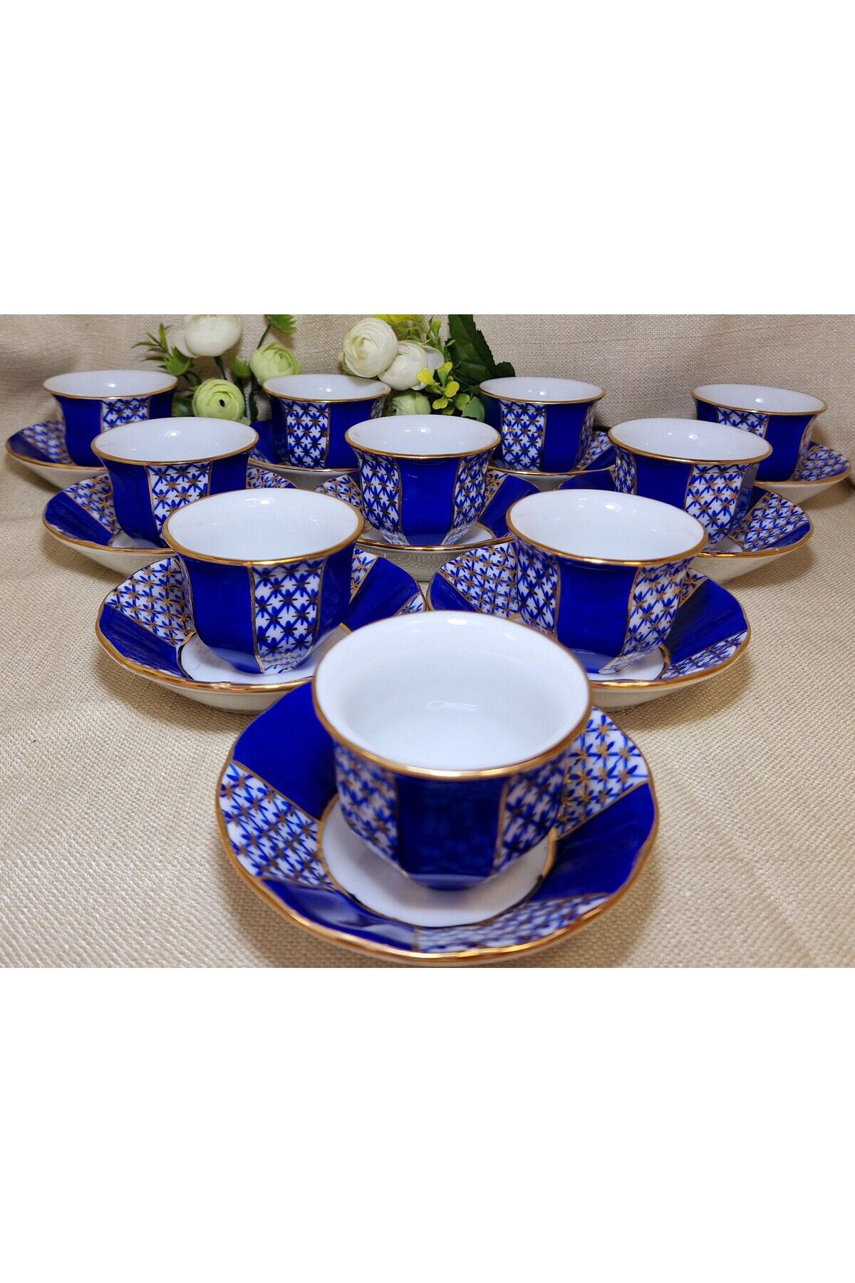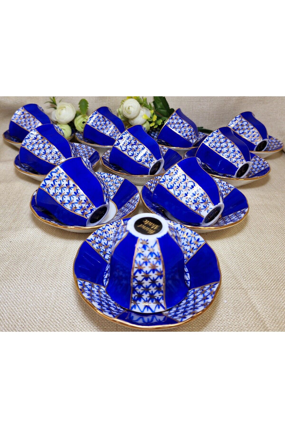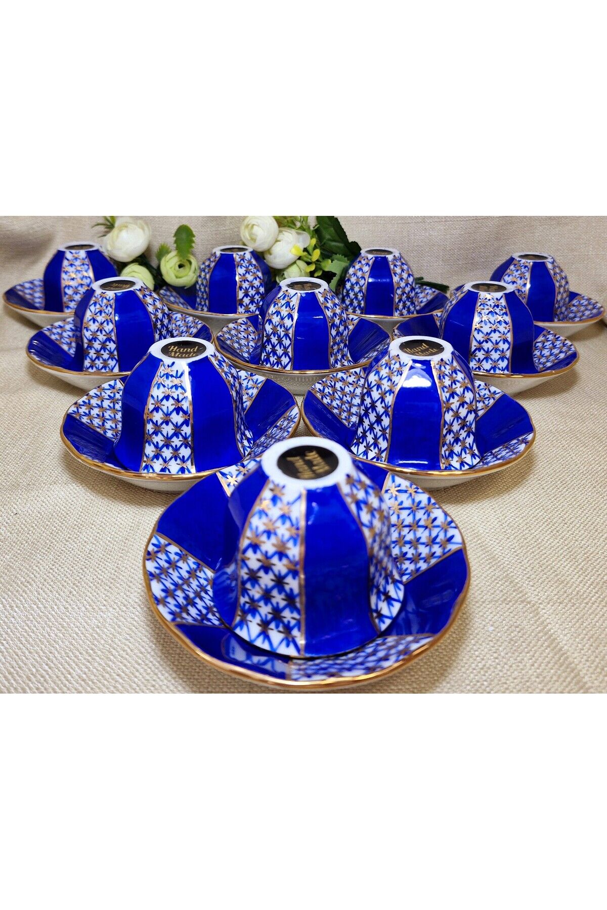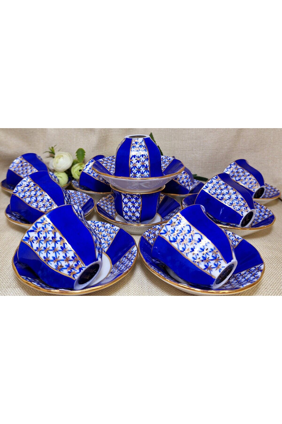 Sizin için özel olarak seçilen bu eşsiz YILDIZ PARILTISI Porselen El Boyama 12 adet mırra seti, zarif ve göz alıcı bir masa dekorasyonunu tamamlamanız için mükemmel bir seçenektir.; Ürünlerimiz tamamen elde boyanmış olup 24 ayar altınla bezen mistir.; Her bir parça elde boyanmış ve özenle süslenmiştir, bu nedenle her biri benzersizdir.; Ürün İçeriği:12 Adet Mırra ve 12 Adet Mırra tabağından oluşmaktadır.; Malzeme: Yüksek kaliteli Porselen Bu şahane set, sadece zarif bir sofra düzenlemesi sağlamakla kalmaz, aynı zamanda özel günlerde veya özel misafirleriniz için muhteşem bir hediye seçeneği sunar.; Temizlik Talimatları: Bu porselen ürünler, uzun ömürlerini ve mükemmel görünümlerini korumak için bulaşık makinesinde yıkanmamalıdır.; Lütfen elde yıkama veya yumuşak bir bezle temizlik yapmayı tercih edin.; Porselen El Boyama 12 Adet Mırra seti ile sofranızı dönüştürün ve misafirlerinizi büyüleyin.