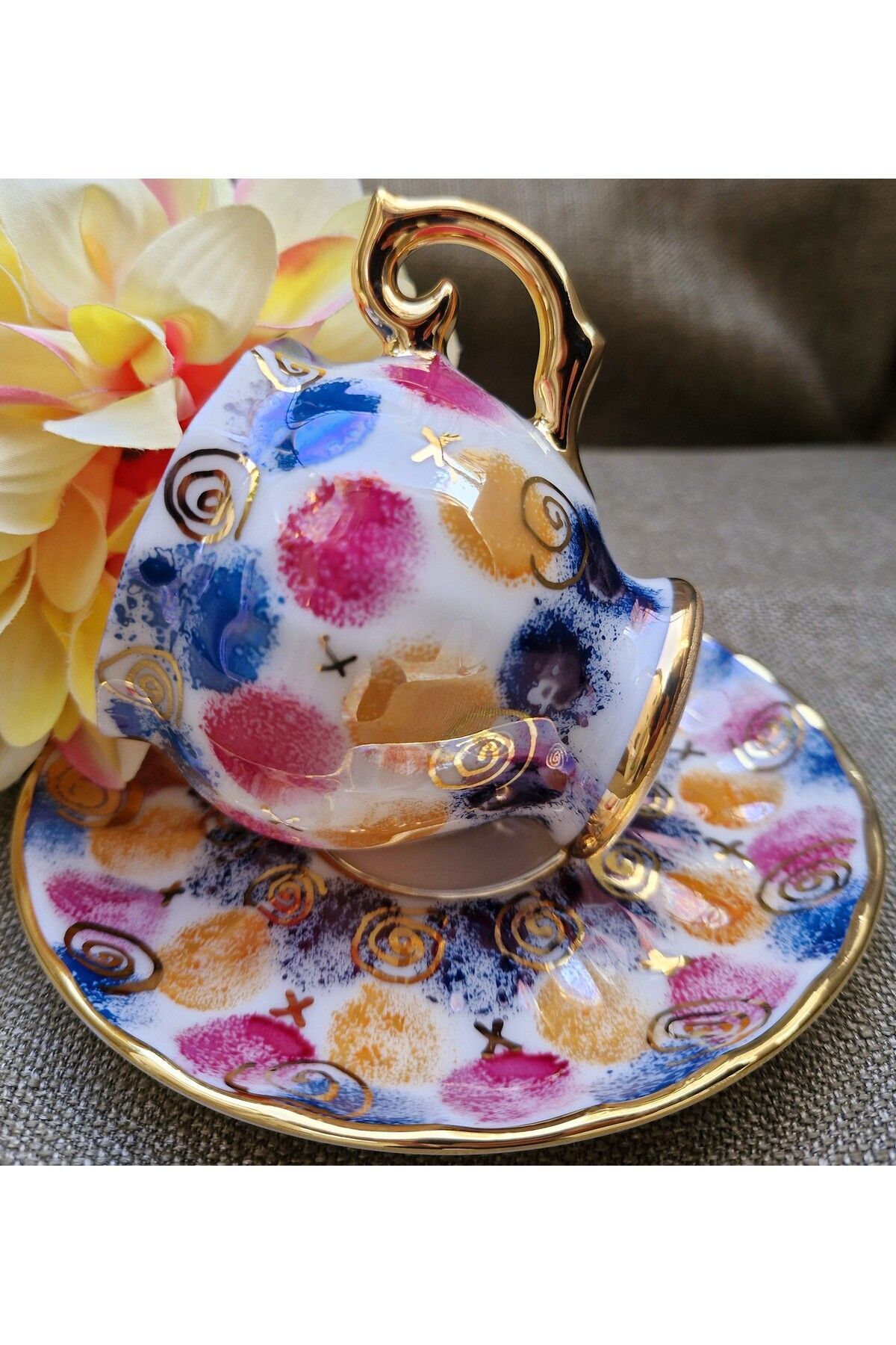 Yumi Porselen El Boyama 2li Kahve Fincan Takımı
